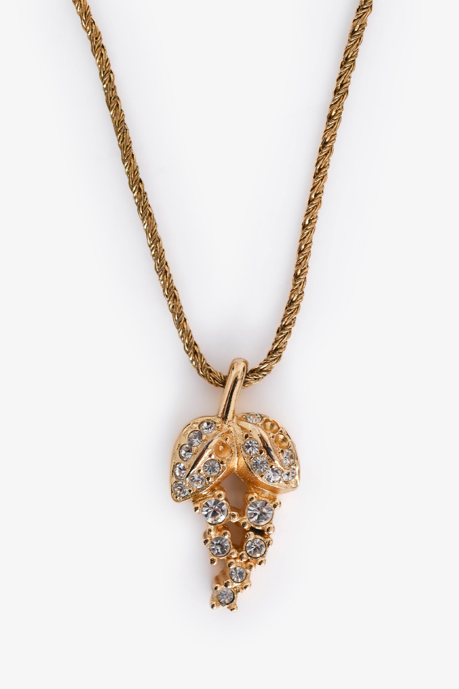 Refresh availabilityChristian Dior Vintage Gold Tone Metal Crystal Embellished Foliage Necklace. Adjustable spring ring closure. Gold-tone hardware.