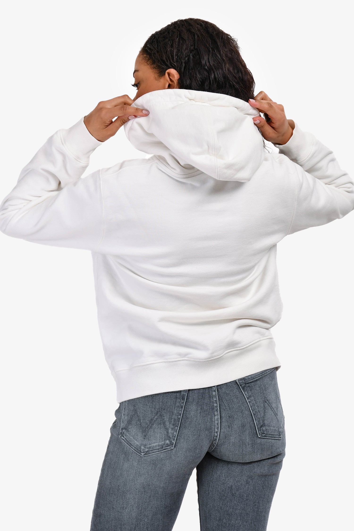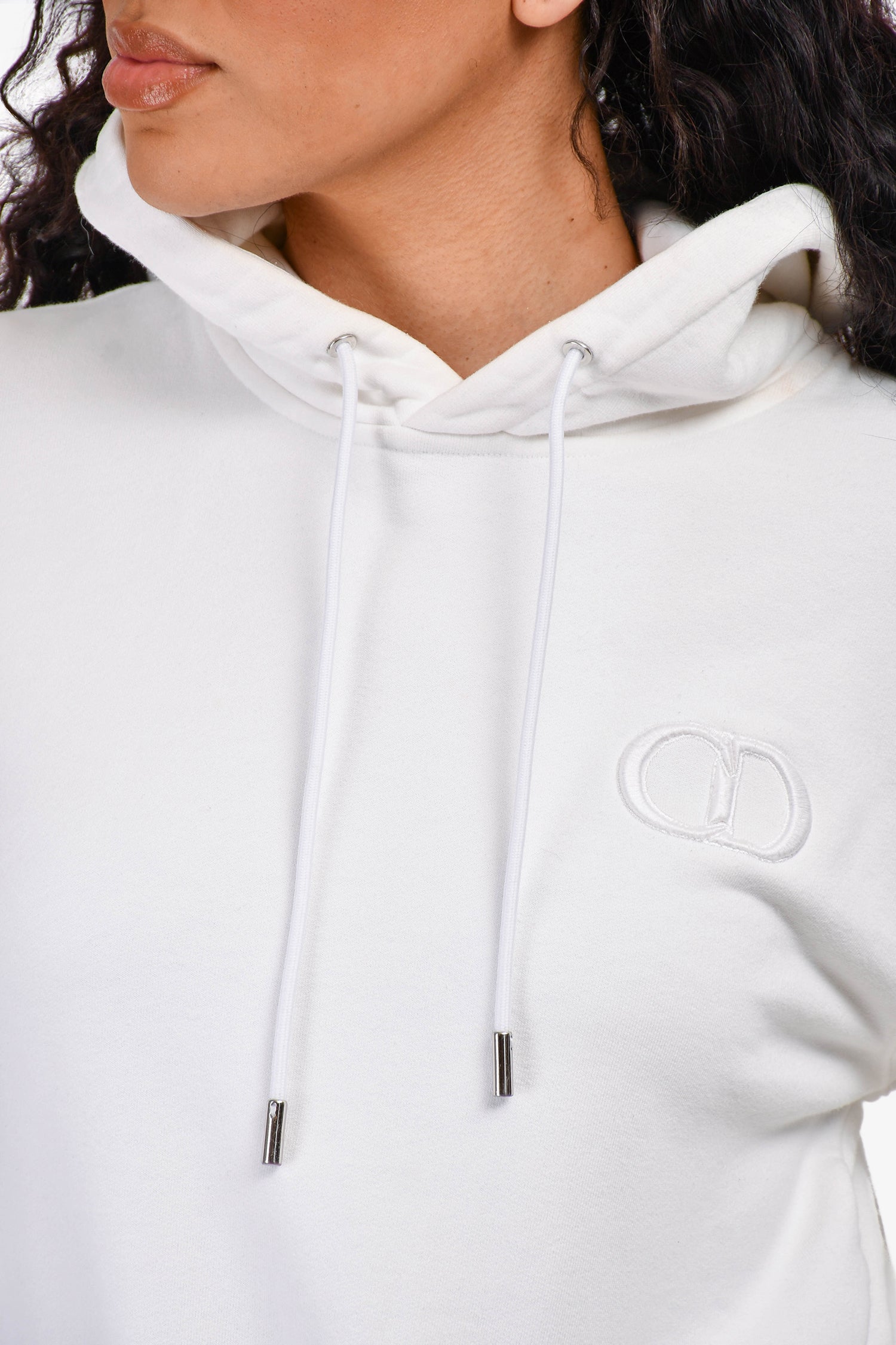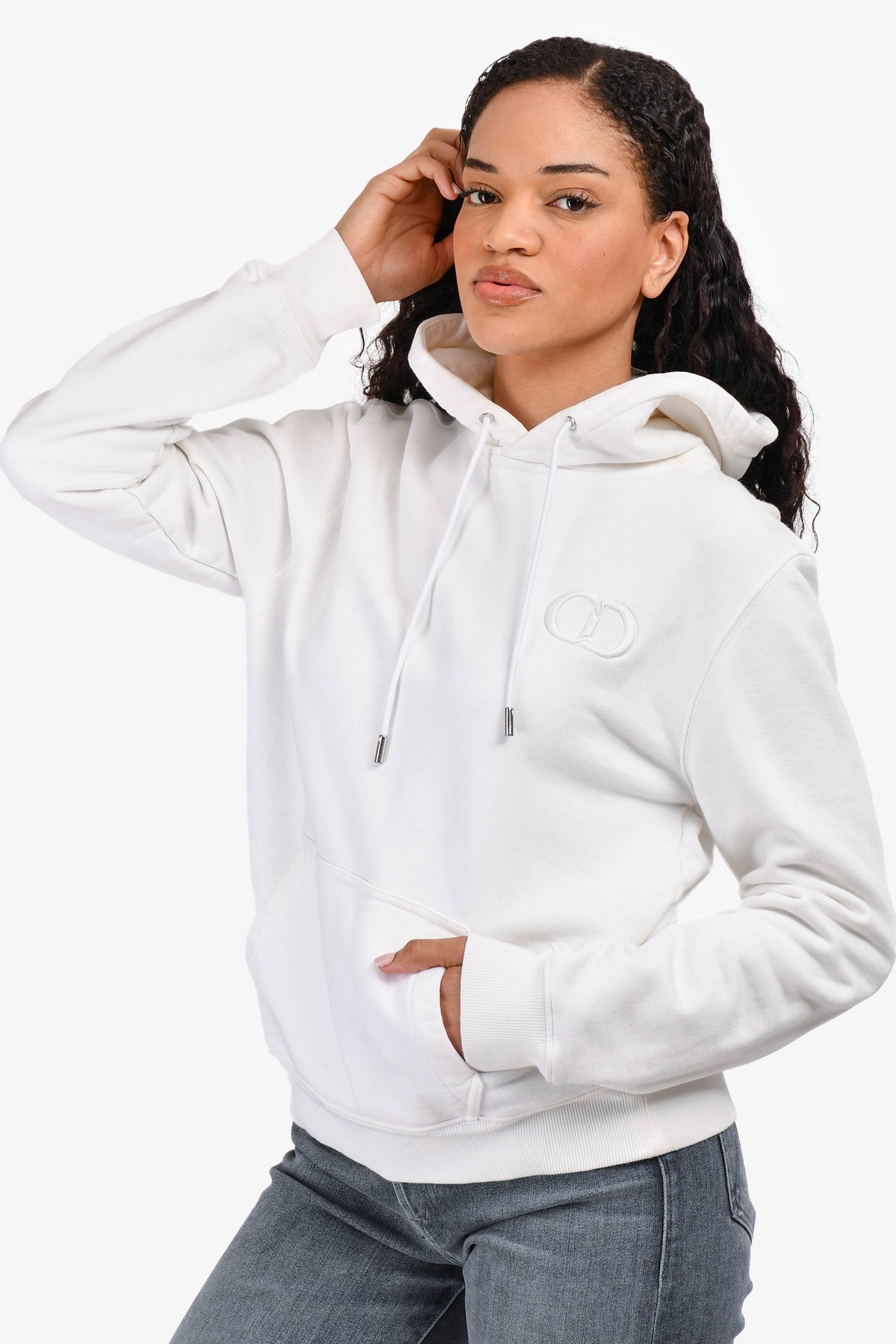 Refresh availabilityChristian Dior White Cotton 'CD Icon' Hooded Sweatshirt. Drawstring hood. Long sleeves with ribbed cuffs. Kangaroo pocket. Tonal stitching.