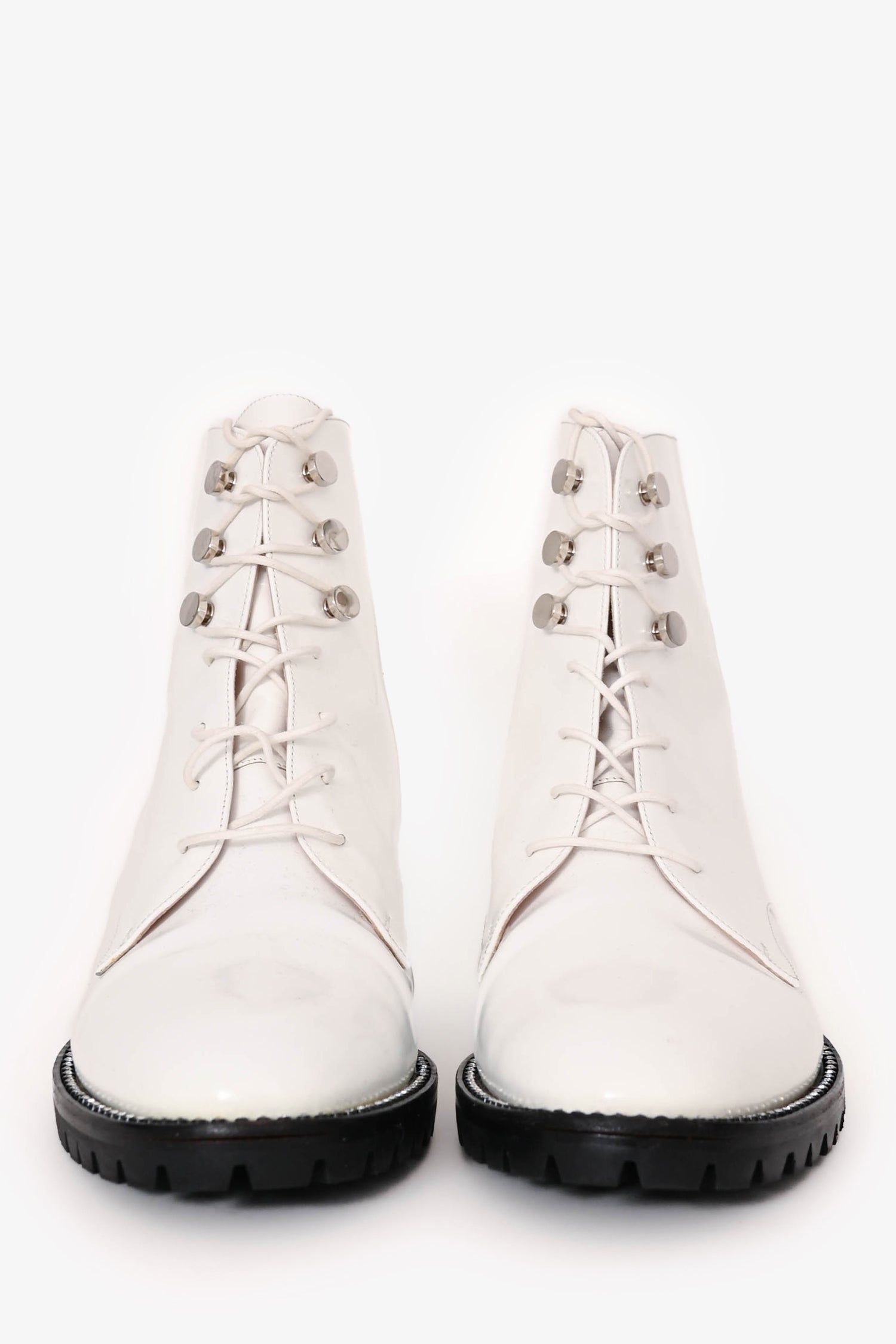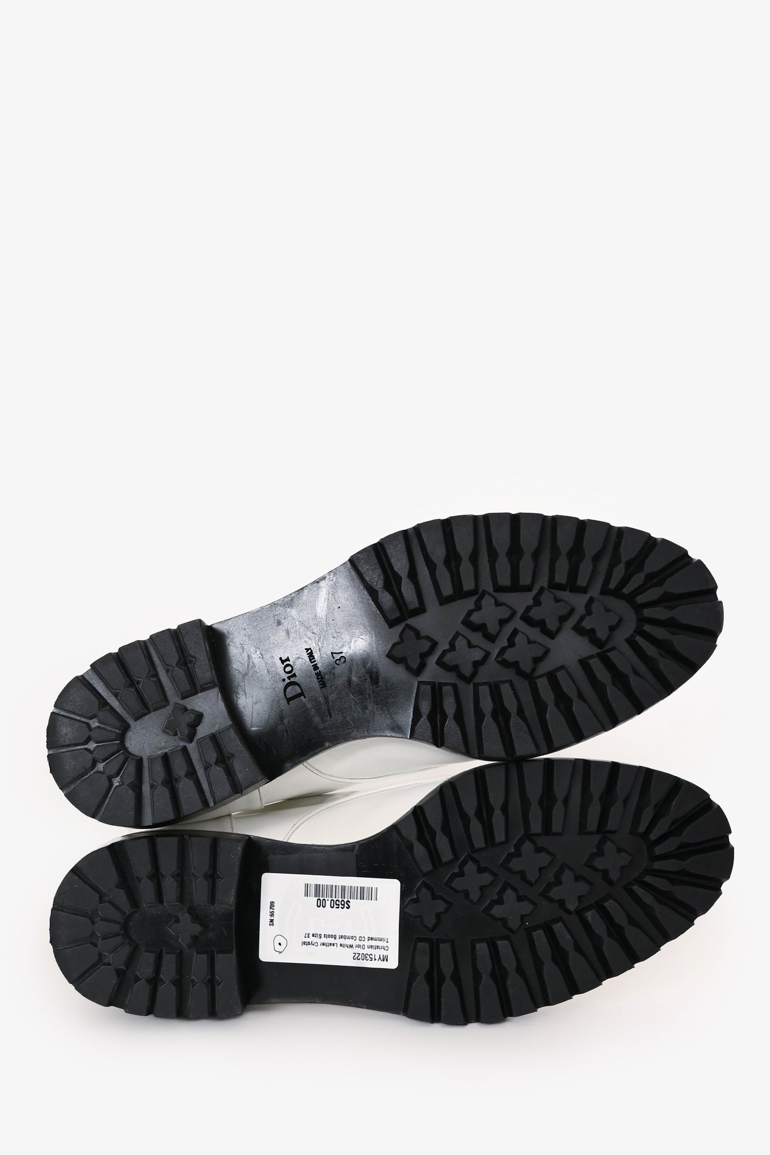 Christian Dior White Leather Crystal-Trimmed CD Combat Boots Size 37