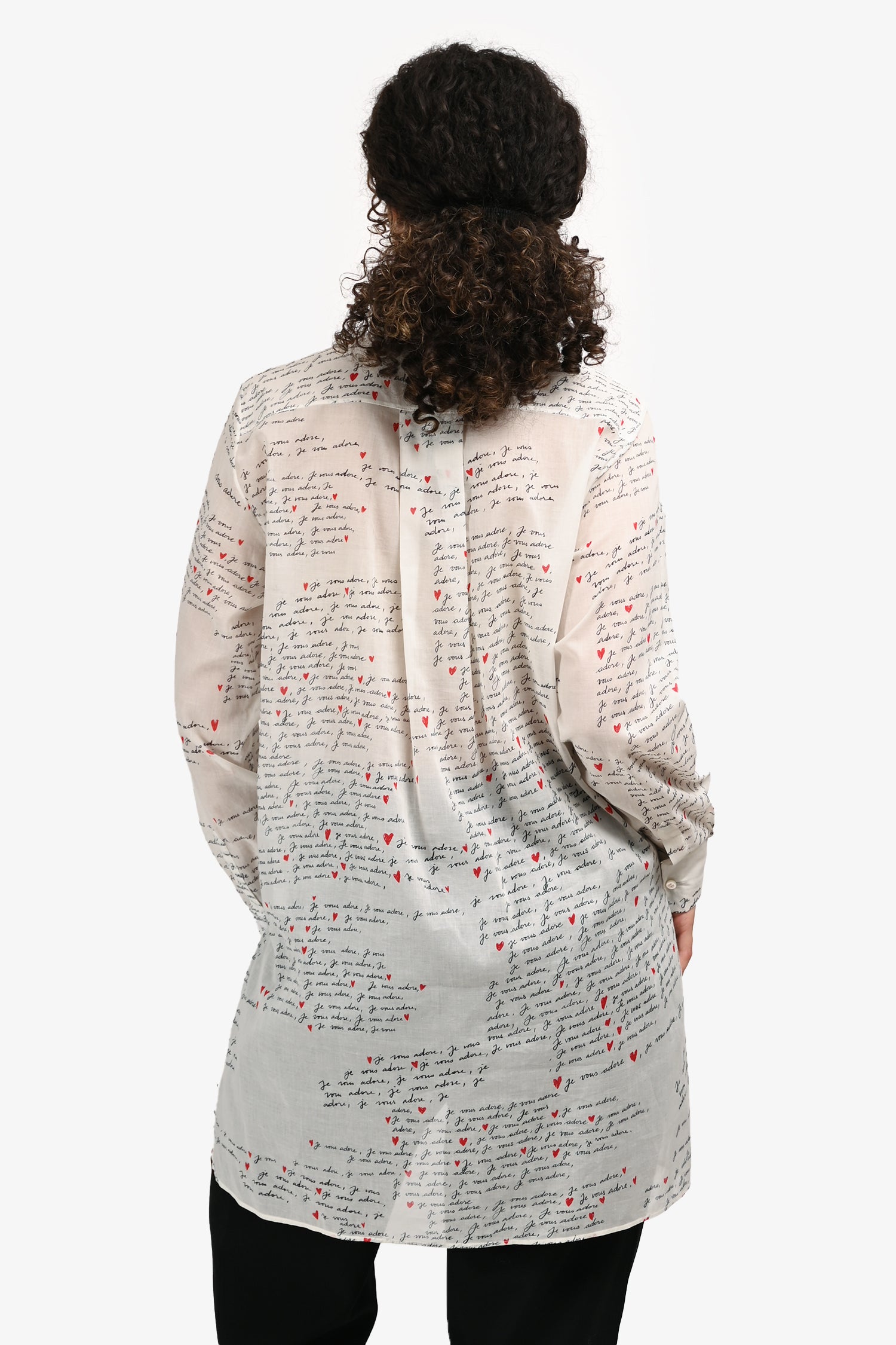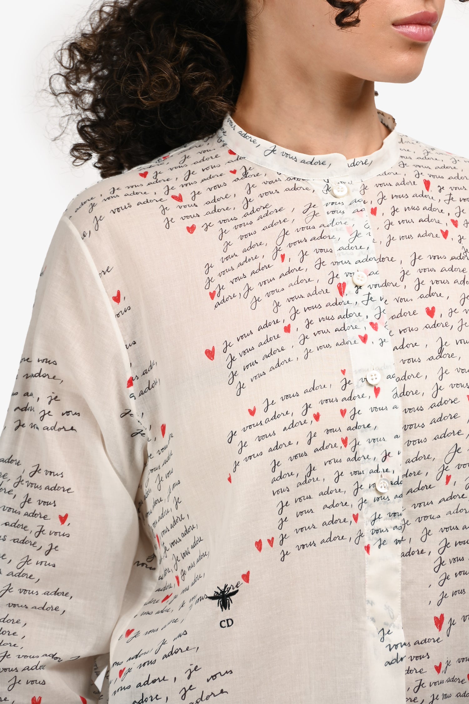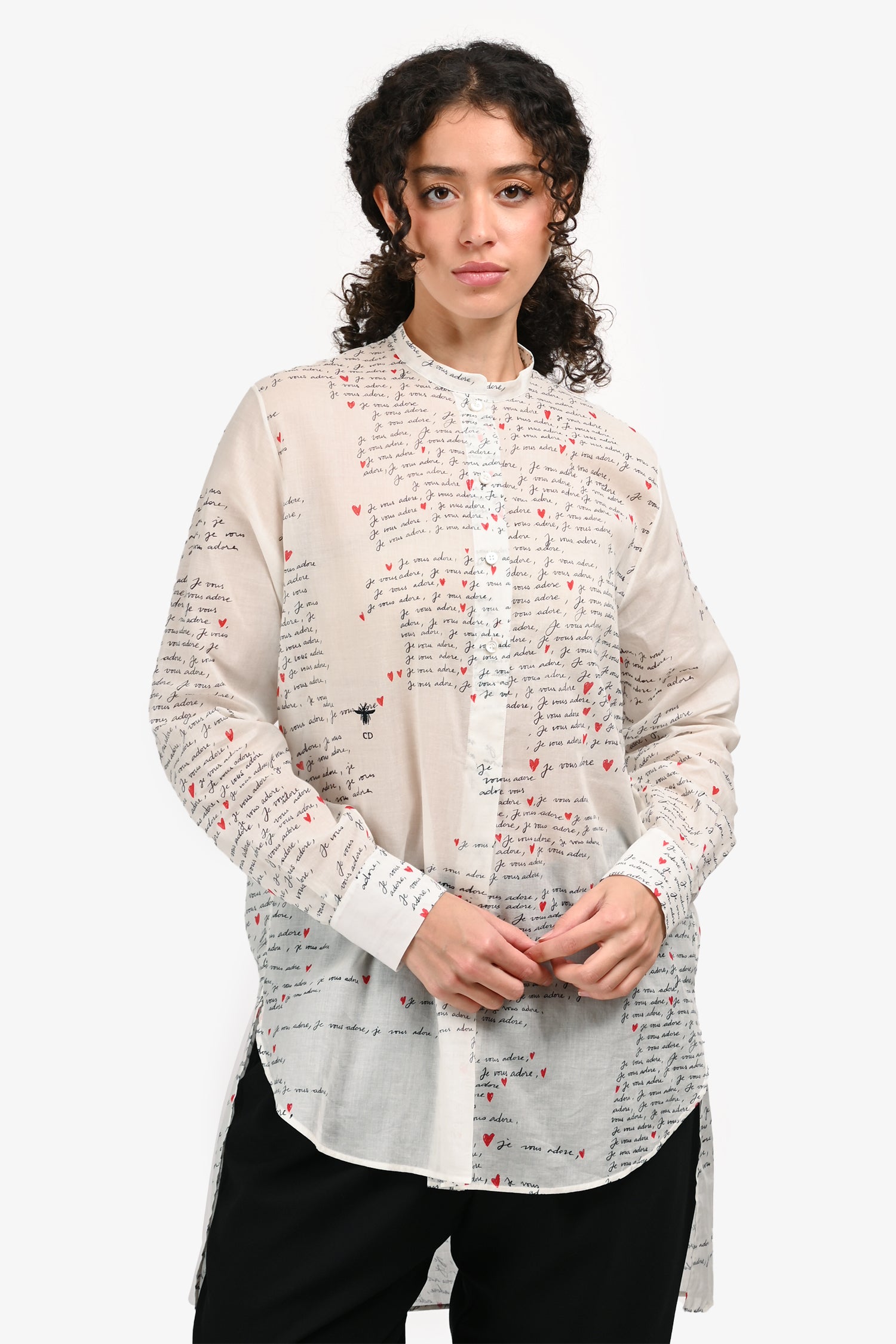 Refresh availabilityChristian Dior White Love Letter Printed Long Sleeves Top. Pull-on. High neckline. Half-placket front button closure. Single button cuffs. Tonal stitching.