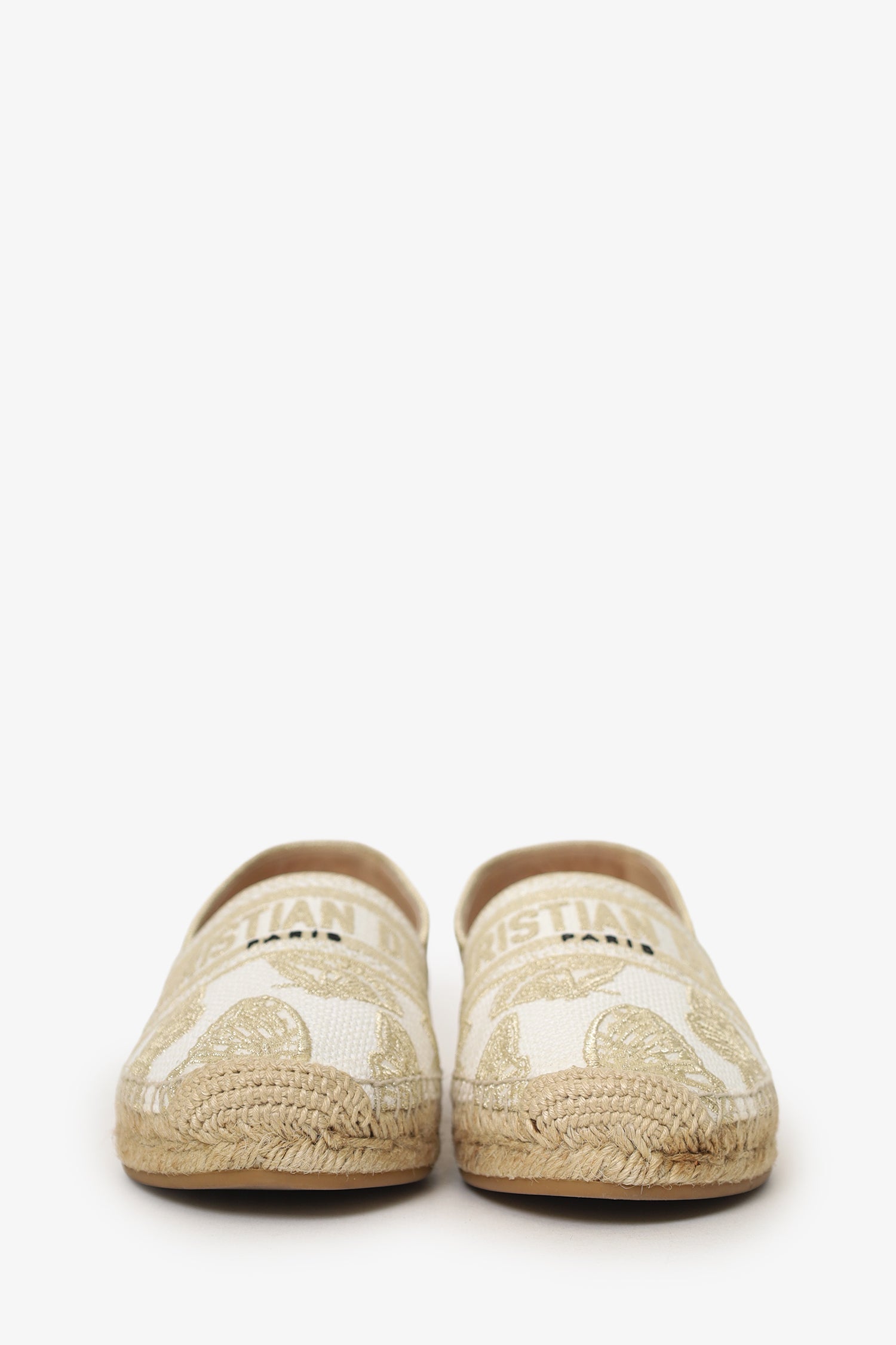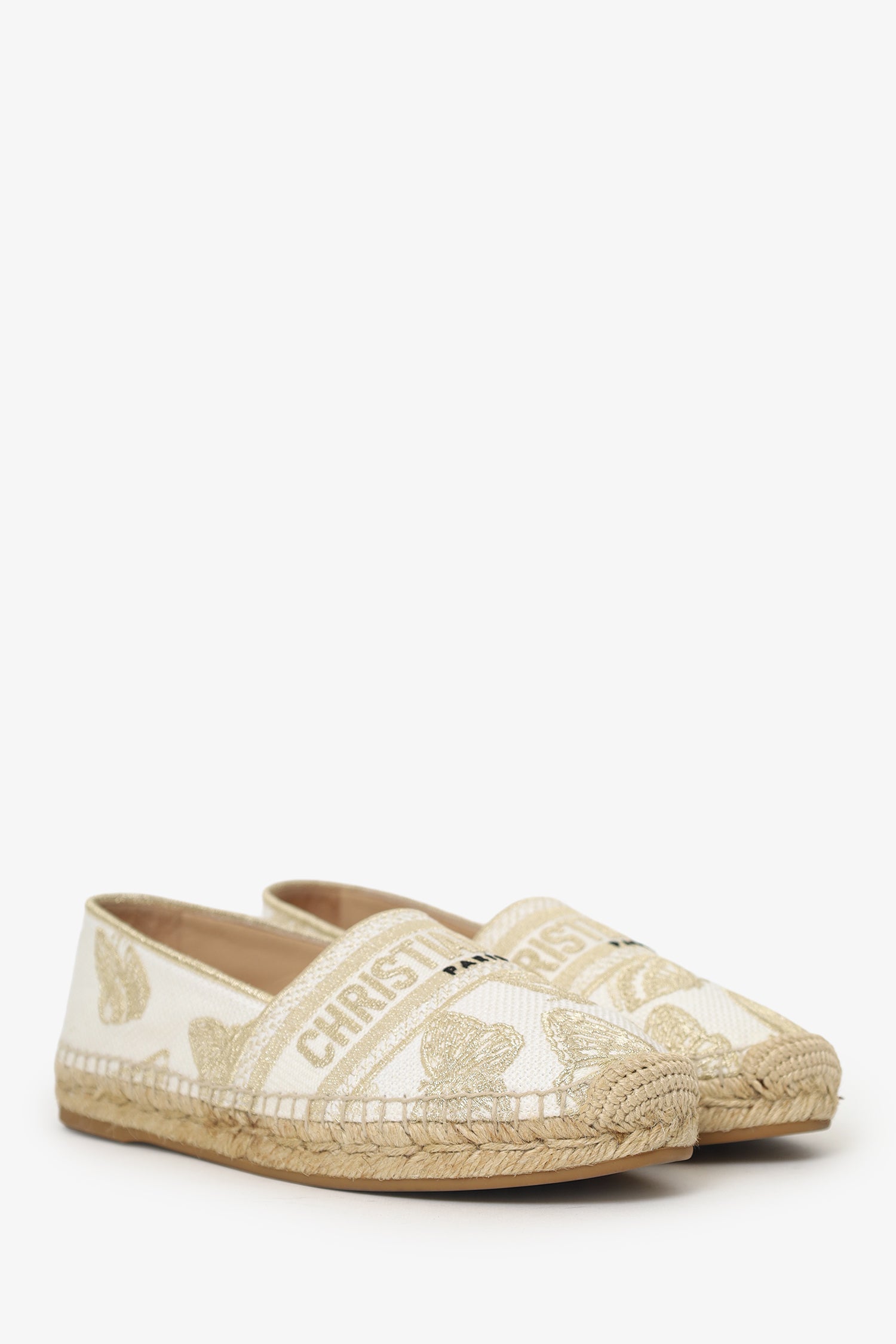 Refresh availabilityChristian Dior White/Gold Granville Espadrille. Slip-on. Round toe. Tonal stitching.