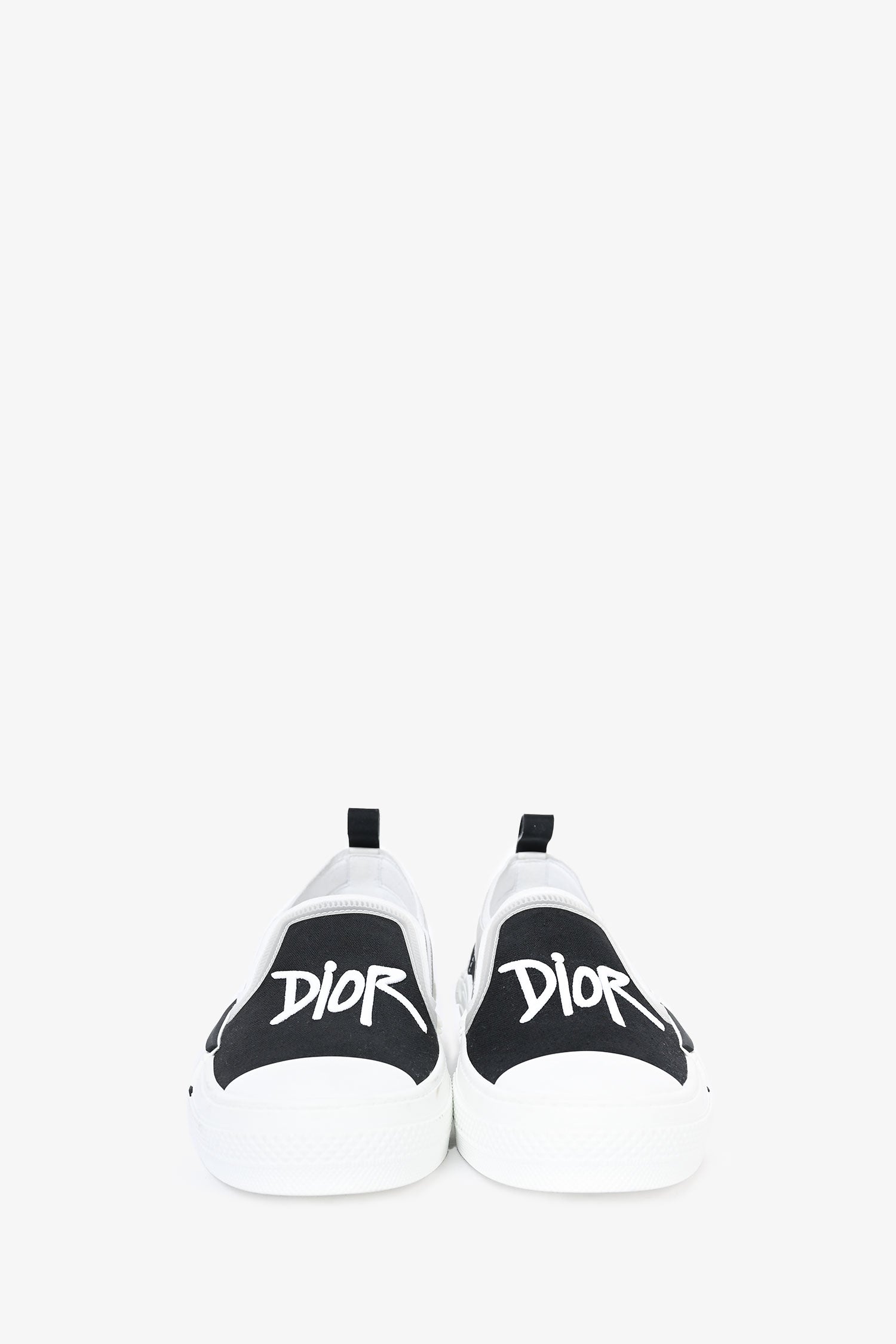 Refresh availabilityChristian Dior X Stussy Black/White Canvas Logo Slip On Sneakers. Round toe. Rubber soles.