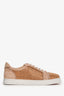 Christian Louboutin Beige/Gold Suede Leather Crystal Embellished Vieira Sneakers Size 38.5