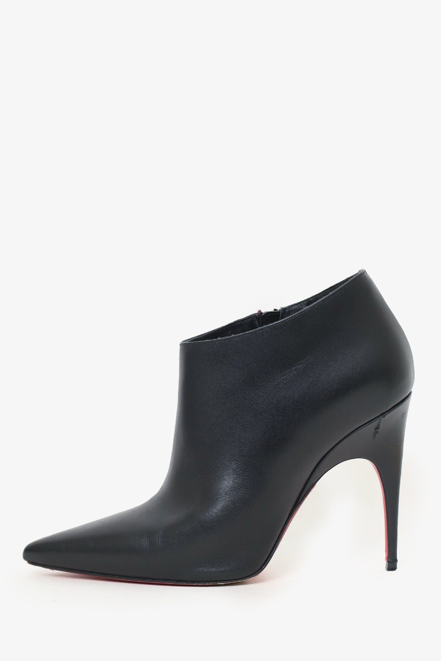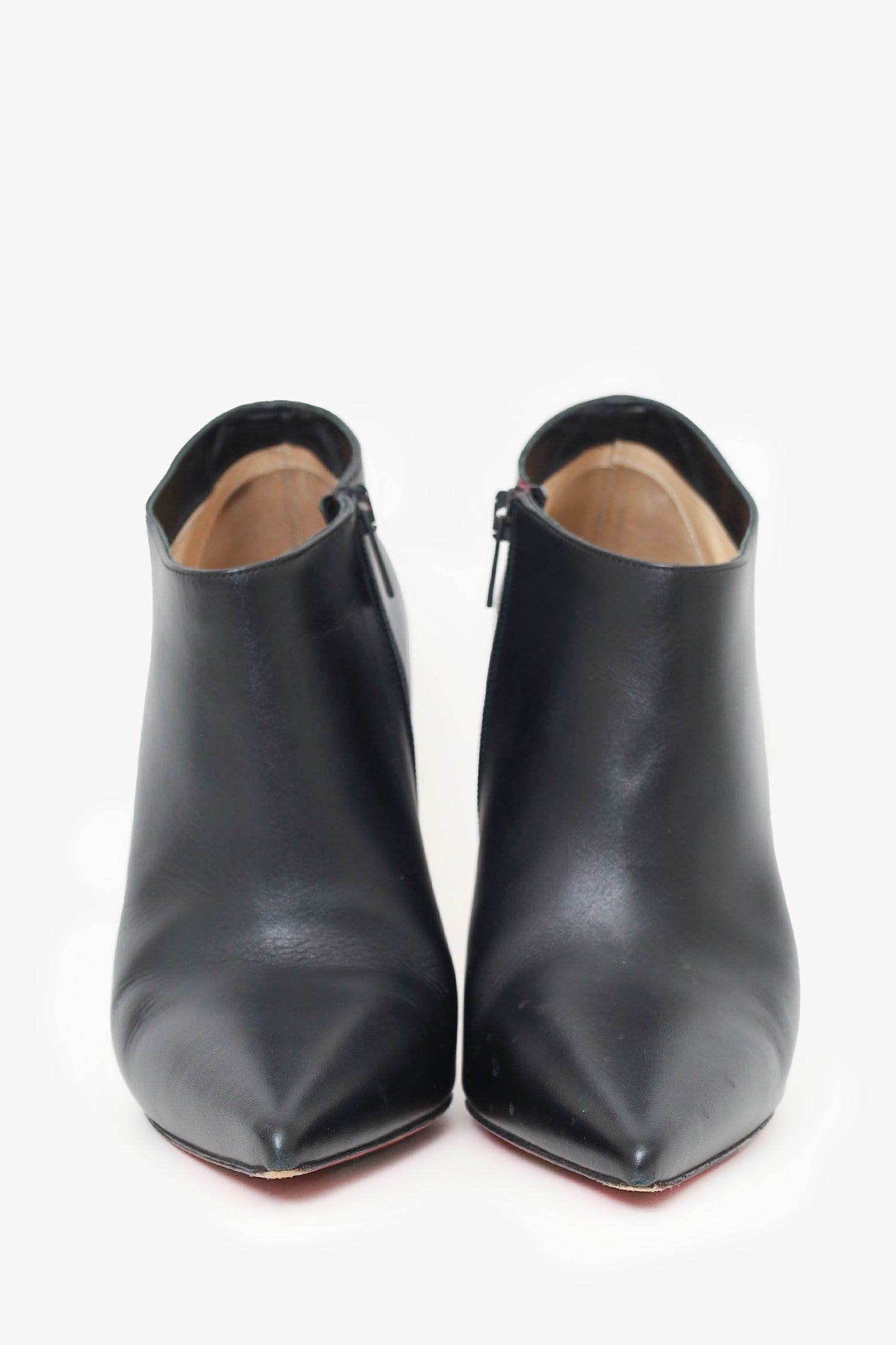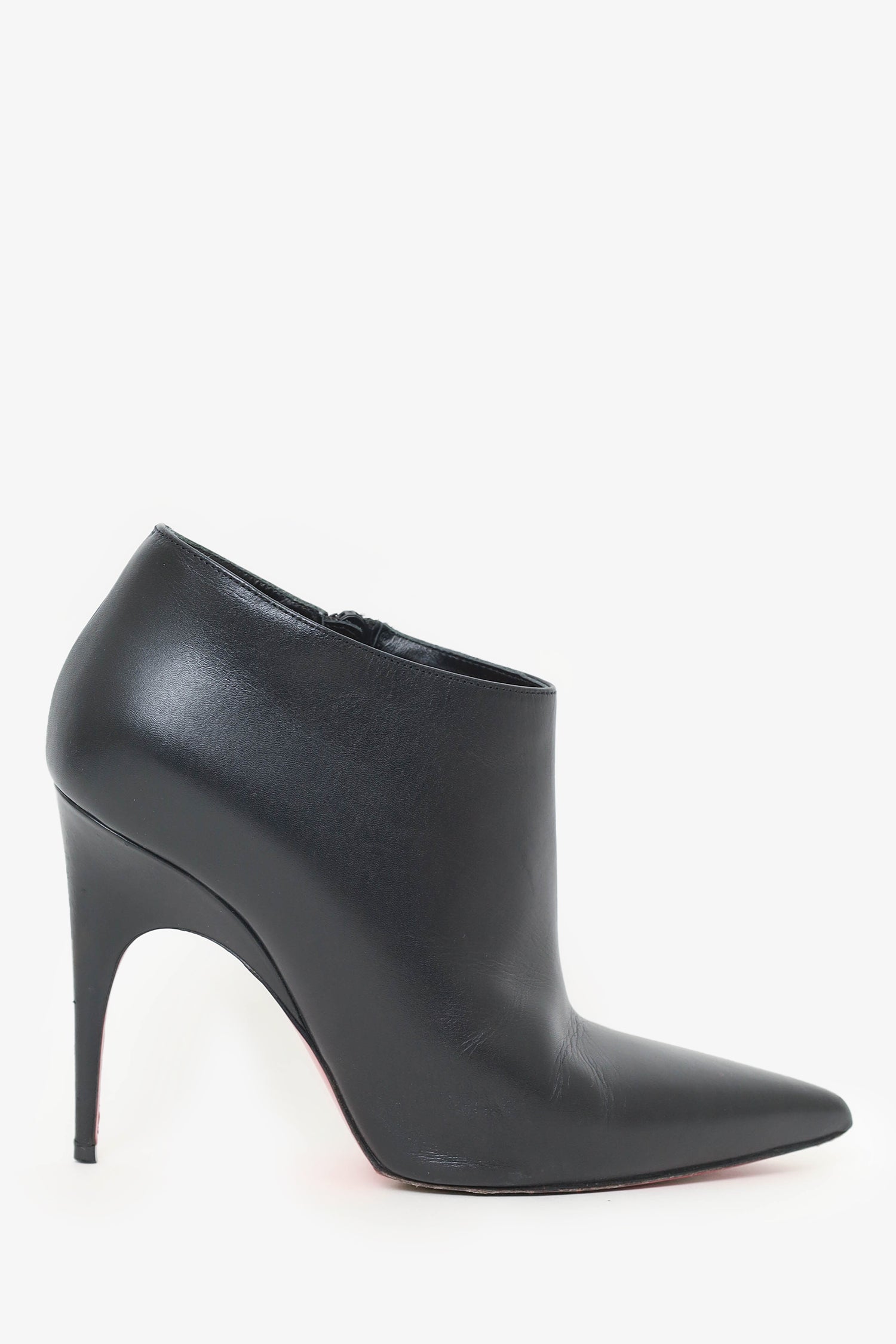 Refresh availabilityChristian Louboutin Black Calfskin Gorgona 85 Ankle Boots. Pull-on. Side zip-closure. Pointed toe. Tonal stitching.