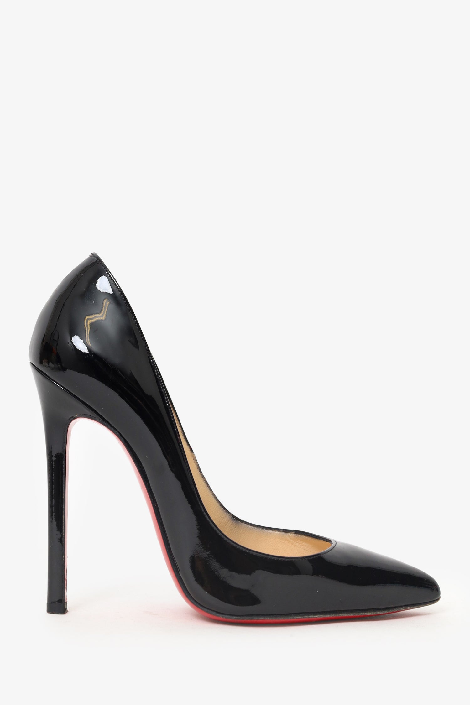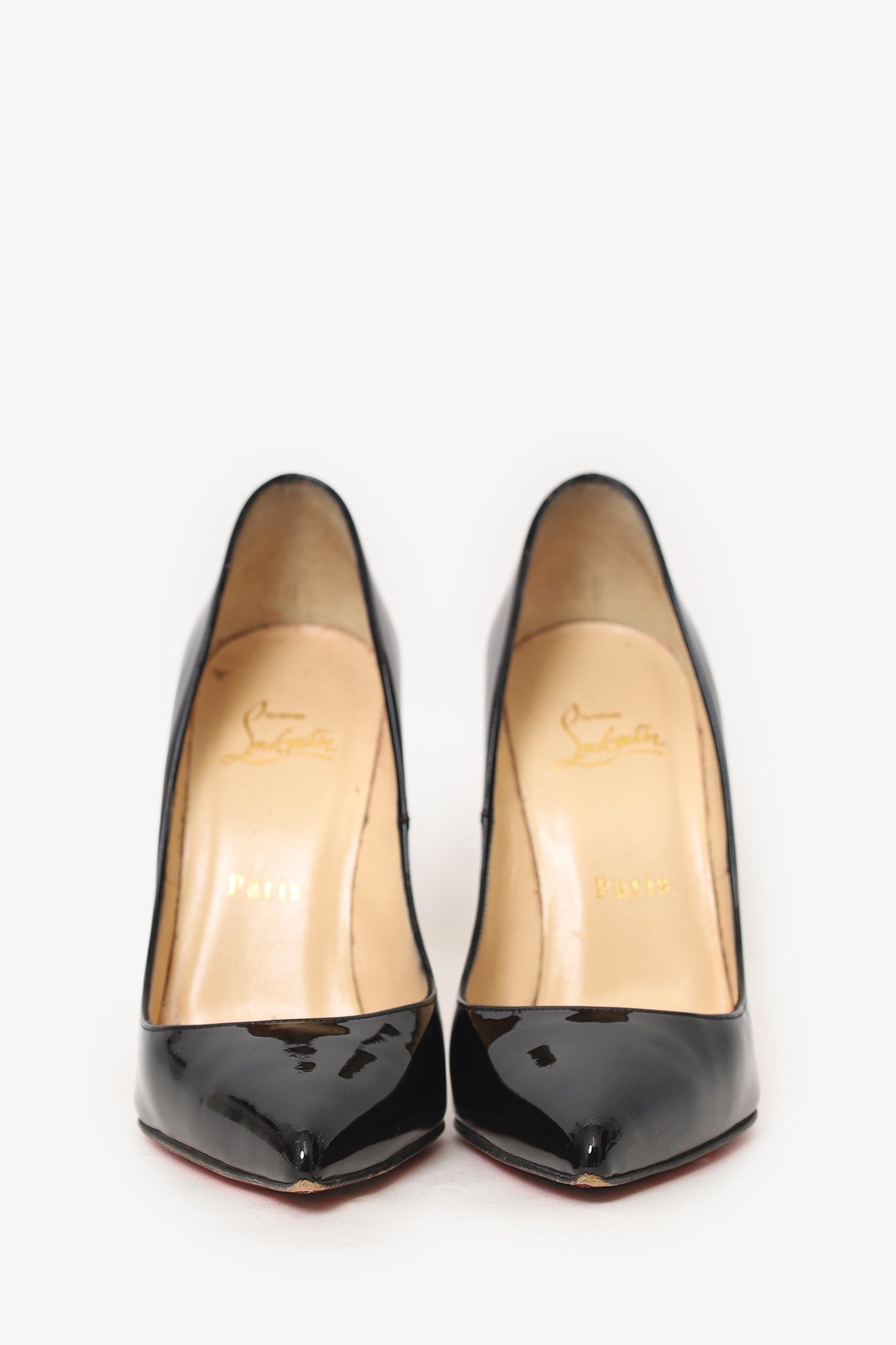 Refresh availabilityChristian Louboutin Black Patent Pointed Toe Heels. Slip-on. Pointed-toe. Tonal stitching.