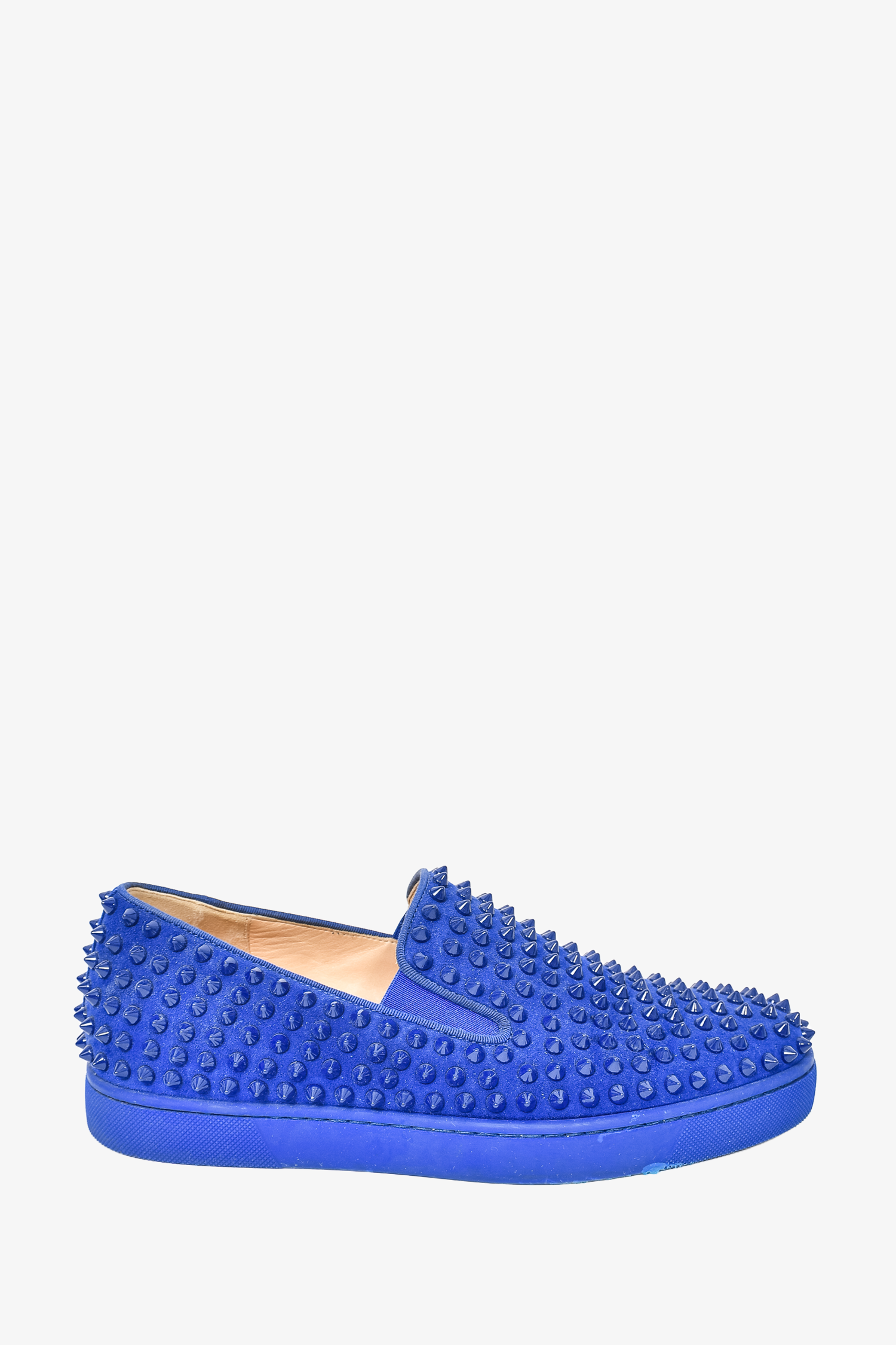 Refresh availabilityChristian Louboutin Electric Blue Suede Studded Slip On Sneakers. Slip-on. Round toe. Tonal stitching.