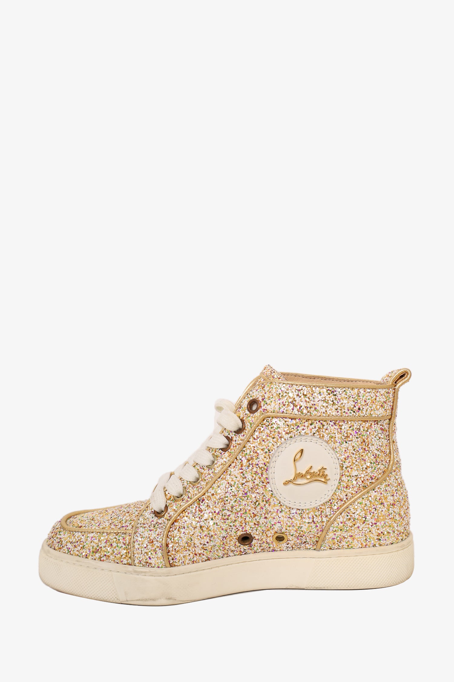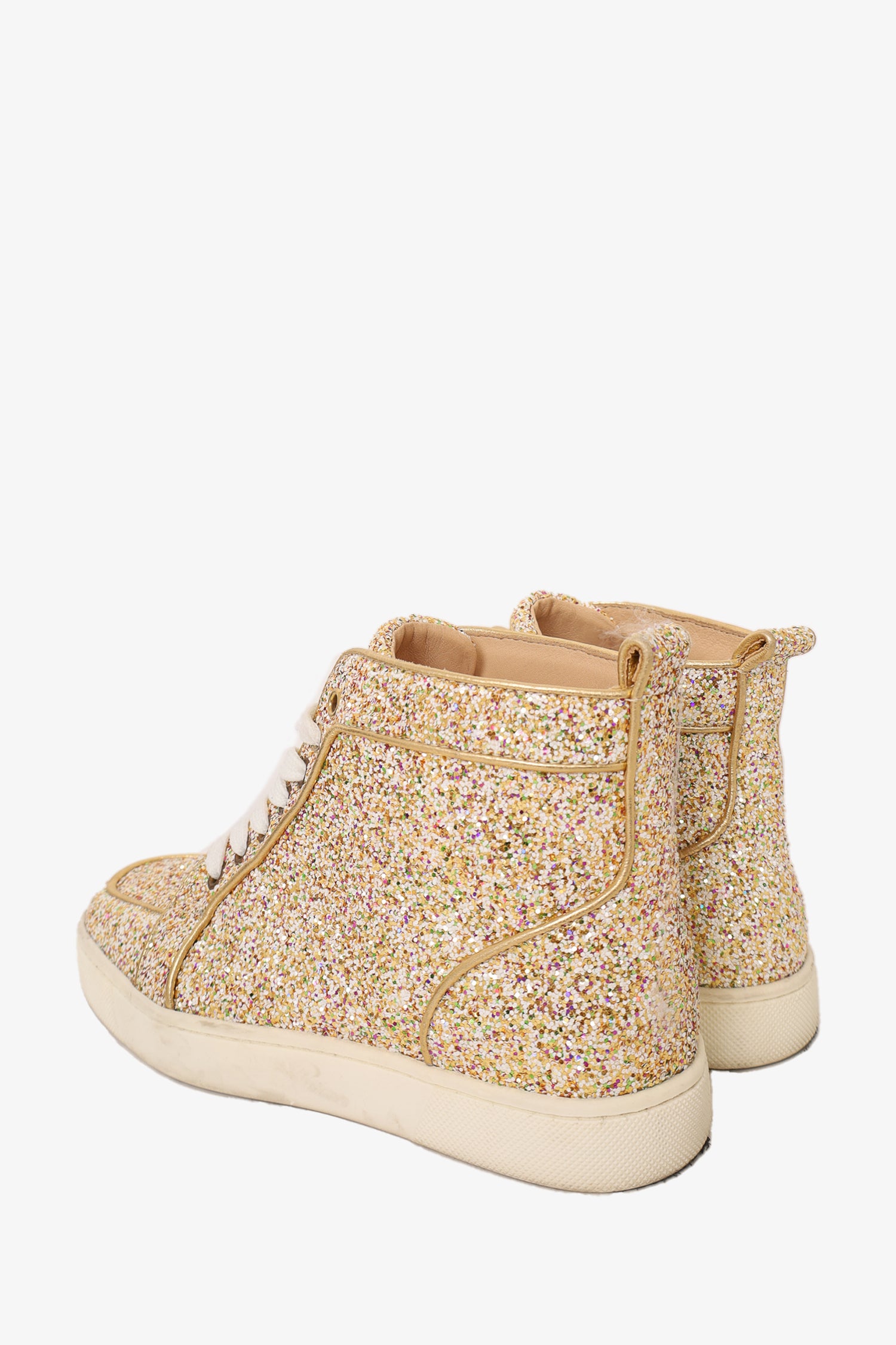 Refresh availabilityChristian Louboutin Gold High Top Sneakers. Front lace closure. Heel tab. Tonal stitching.