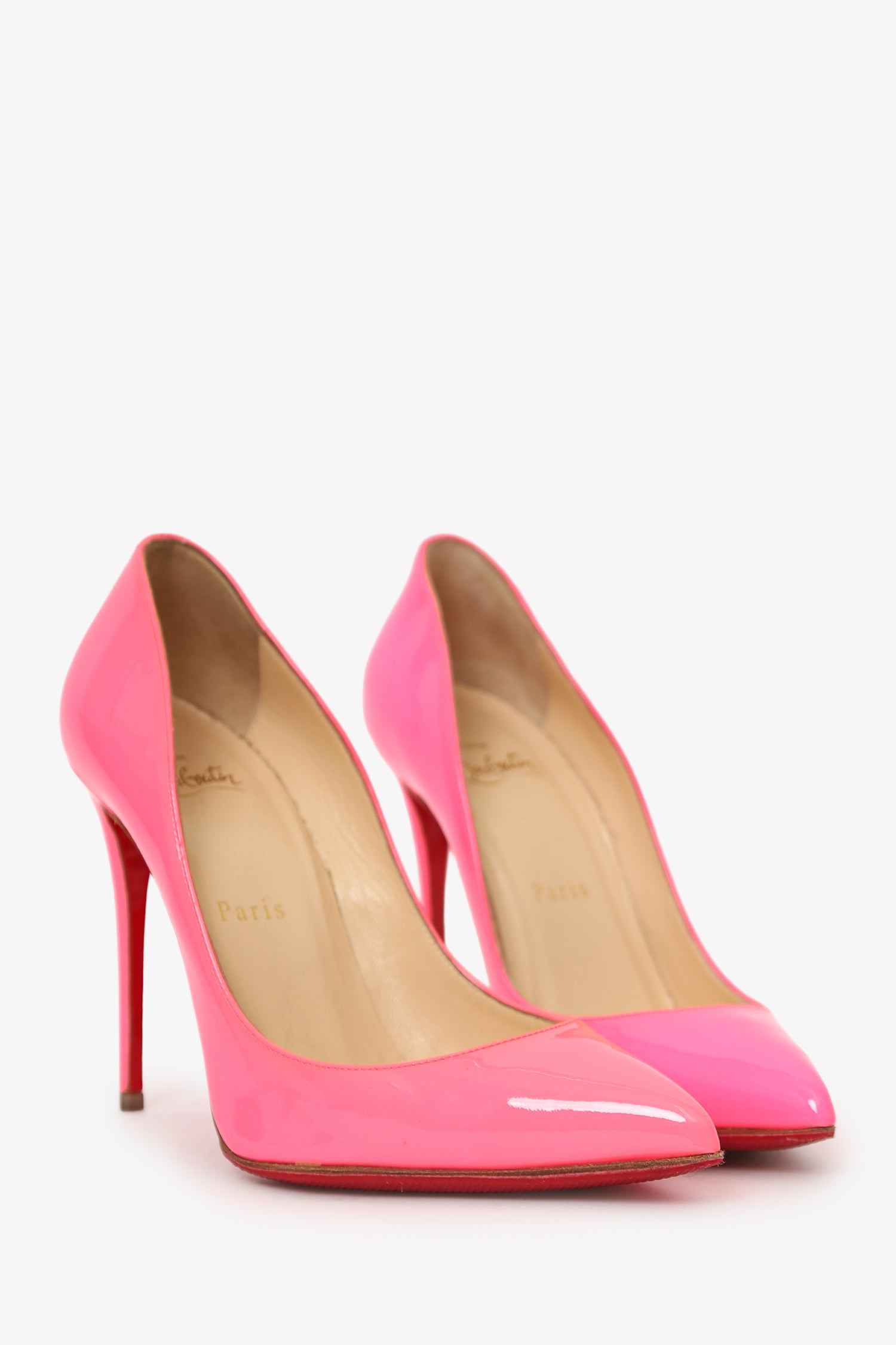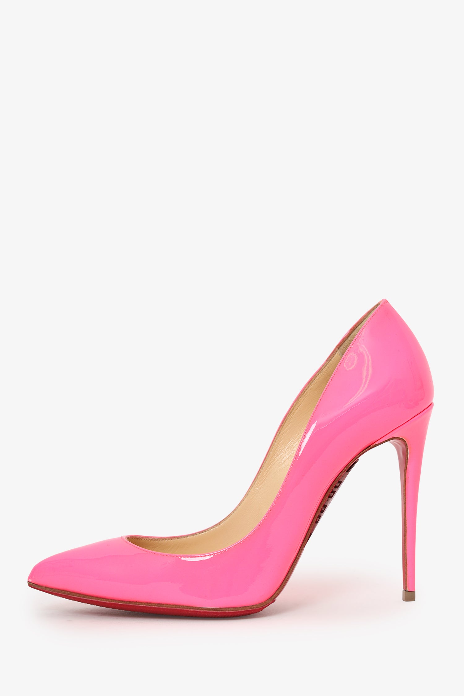 Refresh availabilityChristian Louboutin Hot Pink Patent Leather Pointed Toe Heels. Slip-on. Pointed toe. Tonal stitching.