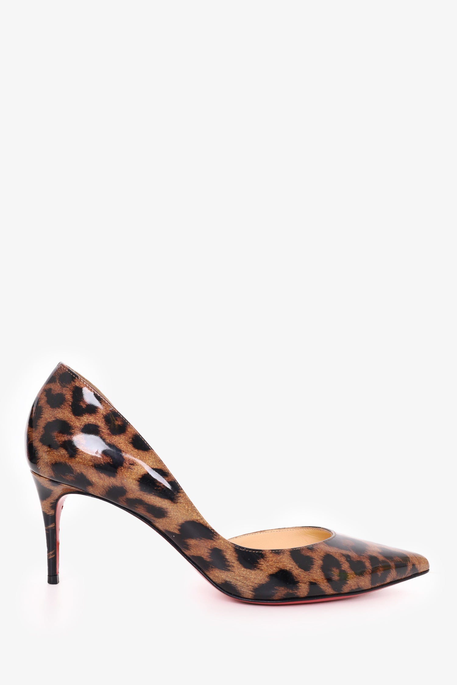 Refresh availabilityChristian Louboutin Leopard Print Patent Leather Iriza 70 Pumps. Slip-on. Pointed toe. Tonal stitching.