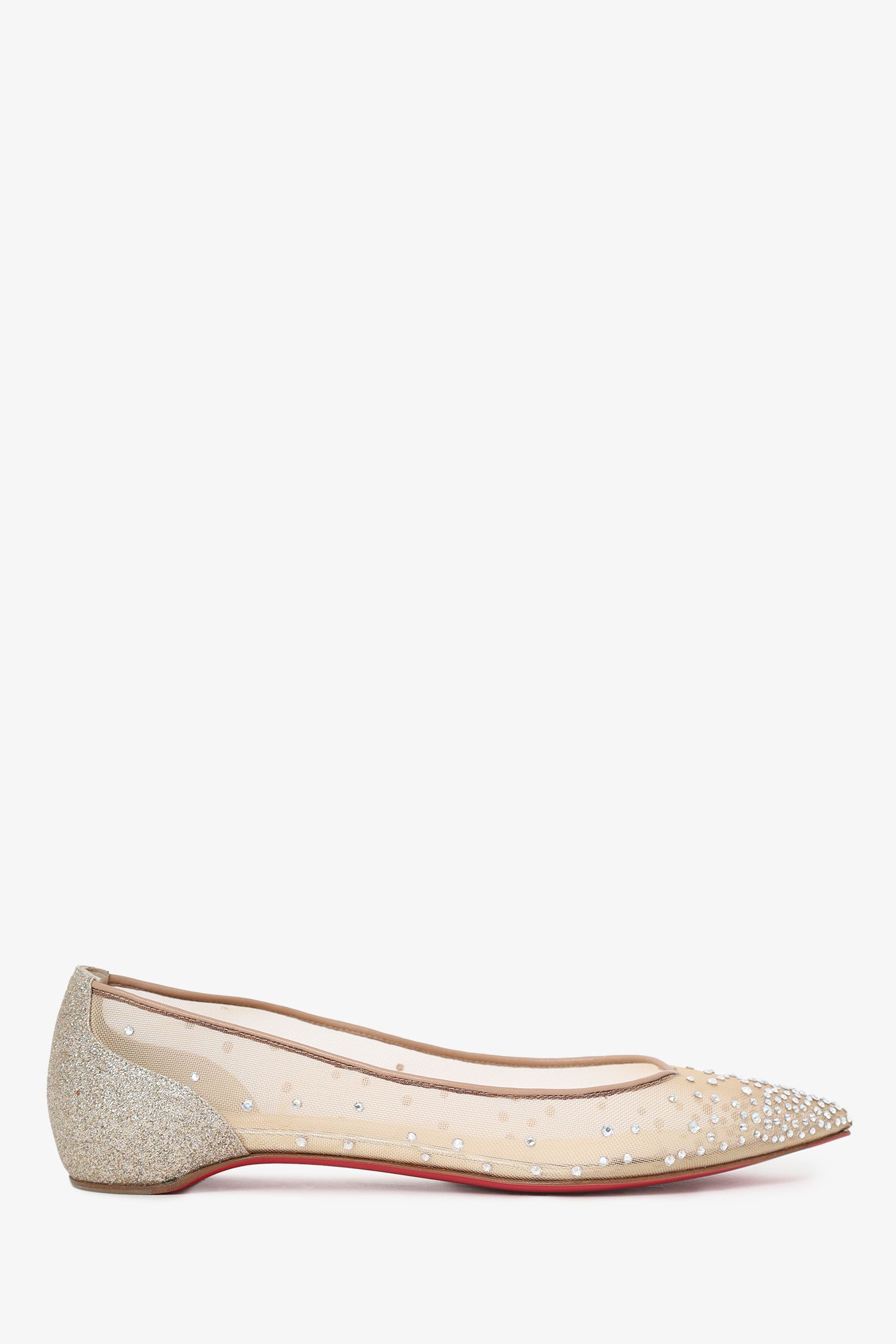 Refresh availabilityChristian Louboutin Mesh/Crystal Embellished 'Follies' Pointed Flats. Slip-on. Pointed-toe. Gold and silver-tone hardware. Tonal stitching.