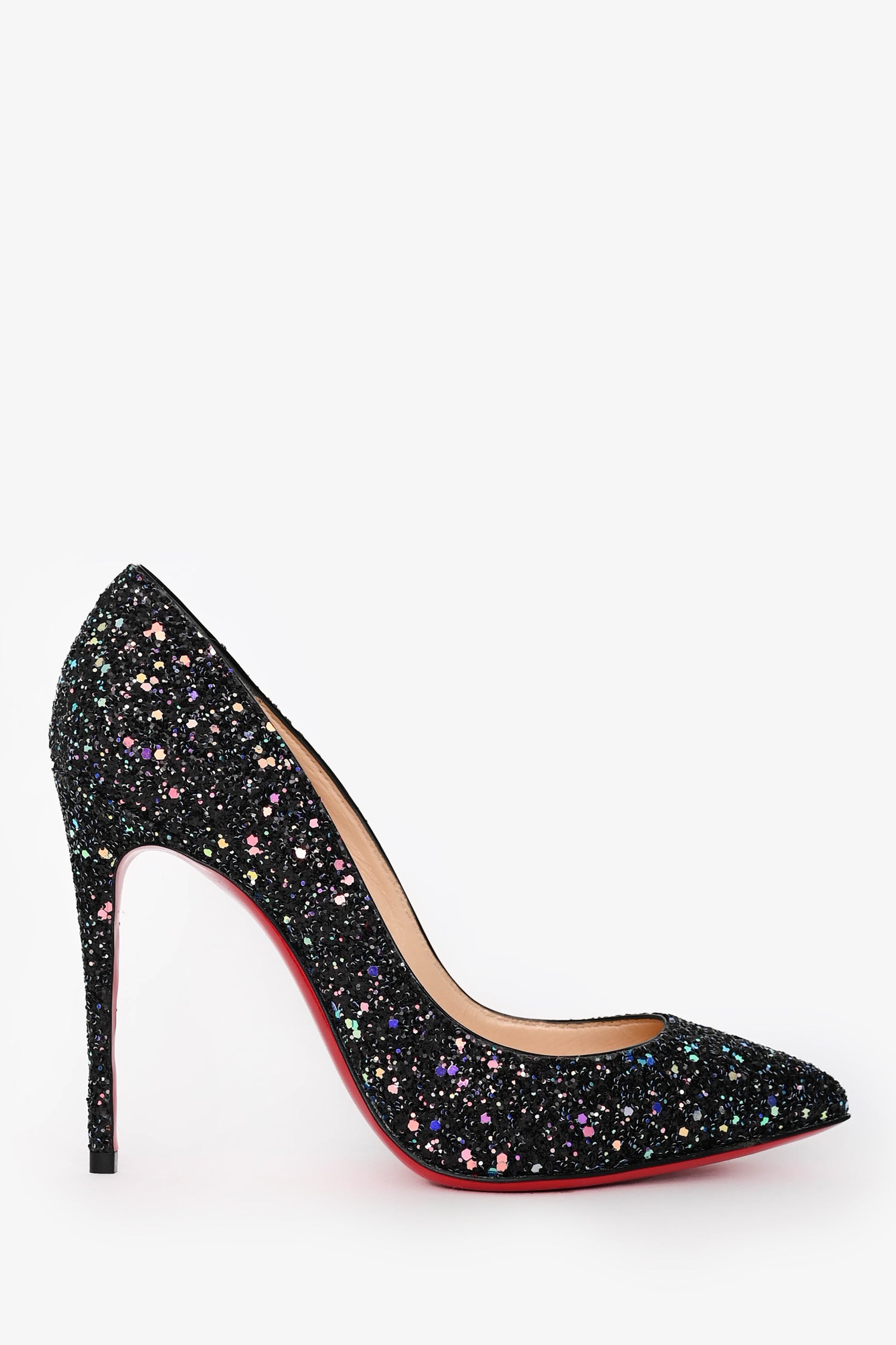 Refresh availabilityChristian Louboutin Navy Glittered Leather Pointed Toe Heels. Slip-on. Pointed-toe. Tonal stitching.