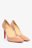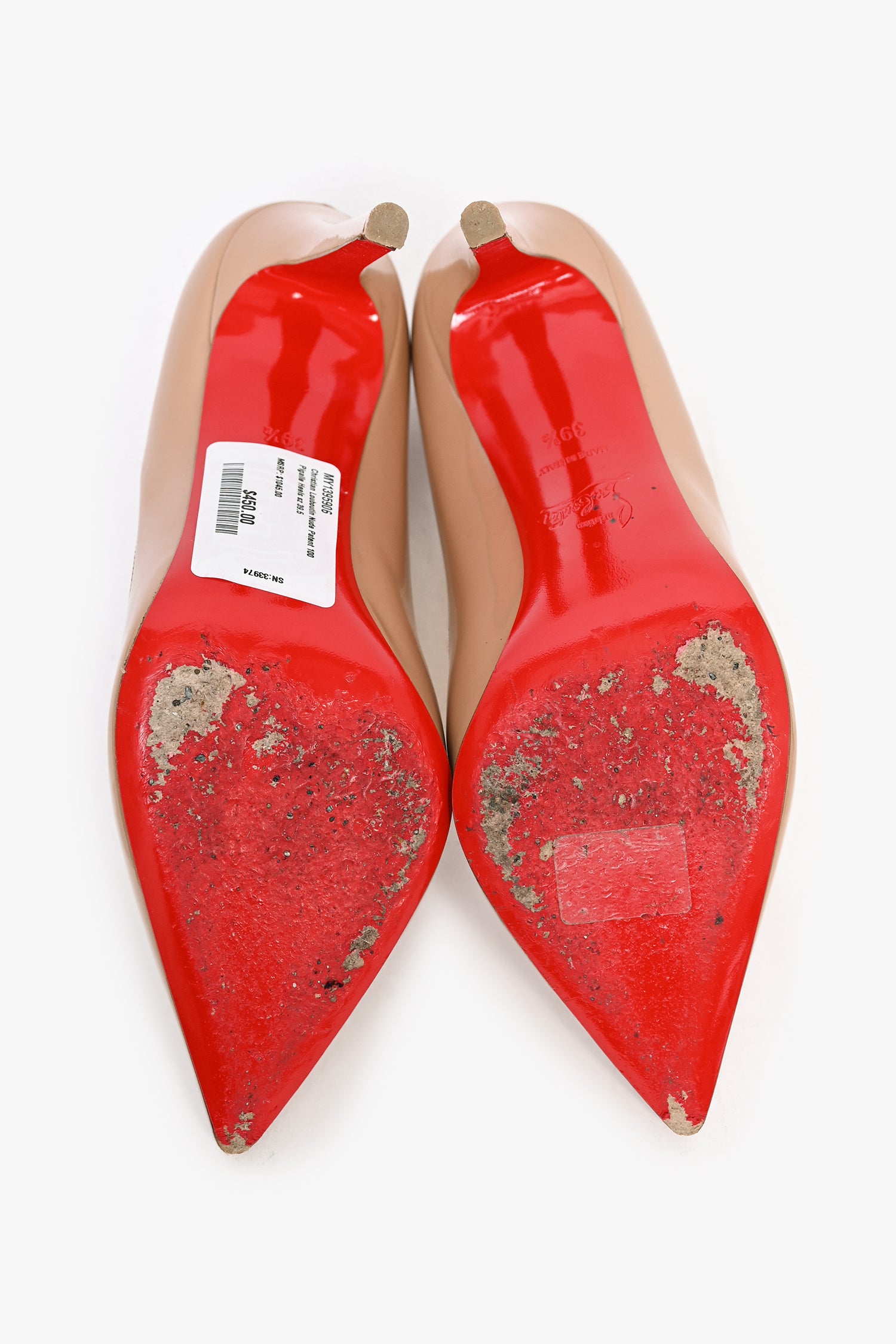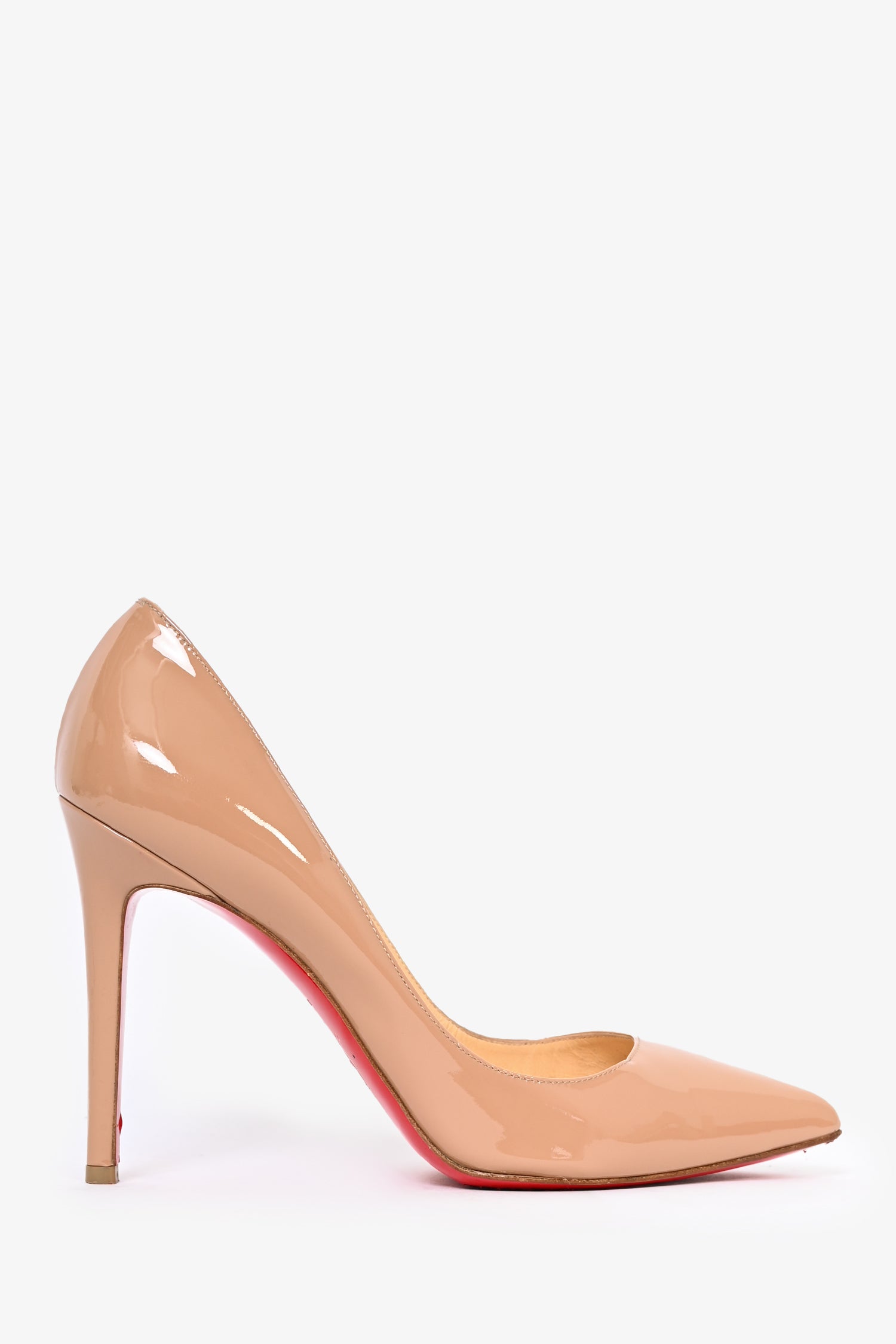Refresh availabilityChristian Louboutin Nude Patent 100 Pigalle Heels. Signature red bottoms. Pointed toe front. Glossy finish.