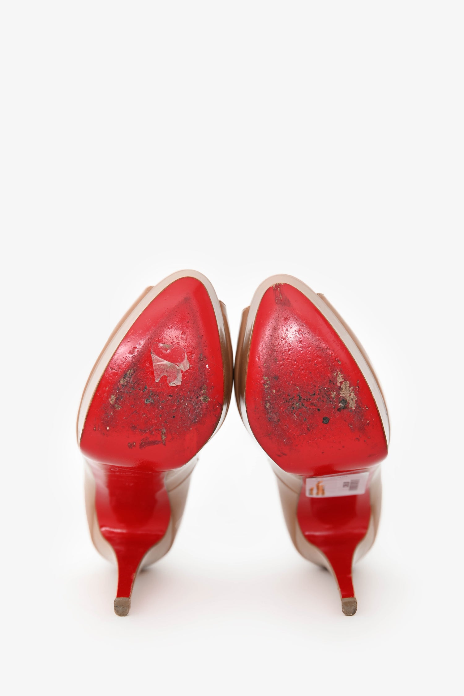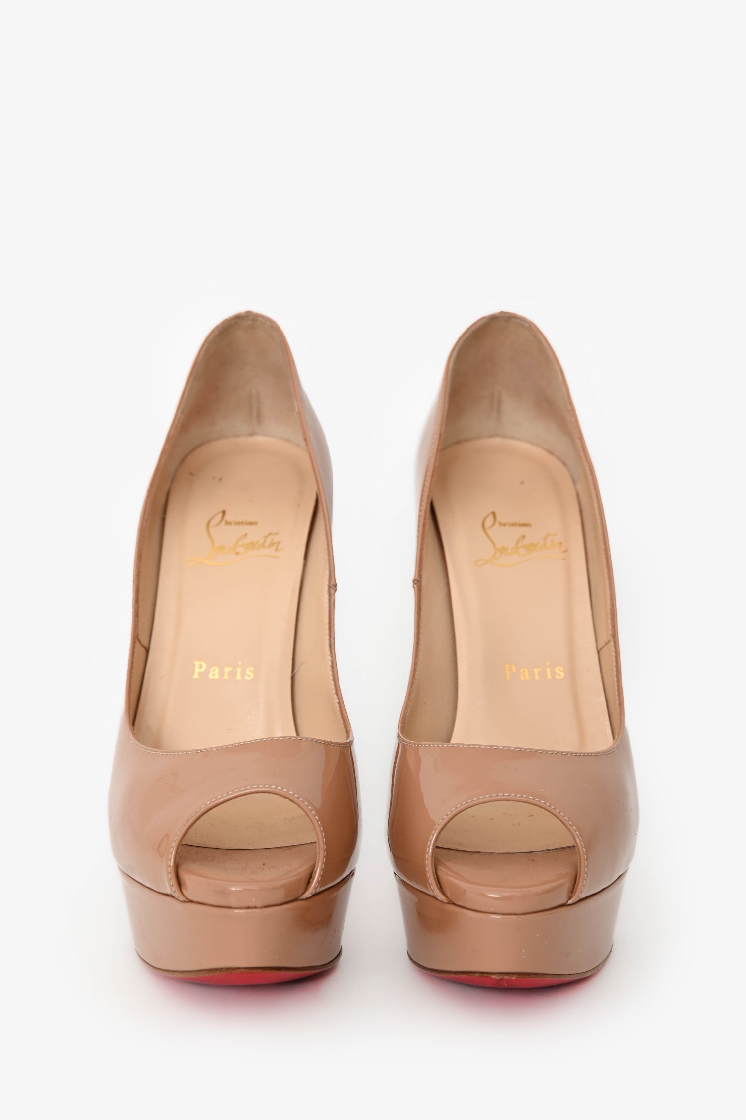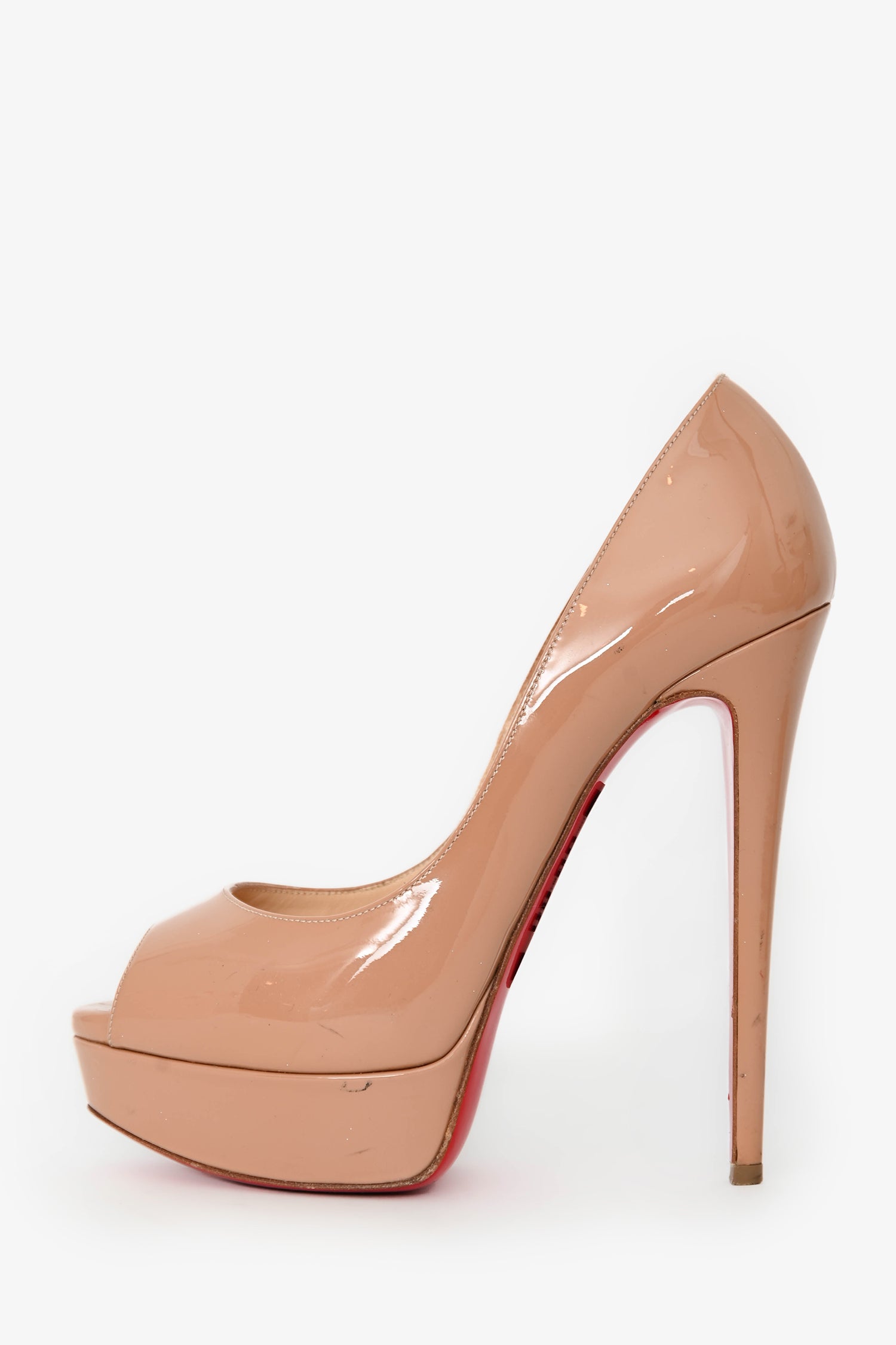 Refresh availabilityChristian Louboutin Nude Peep-Toe Platform Heels. Slip-on. Round peep-toe. Leather insoles. Tonal stitching.