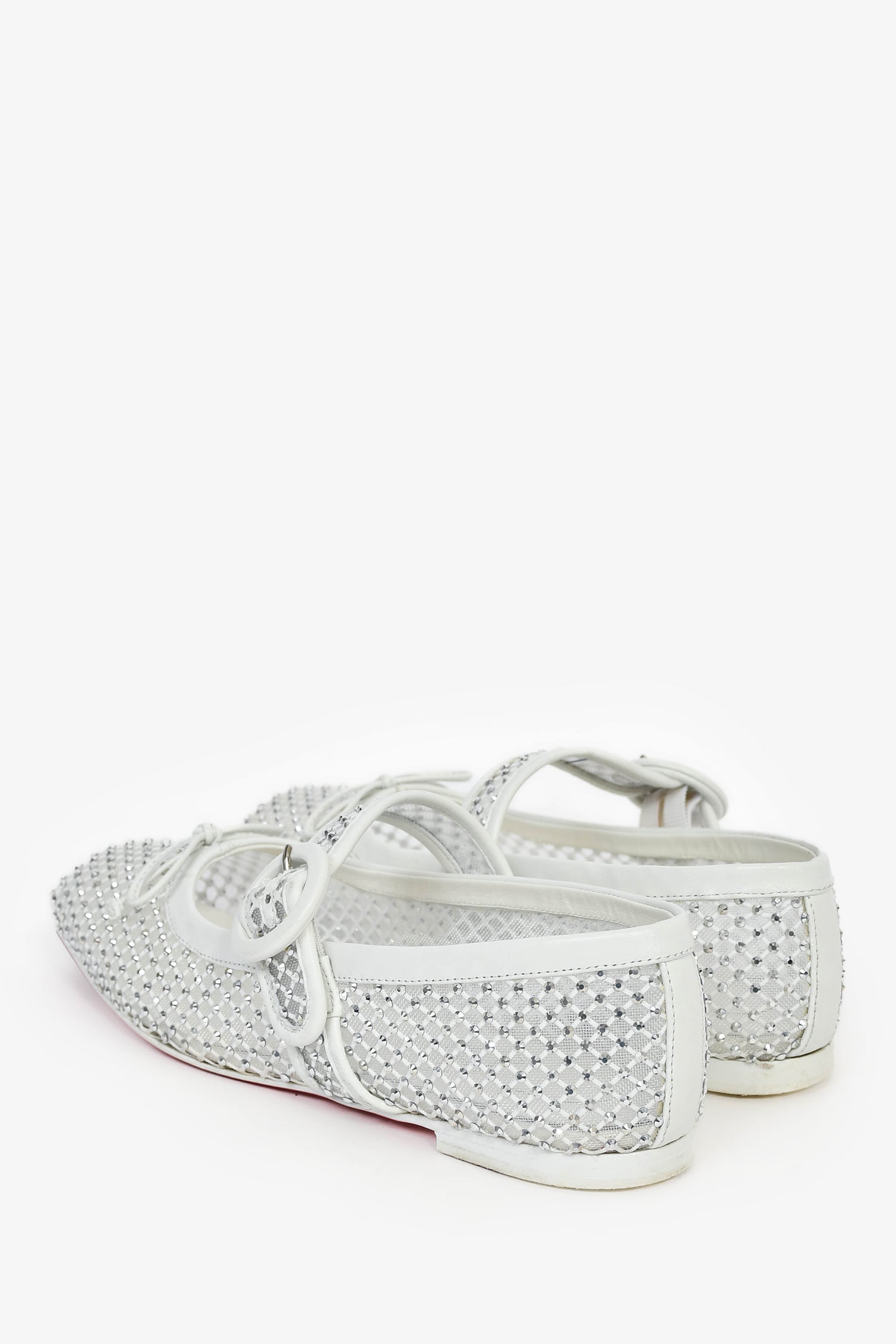 Christian Louboutin White Crystal Mesh Mary Jane Ballet Flats Size 36