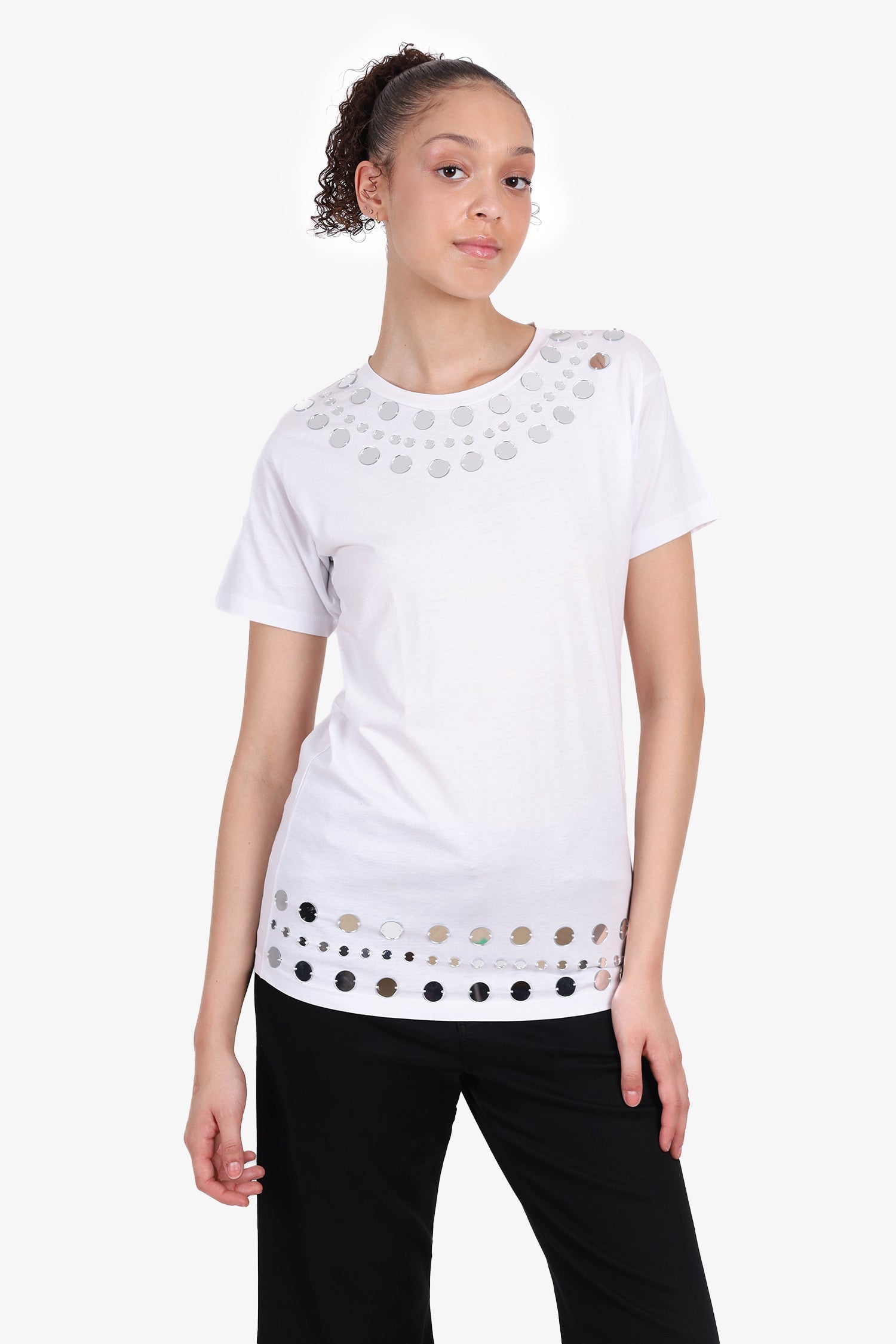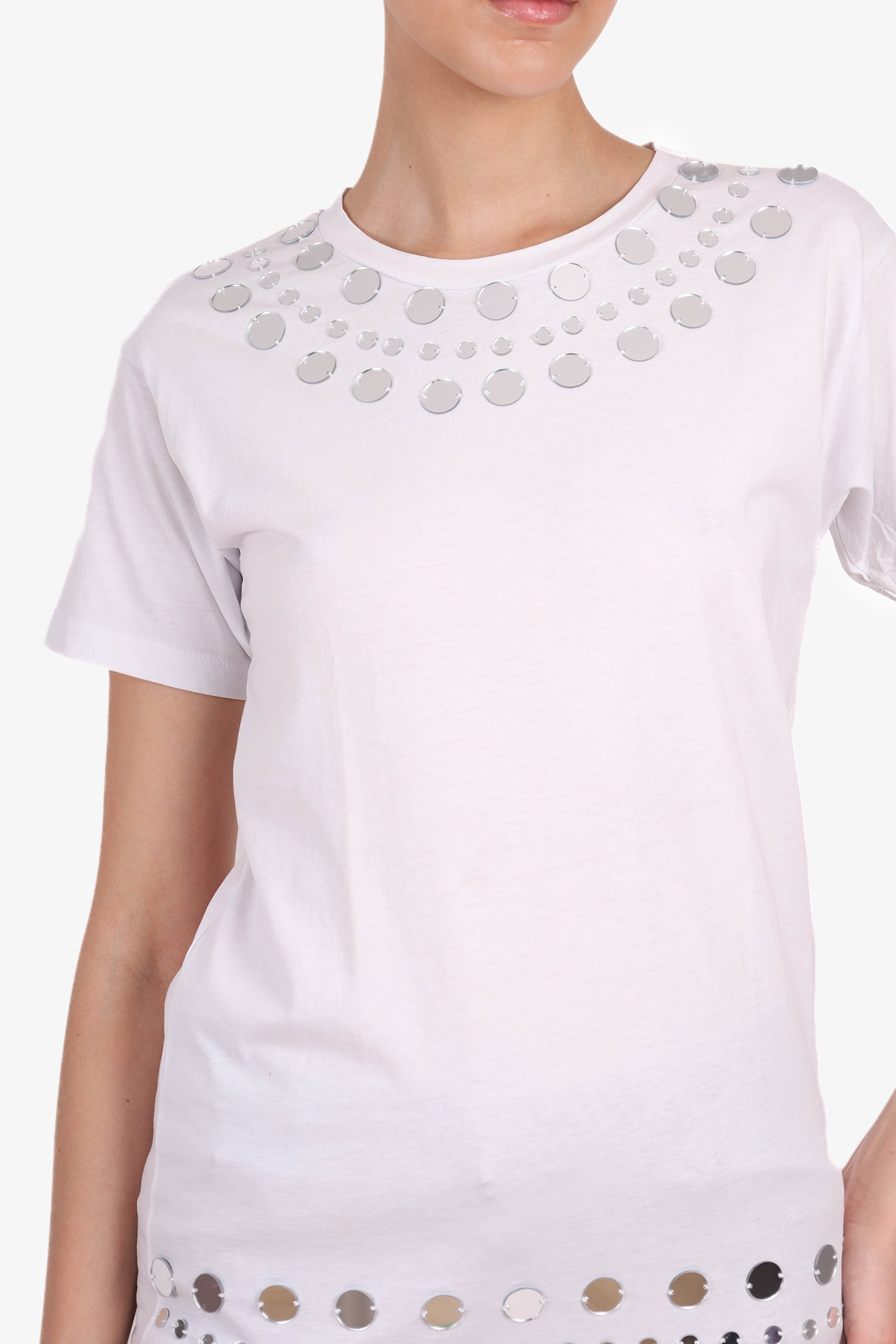 Refresh availabilityChristopher Kane for Topshop White Mirror Embellished T-Shirt. Pull-on. Round neckline. Short-sleeve. Tonal stitching.