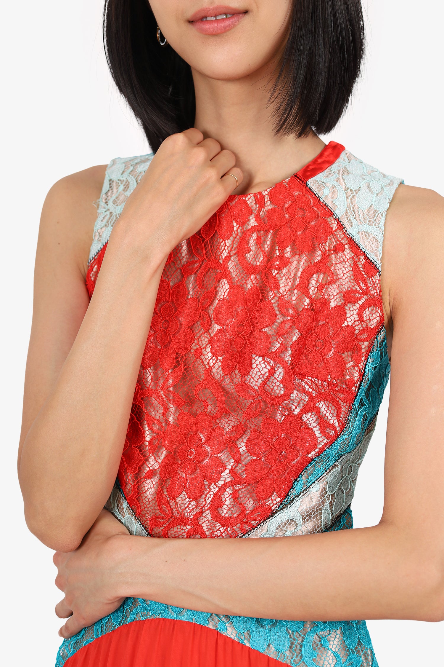 Christopher Kane Orange/Blue Lace Pleated Sleeveless Midi Dress Size 4