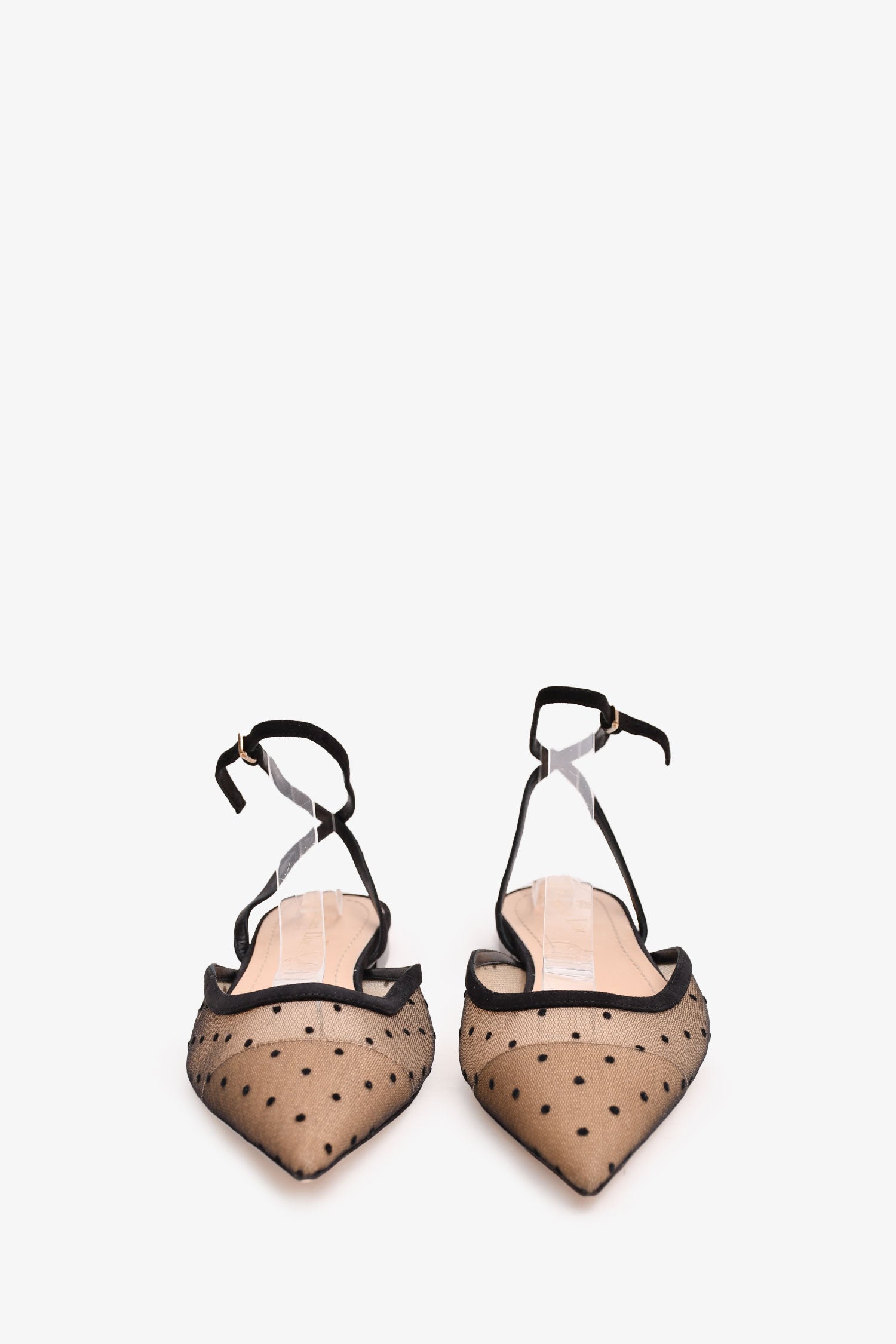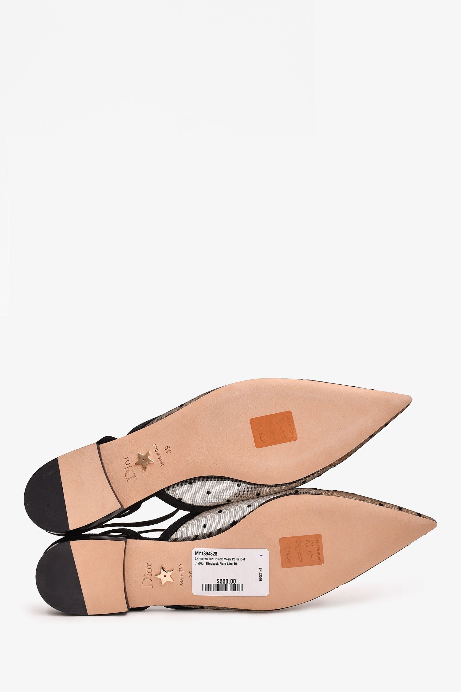 Christian Dior Black Mesh Polka Dot J'aDior Slingback Flats Size 39