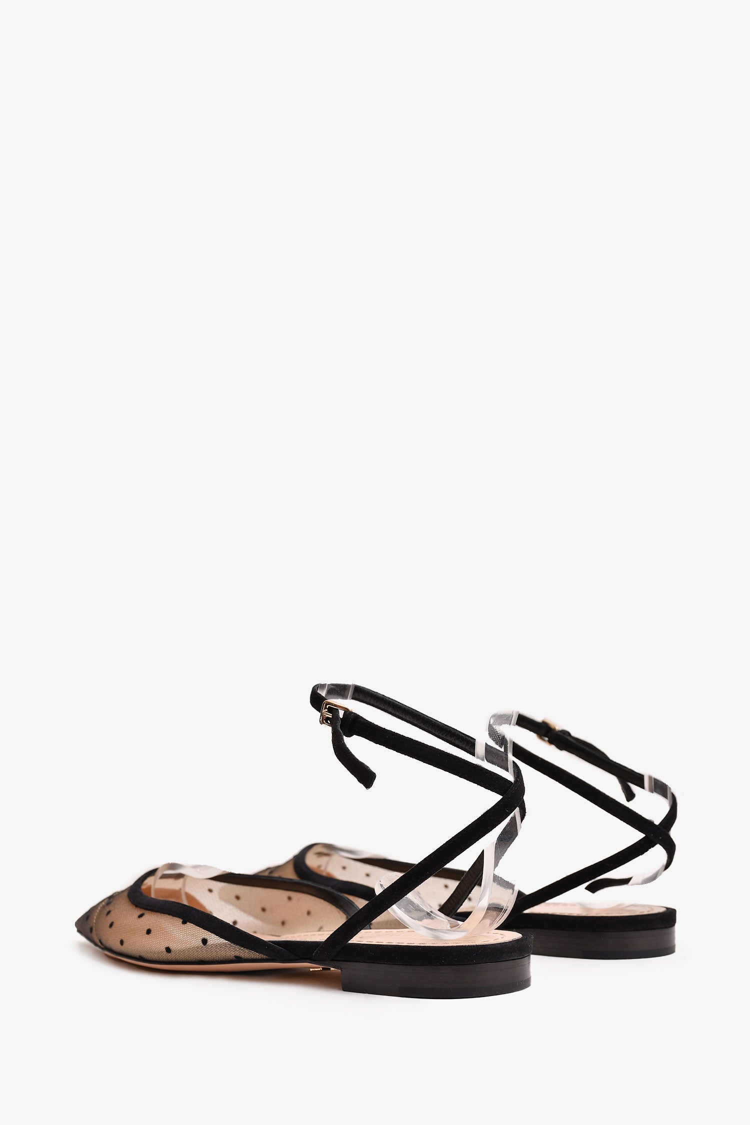 Refresh availabilityChristian Dior Black Mesh Polka Dot J'aDior Slingback Flats. Ankle strap with buckle closure. Tonal stitching.