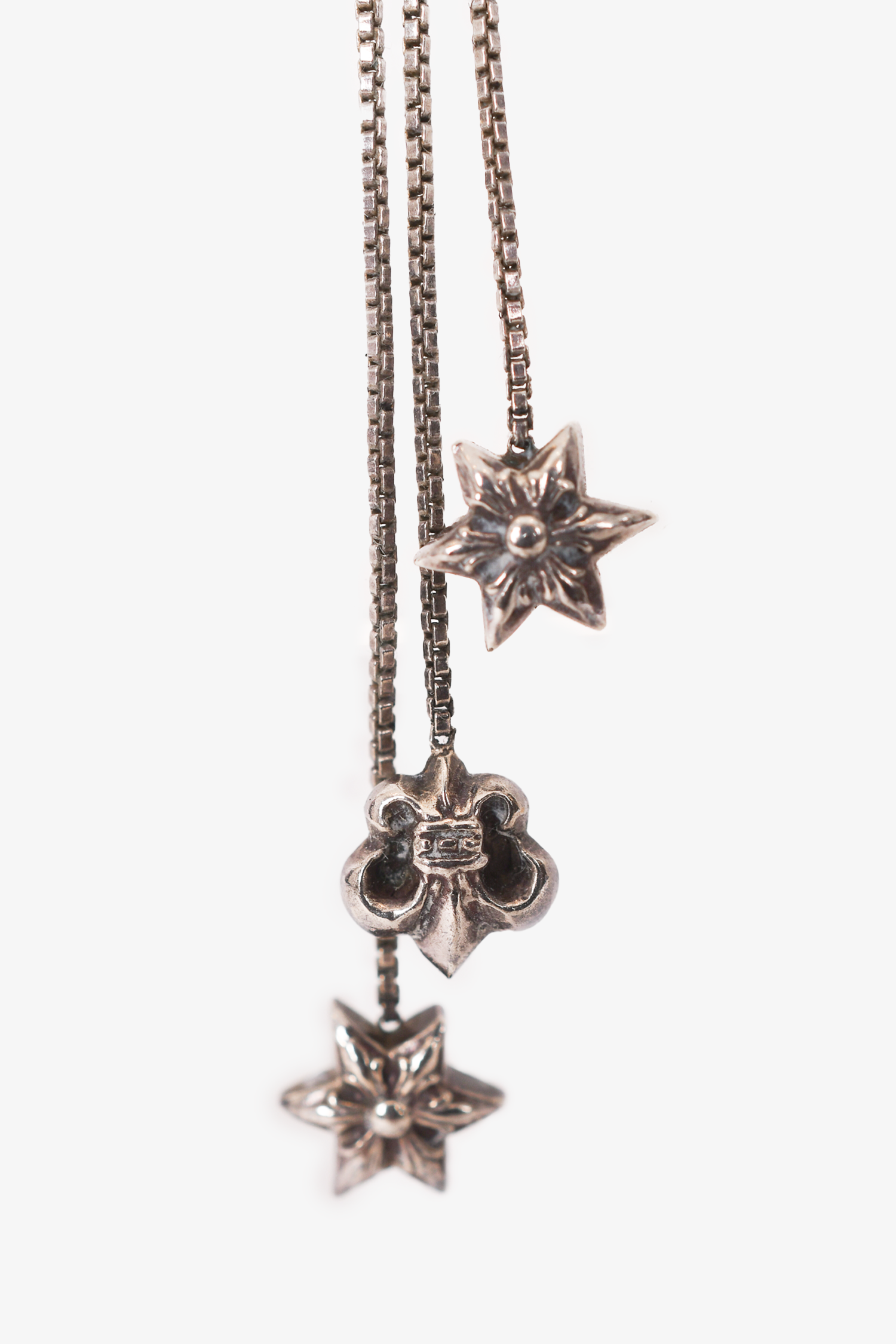 Refresh availabilityChrome Hearts Silver Logo Charms Dangling Asymmetrical Earrings.