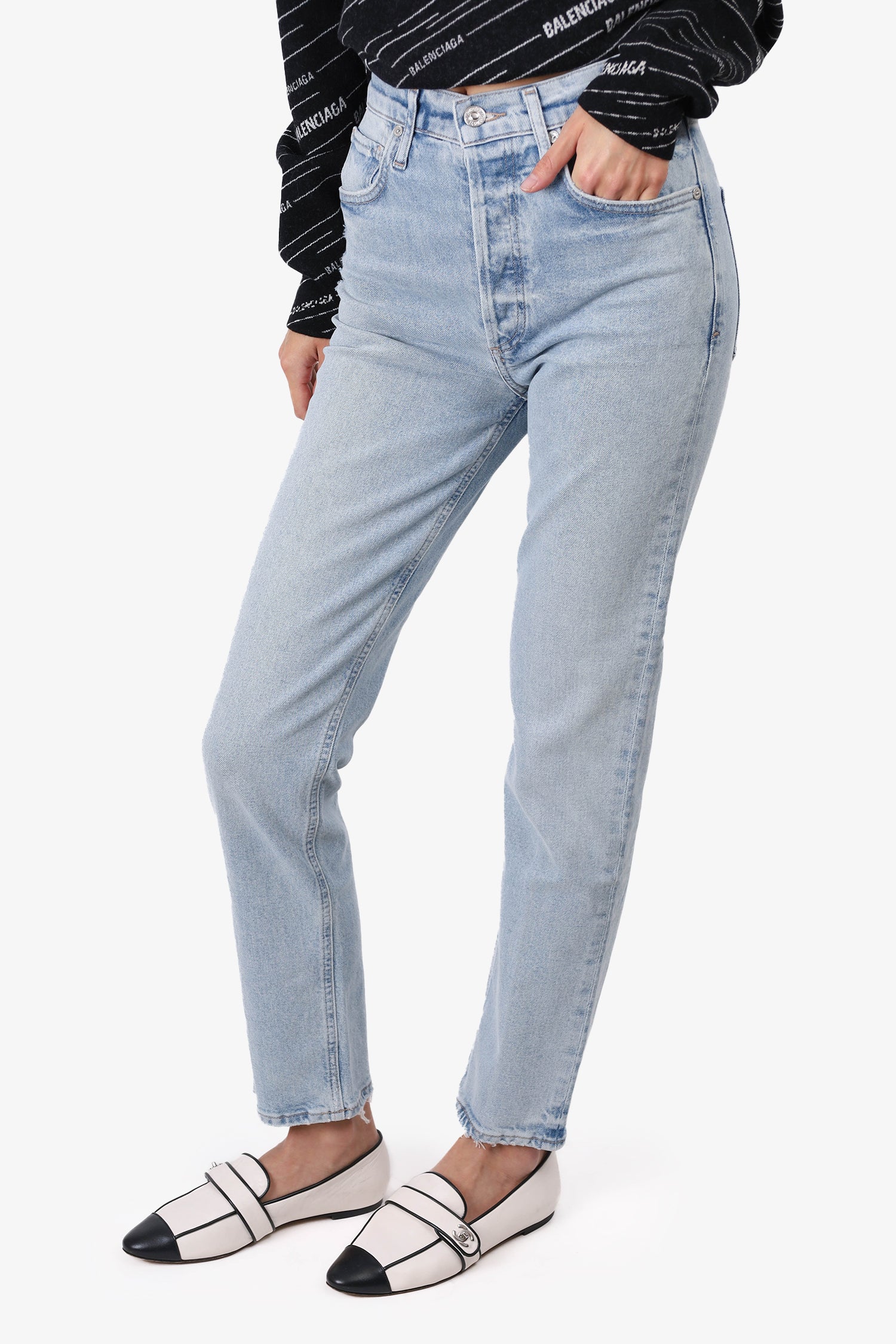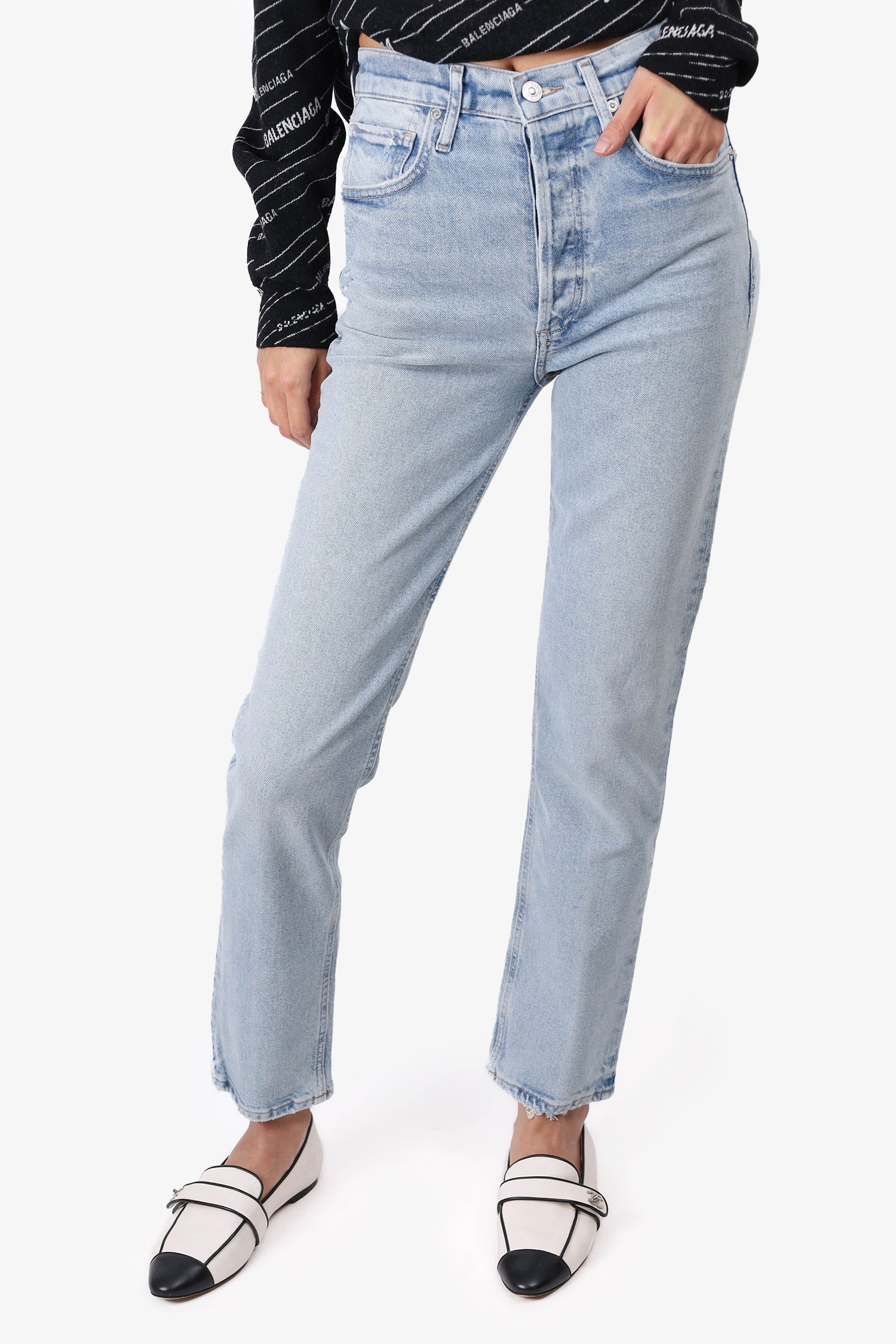 Refresh availabilityCitizens of Humanity Blue High Rise. Front button and zip closure. Front and rear slip pockets. Belt loops around waistline. Contrast stitching.