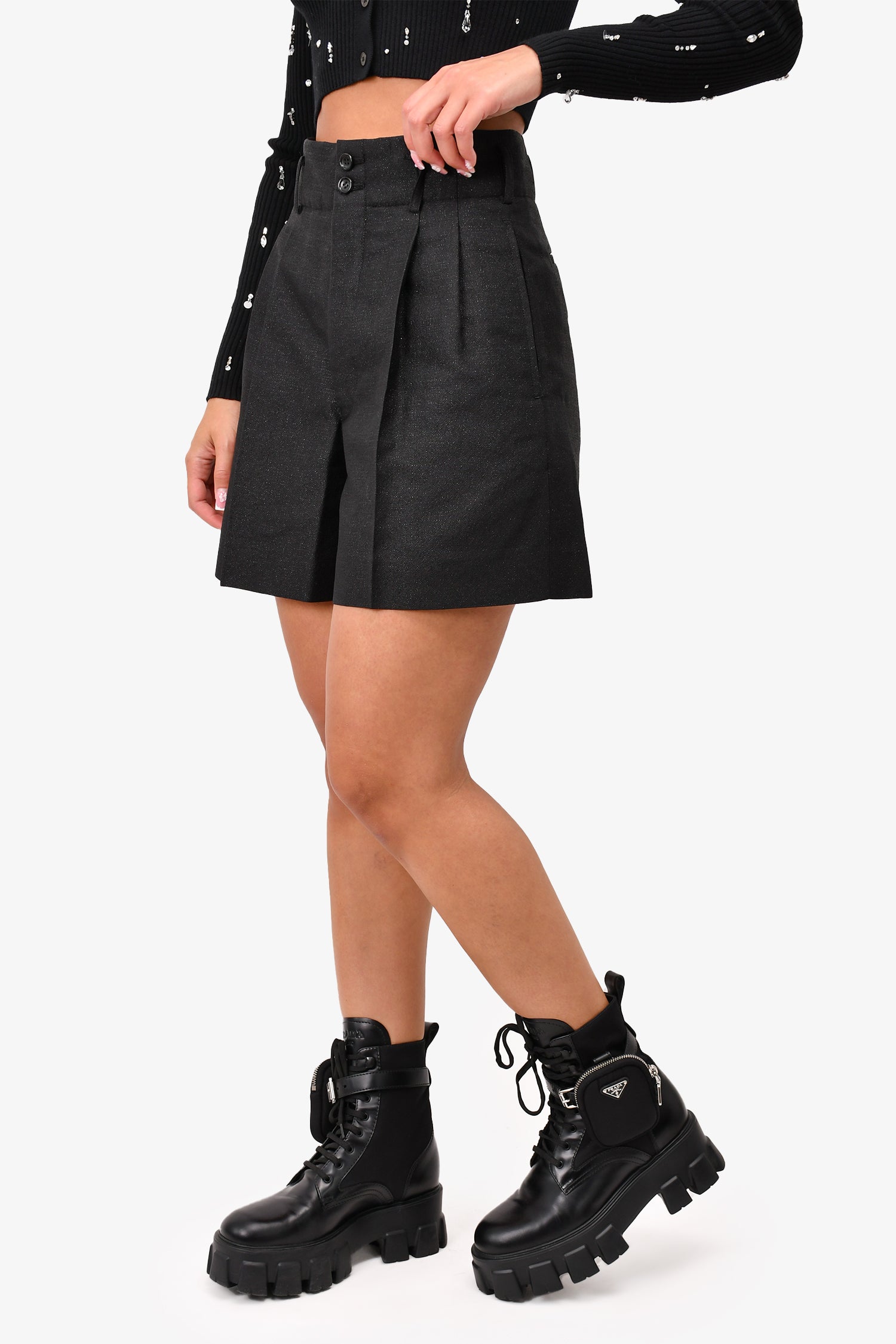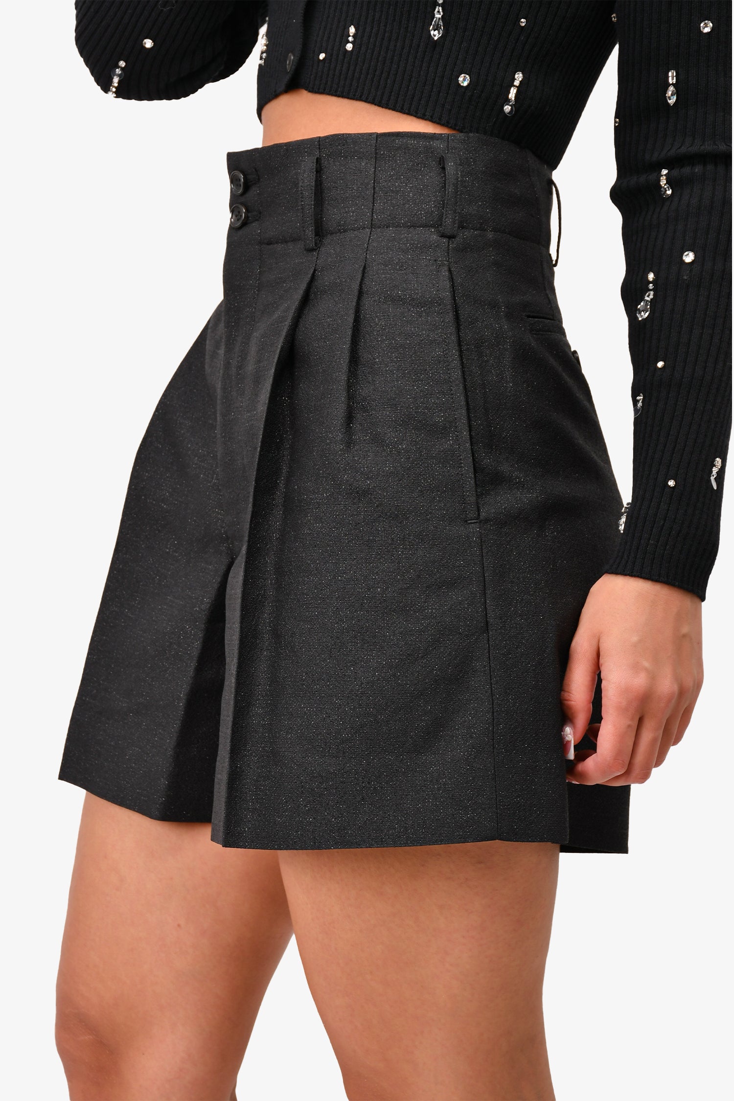 Comme Des Garcons Black Glitter Detail Pleated Shorts Size XS