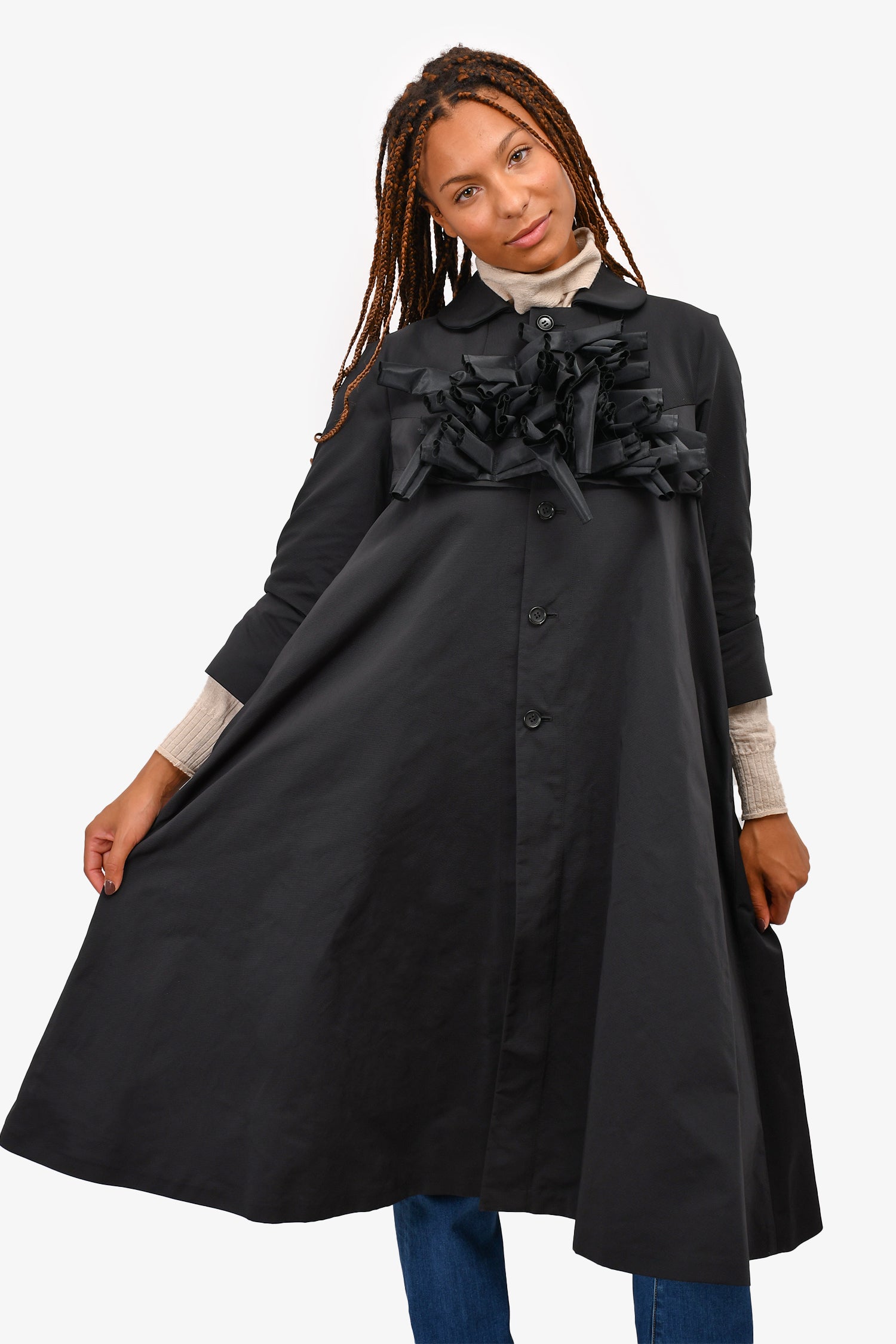 Comme des Garcons Black Nylon Long Trench Coat with Bows Size M
