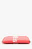 Refresh availabilityComme des Garcons Red Leather Mini Zip Pouch. Embossed logo on front. Top zip closure. Gold-tone hardware. Tonal stitching.