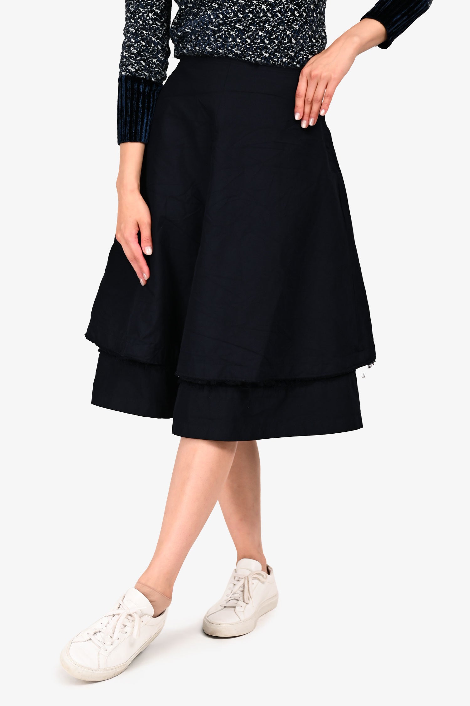 Refresh availabilityComme des Garcons Shiny Blue Exposed Pocket Skirt. Side zip and hook closure. Lined.