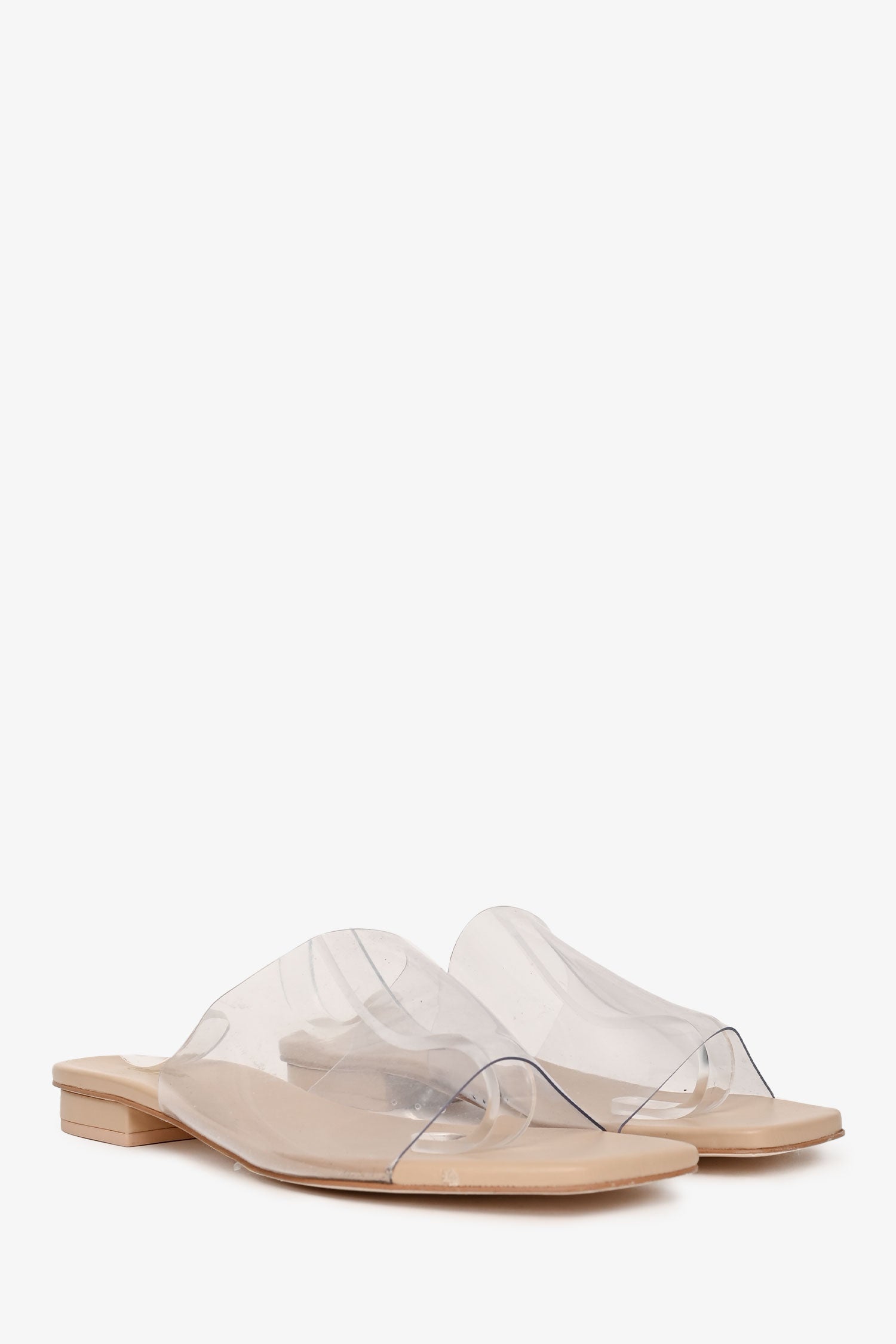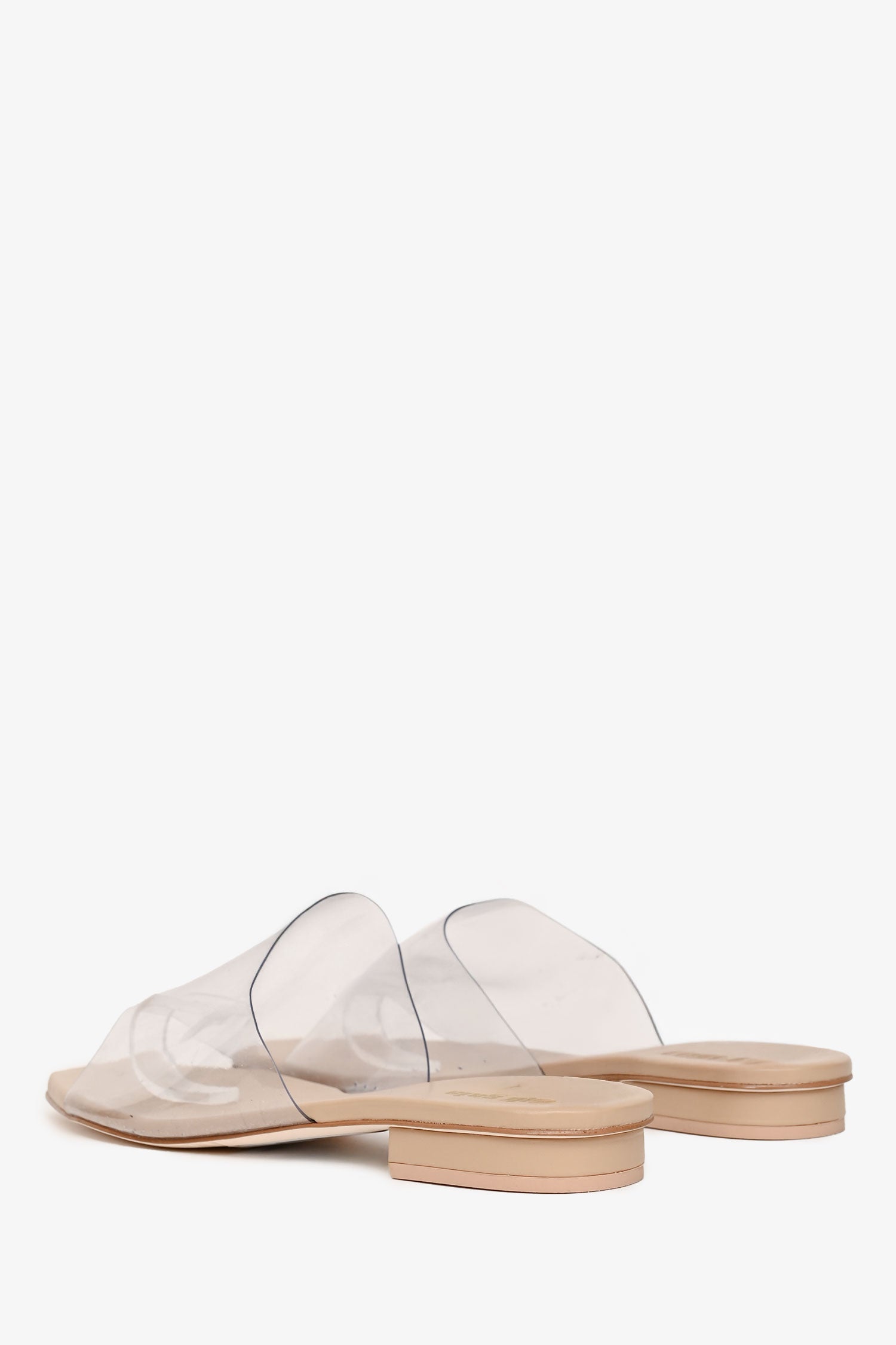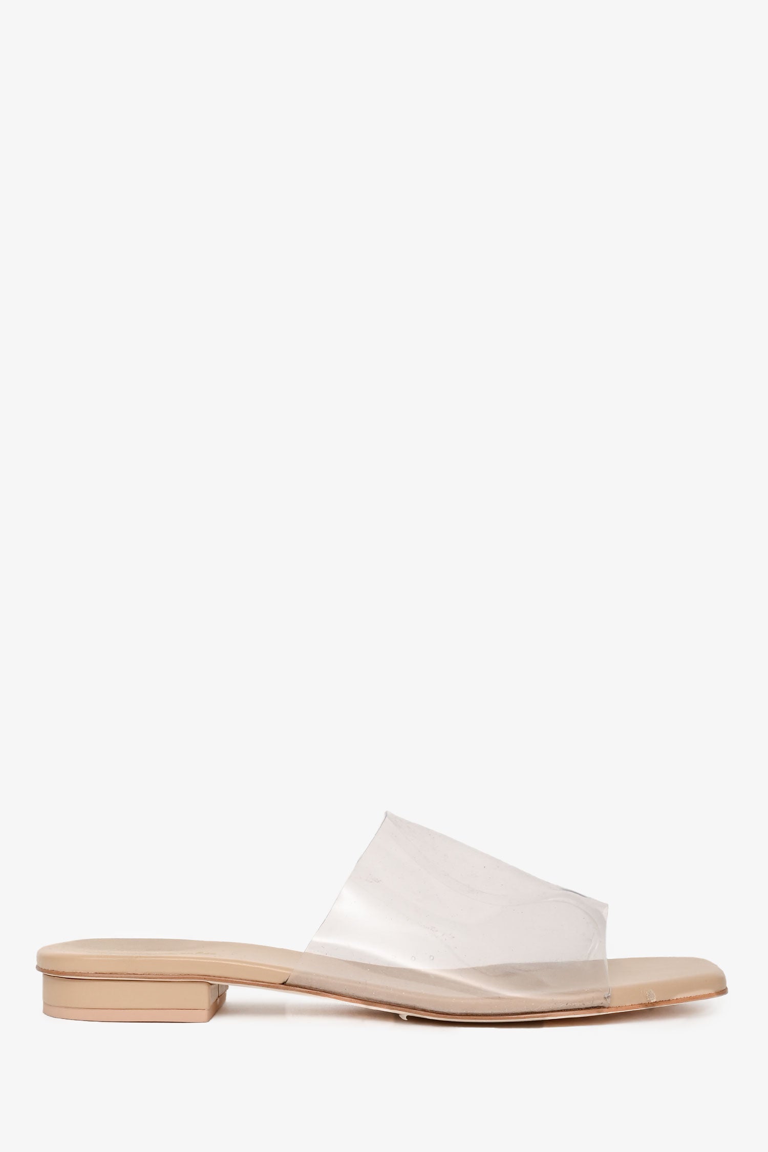 Refresh availabilityCult Gaia Beige Leather/PVC Slides. Square toe. PVC foot strap. Leather insoles. Tonal stitching.