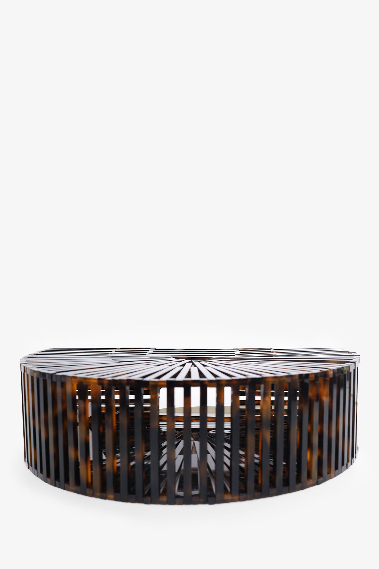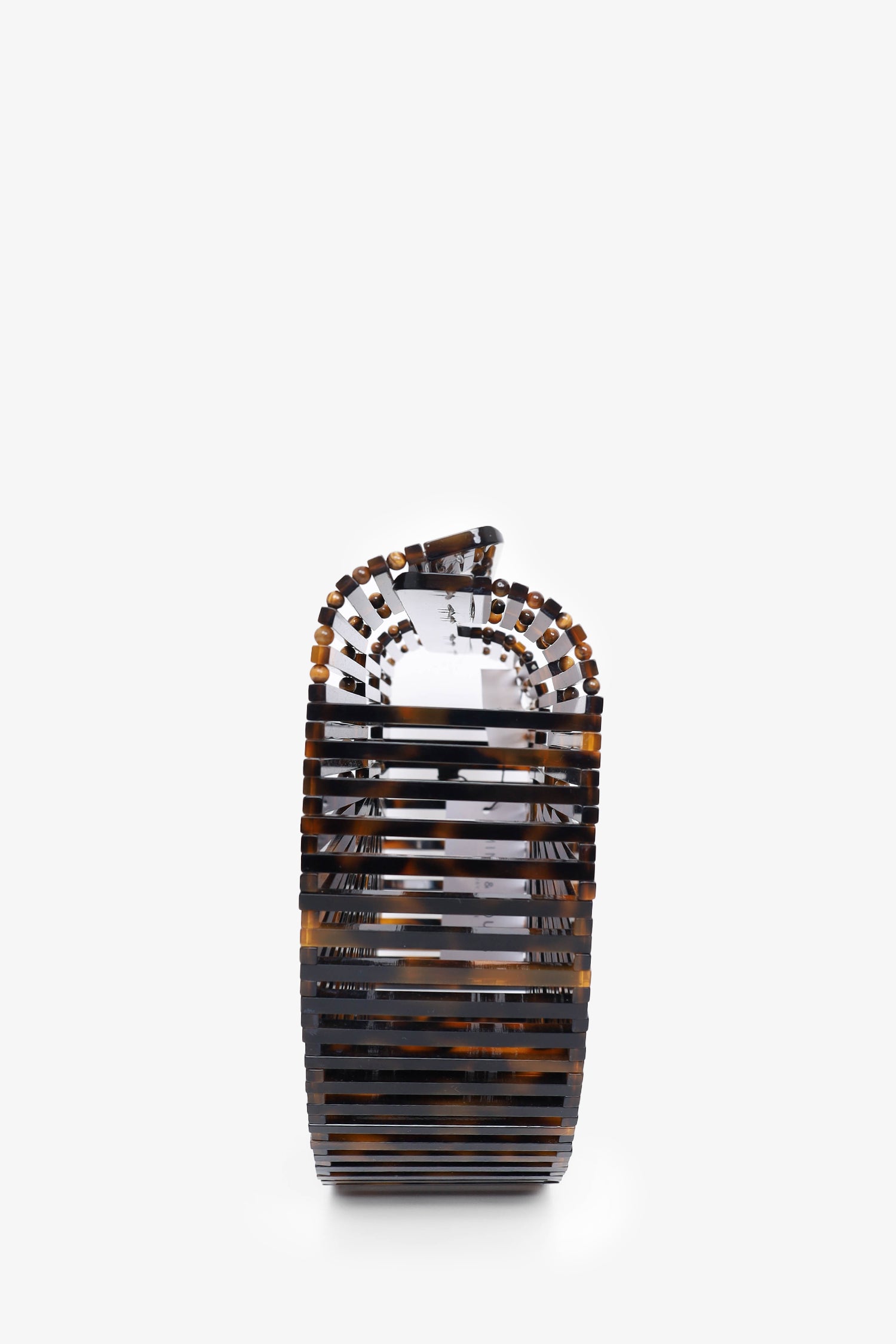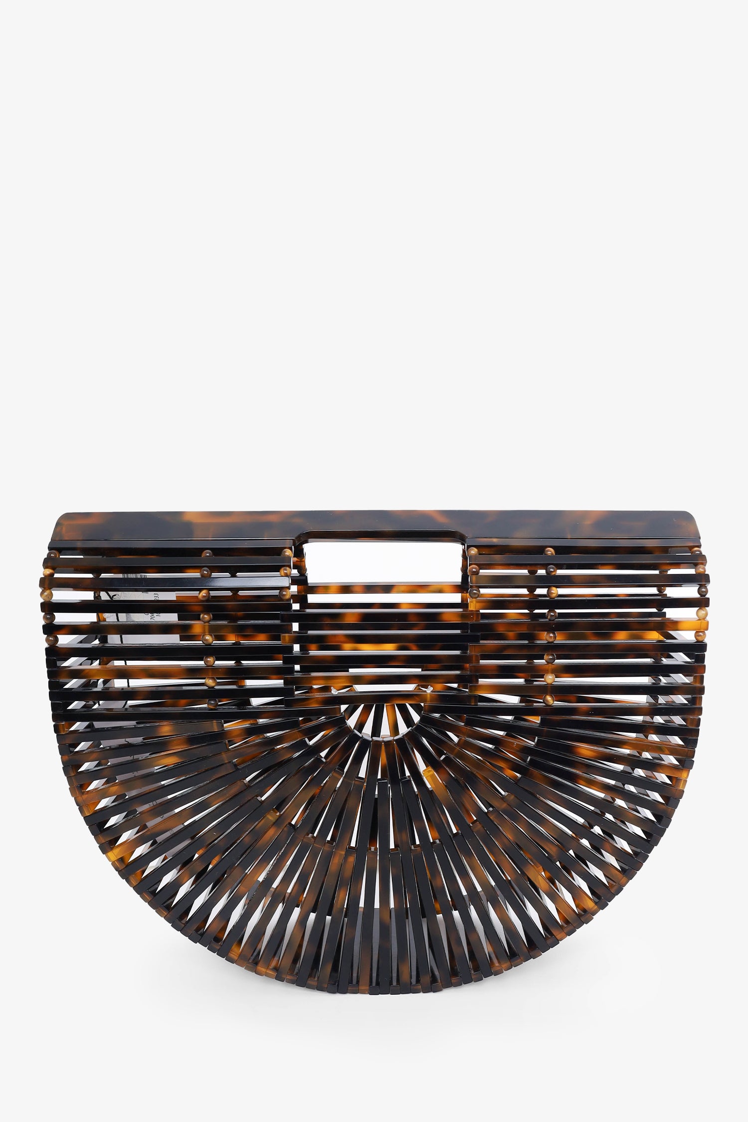 Refresh availabilityCult Gaia Brown Acrylic Ark Clutch Bag. Pull-a part top handle. Open interior.