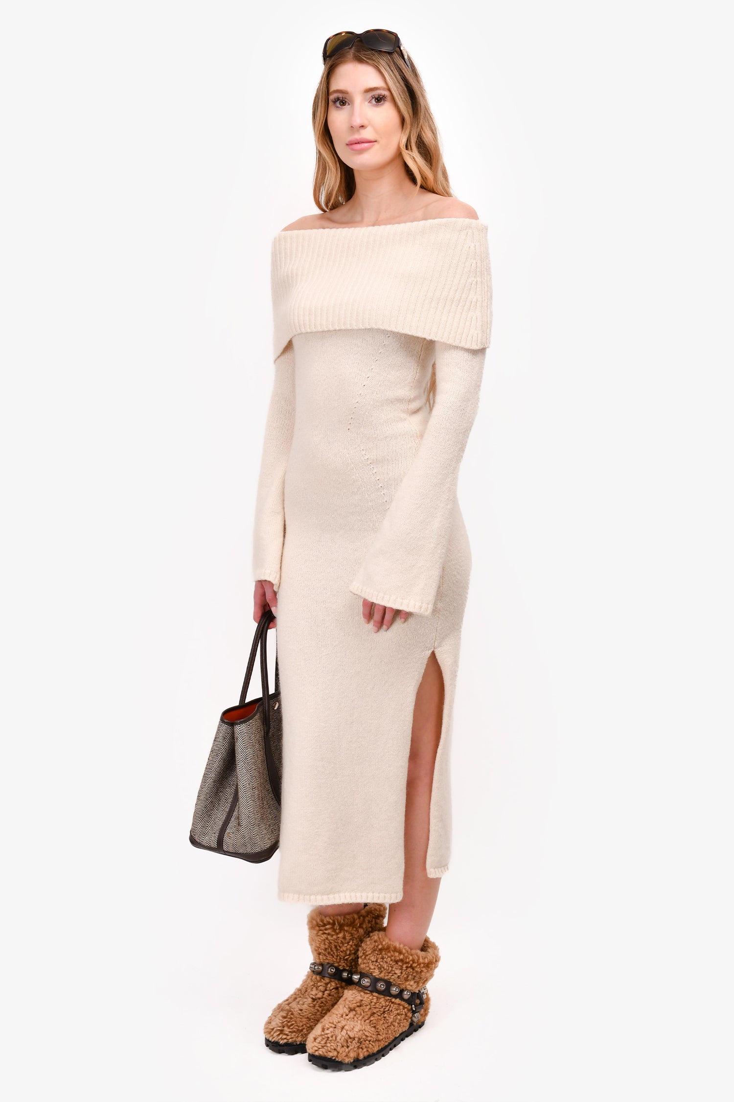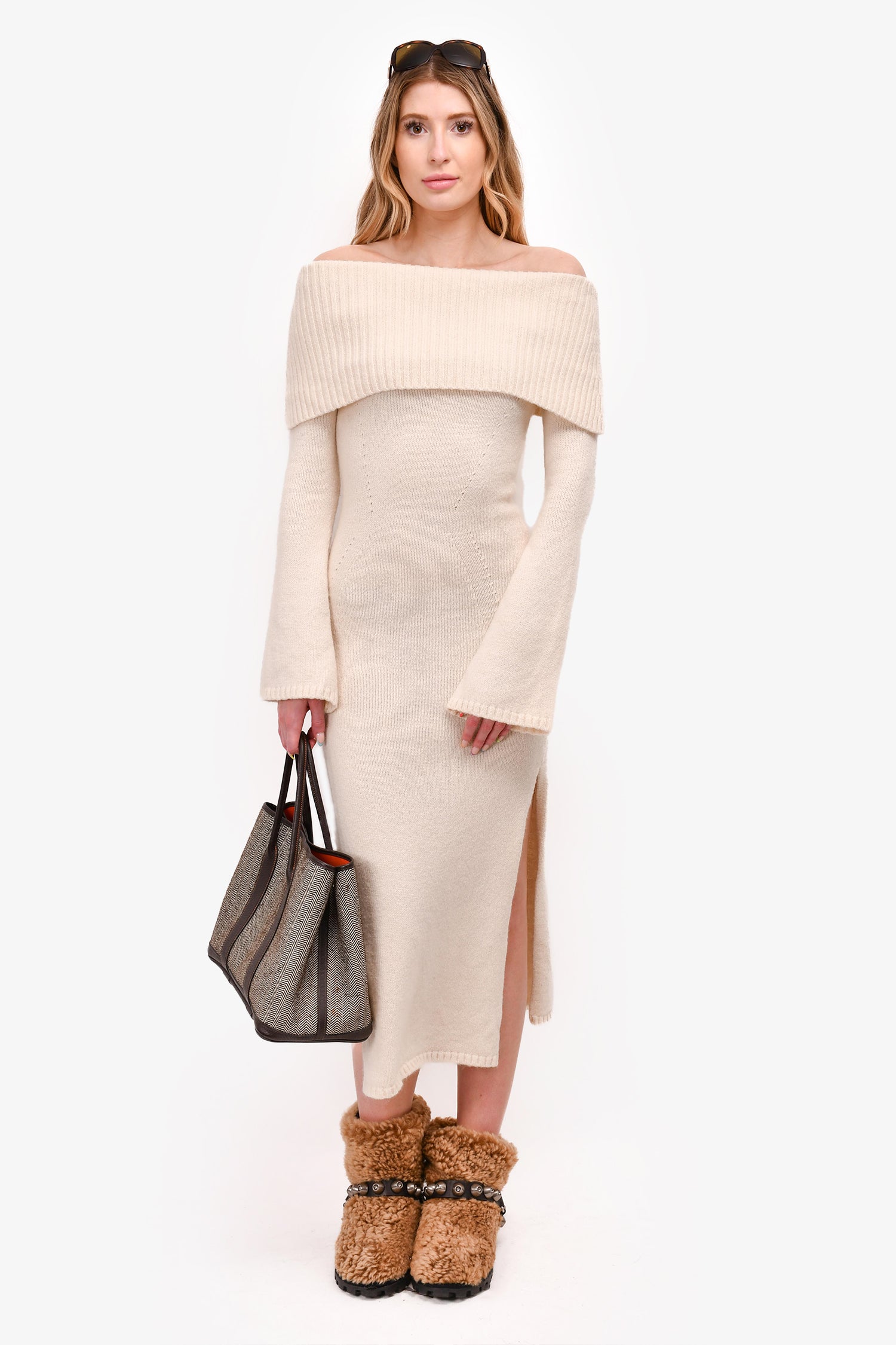 Cult Gaia Cream Mohair/Wool Blend Off the Shoulder 'Mariel' Midi Dress Size S