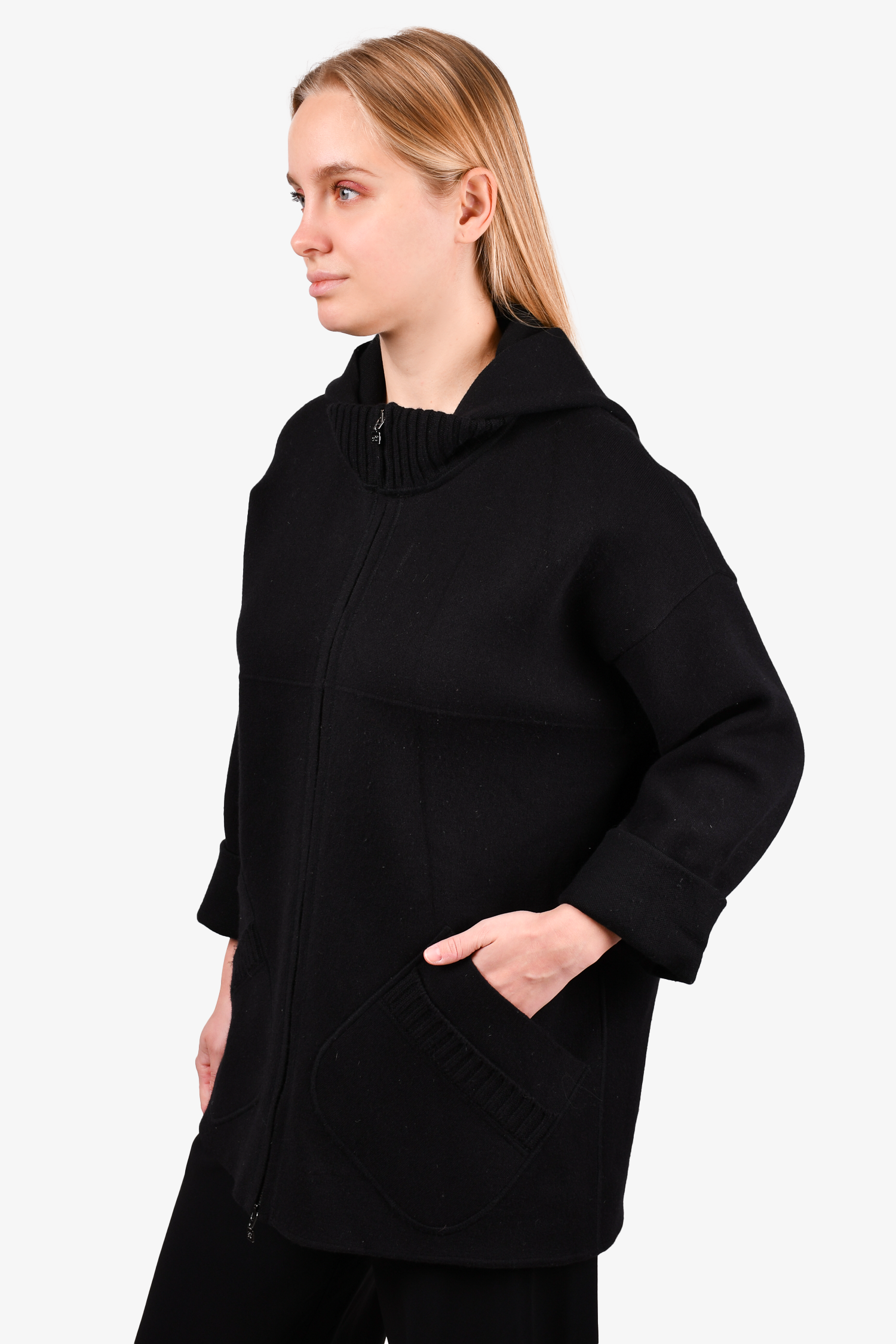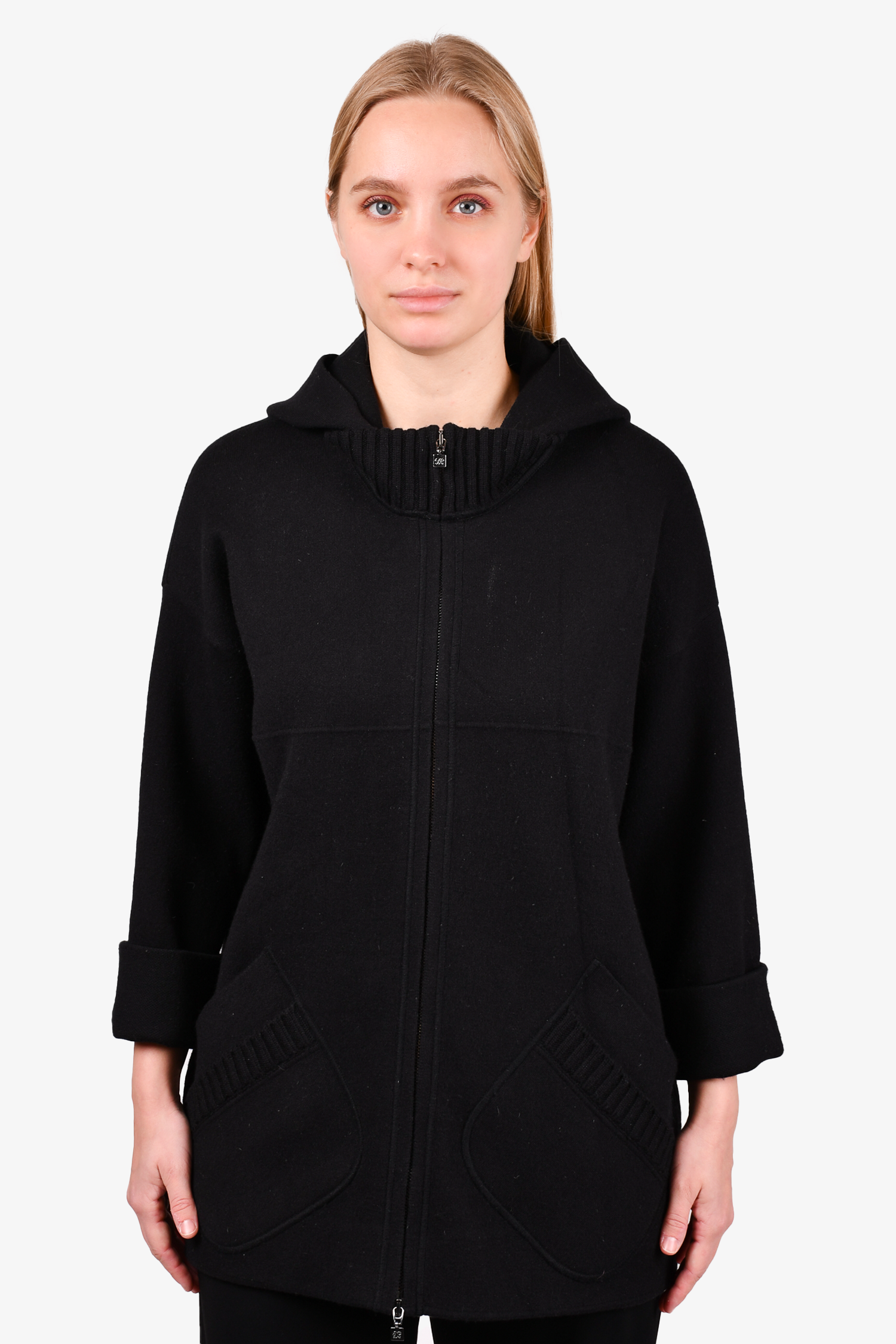 Refresh availabilityD Exterior Black Wool/Cashmere Oversized Zip-Up Sweater Jacket. Unlined. Tonal stitching.