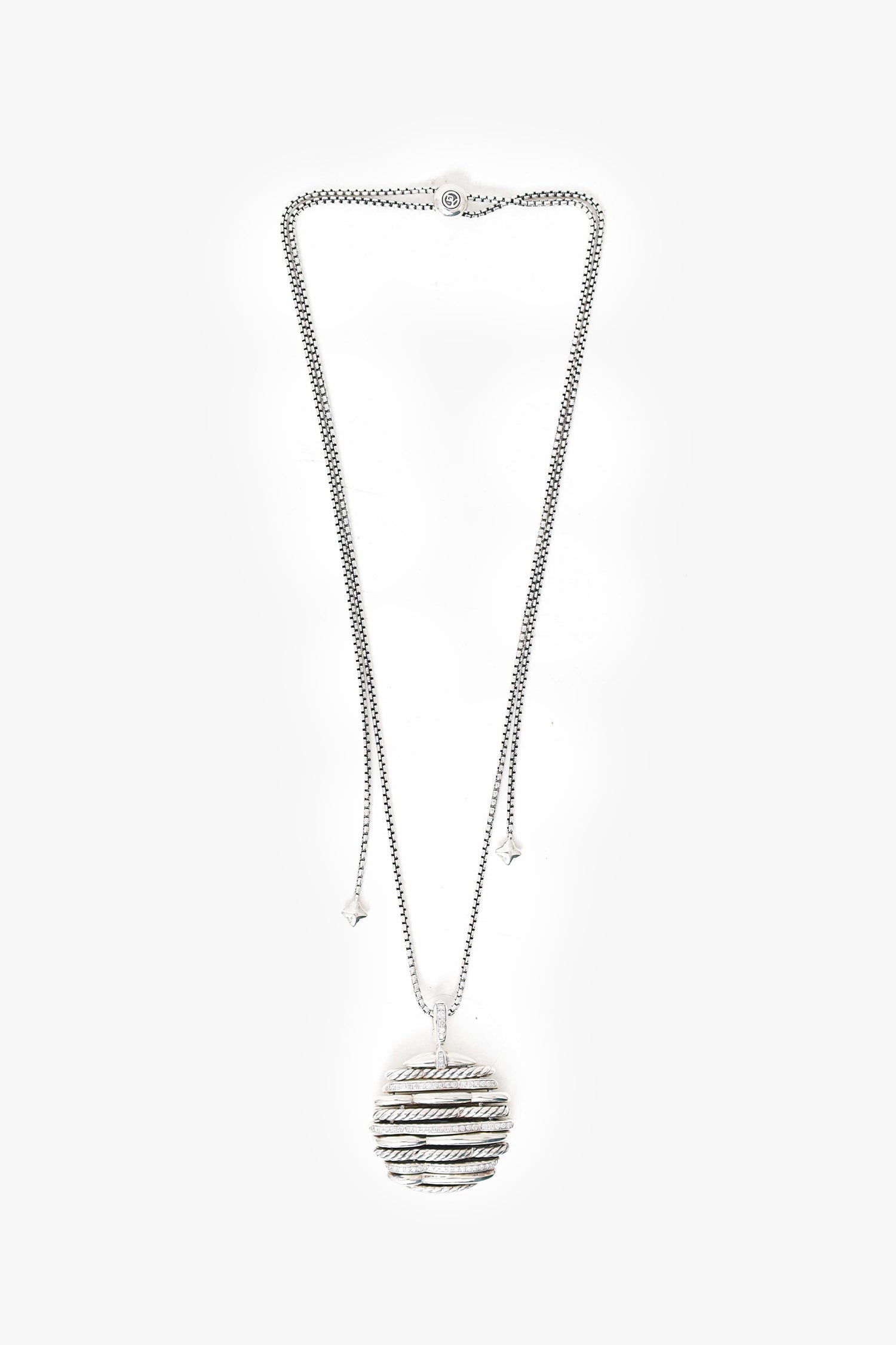 Refresh availabilityDavid Yurman Sterling Silver/Diamond Tides Pendant Necklace. Adjustable cinching closure. Silver-tone hardware.