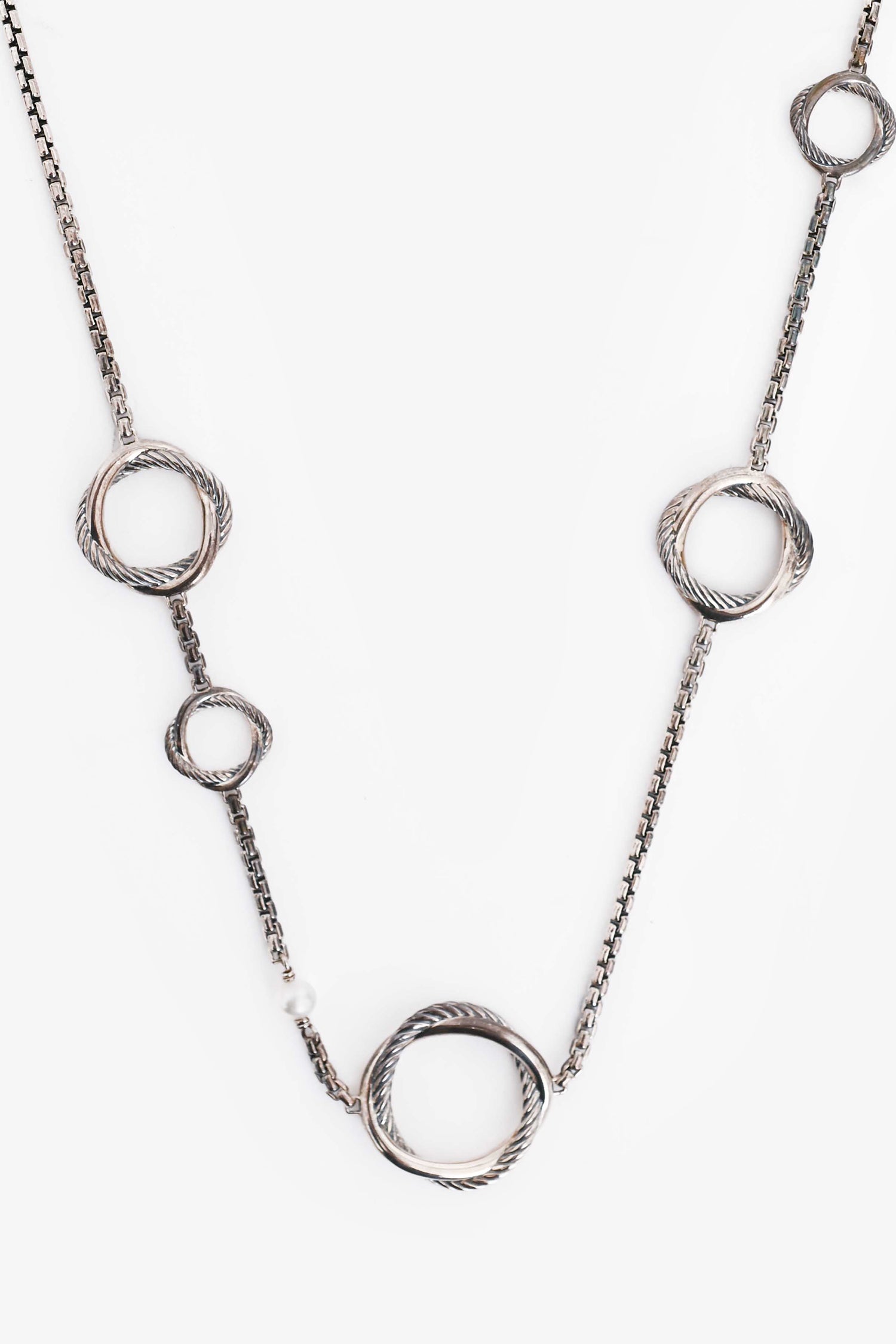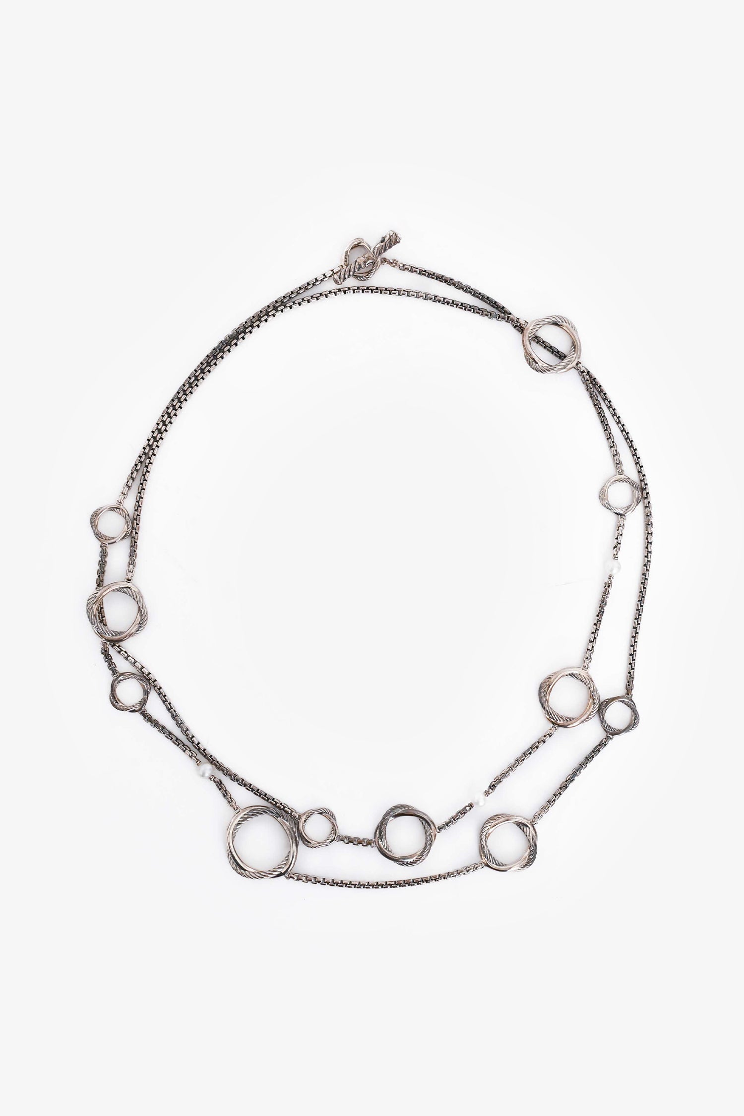 Refresh availabilityDavid Yurman Sterling Silver/Pearl Infinity Station Chain Necklace. Toggle clasp closure.