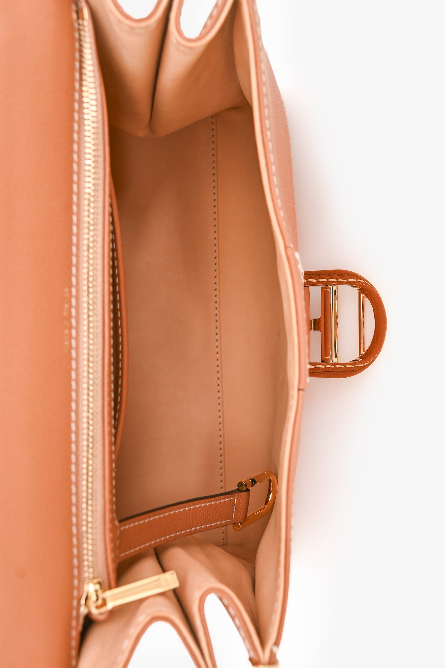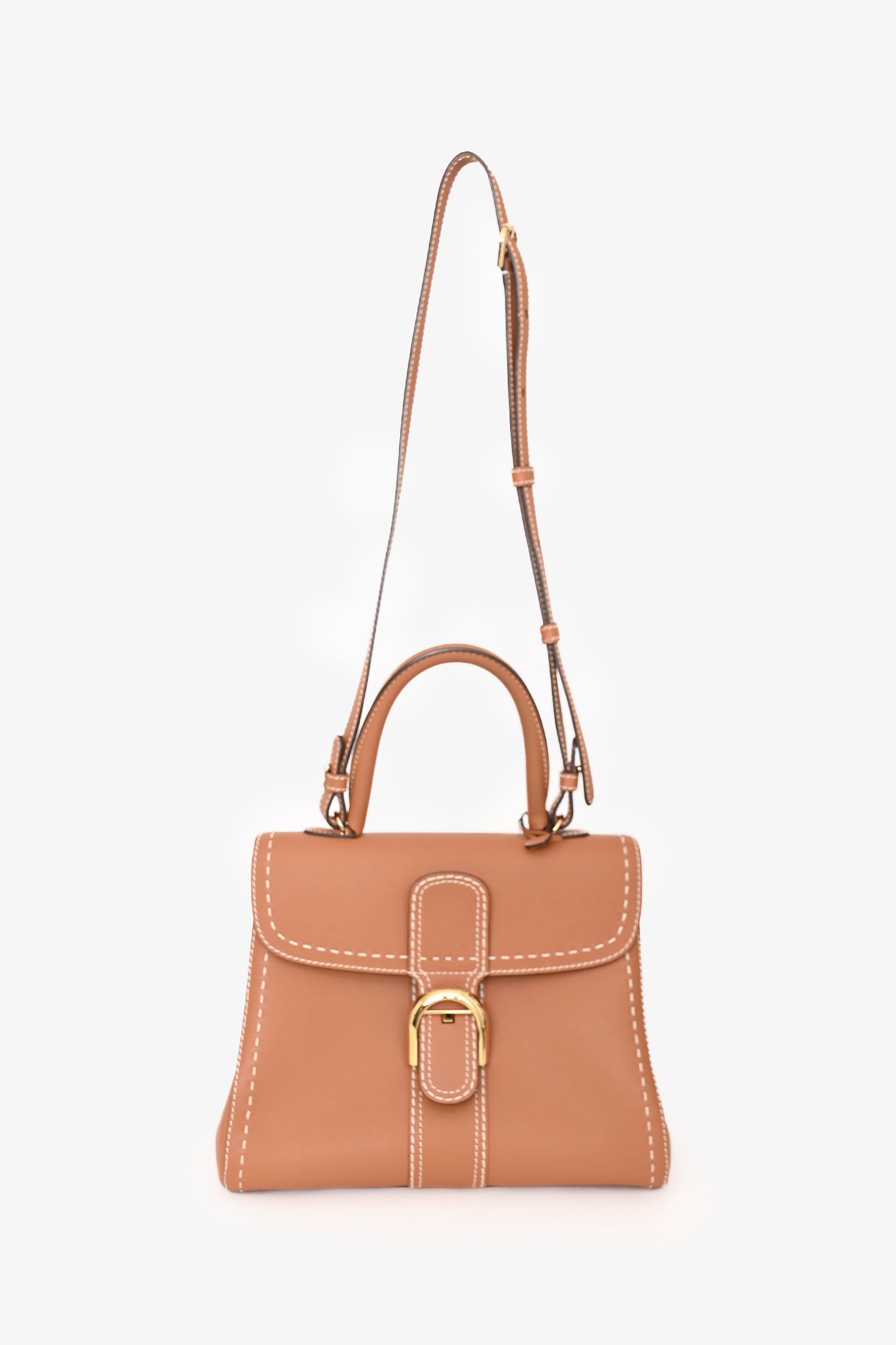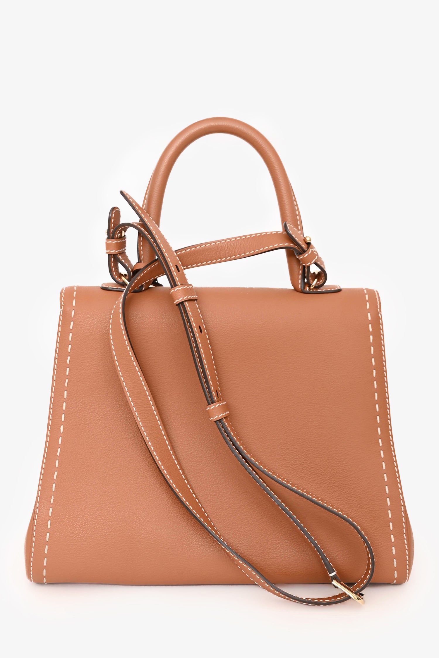Delvaux Brown Leather Stitch Detail Le Brilliant MM Top Handle Gold Hardware with Strap