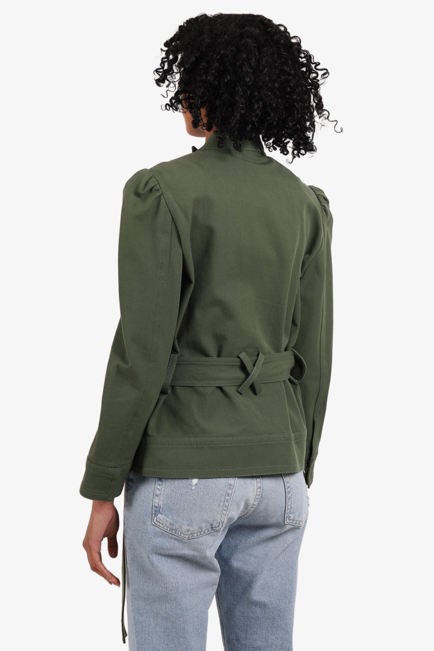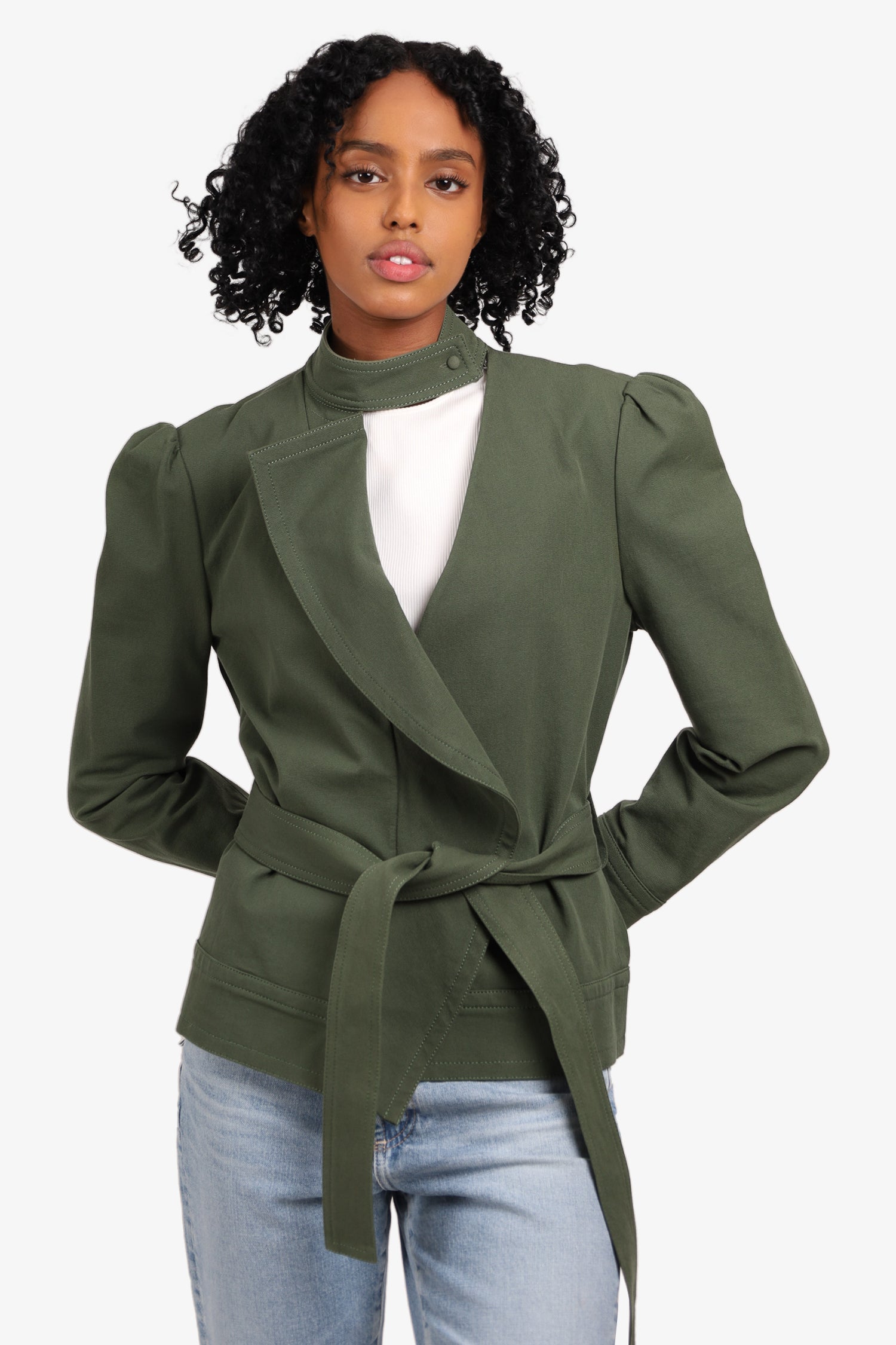 Dereck Lam 10 Crosby Green Cotton Belted Jacket Size 4