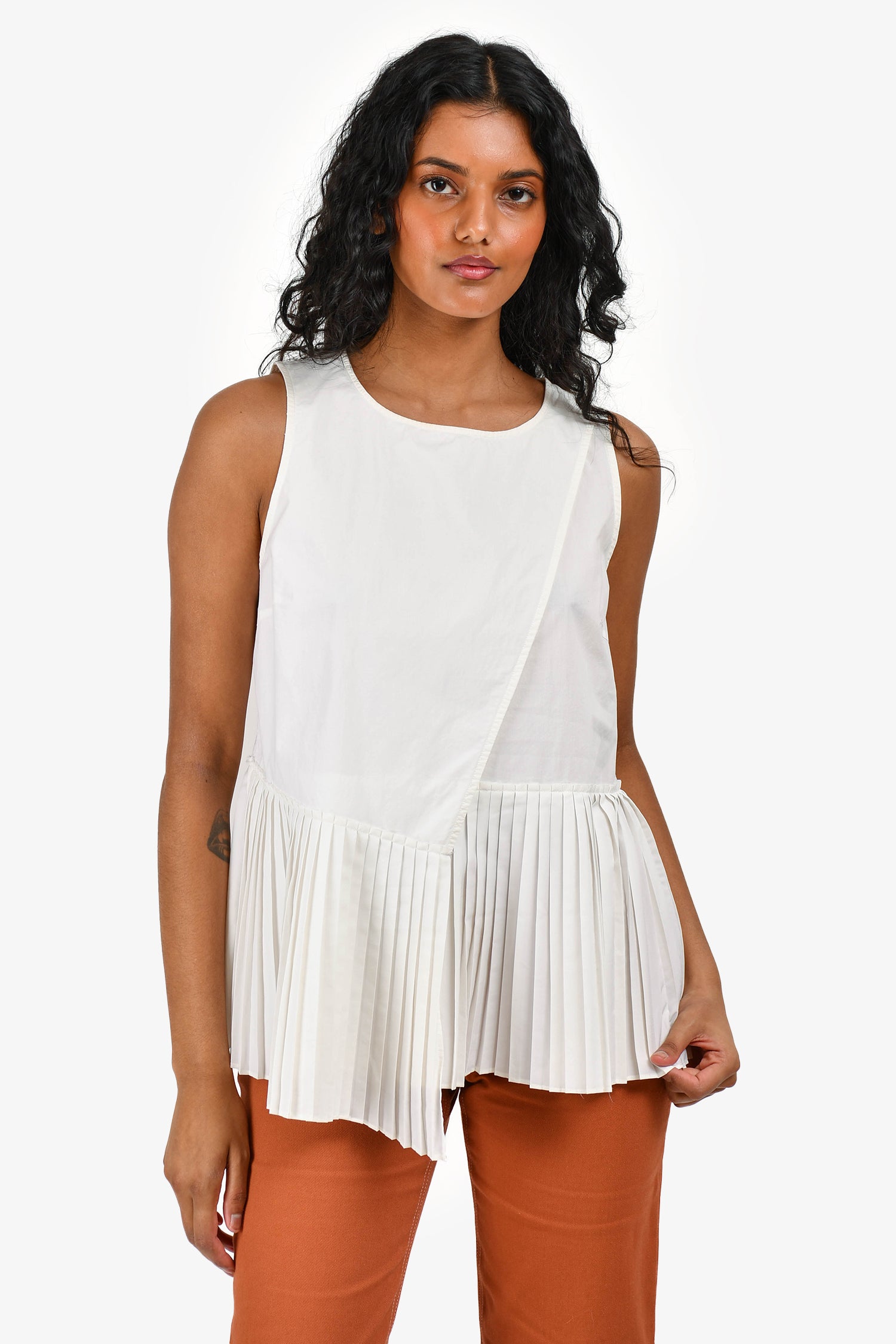 Refresh availabilityDerek Lam White Poplin Pleated Tank Top. Crisp cotton poplin fabric. Sleeveless design. Round neckline. Pleated detailing at front. Relaxed fit. Tonal stitching.