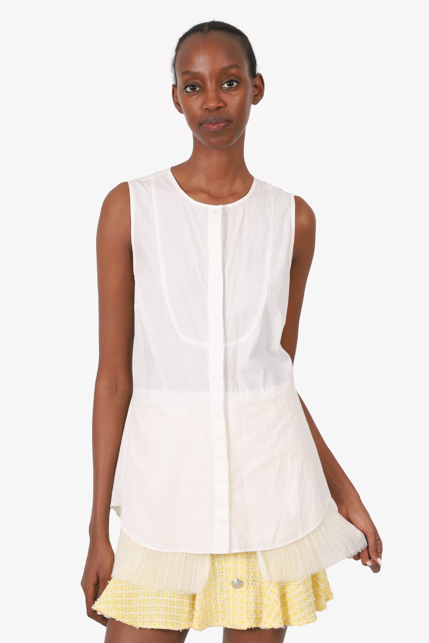 Derek Lam White Sleeveless Pleated Raw Hem Detail Blouse Estimated Size S