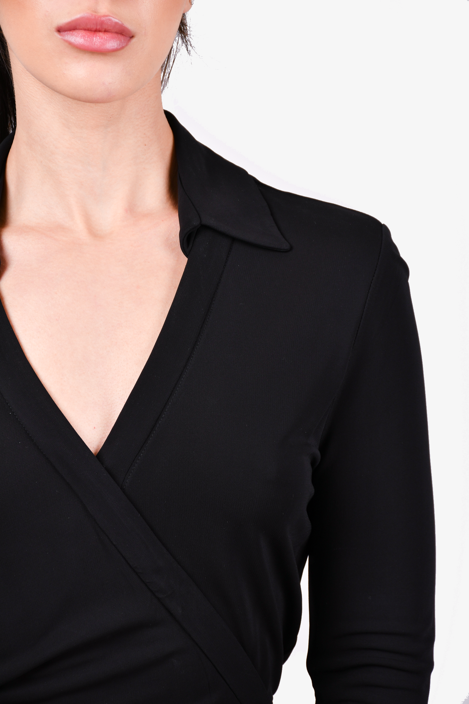 Refresh availabilityDiane Von Furstenberg Black Collared Wrap Dress. Wrap closure. Tonal stitching.