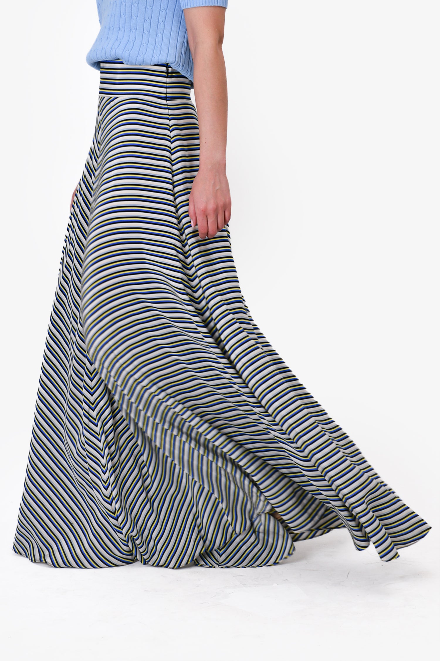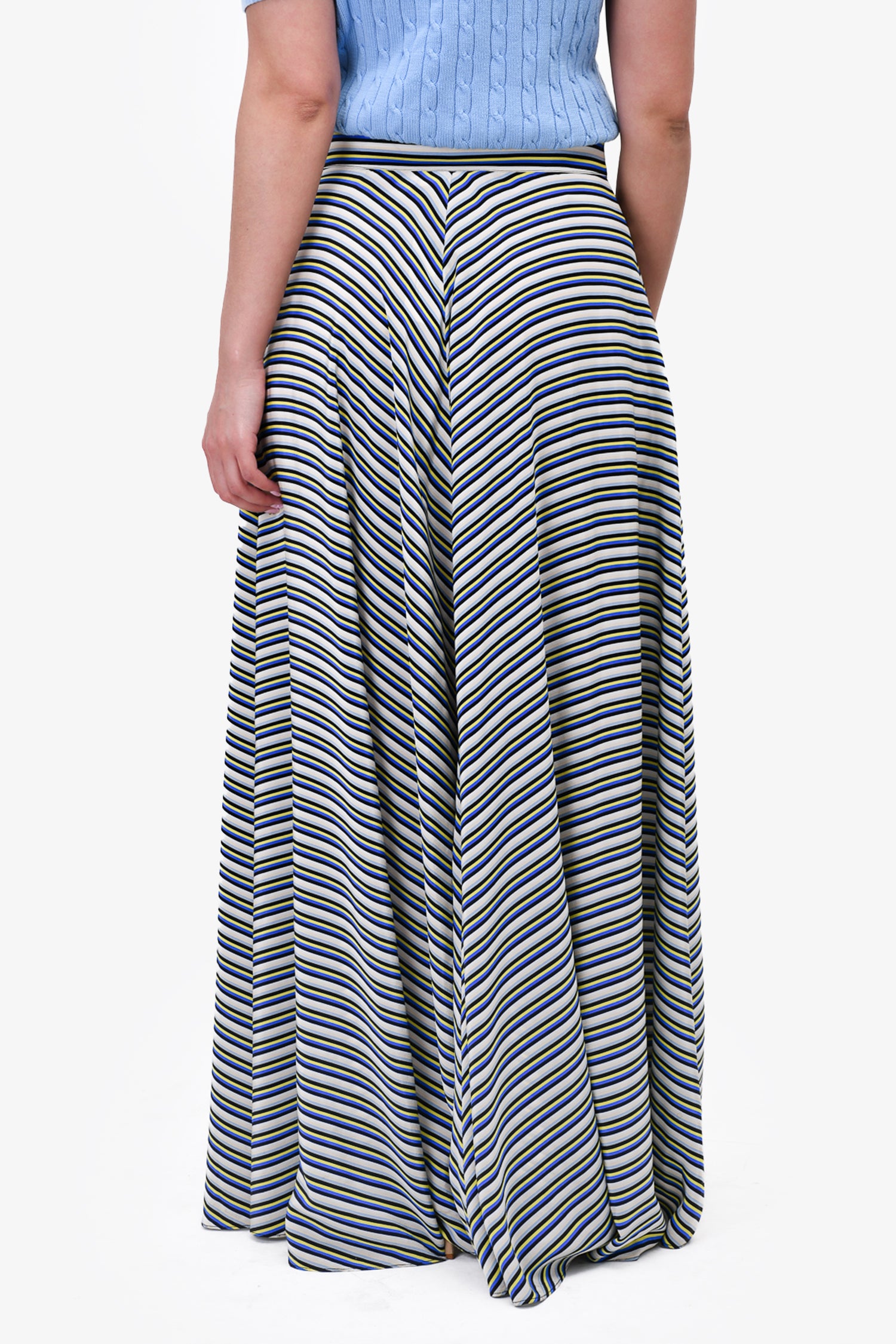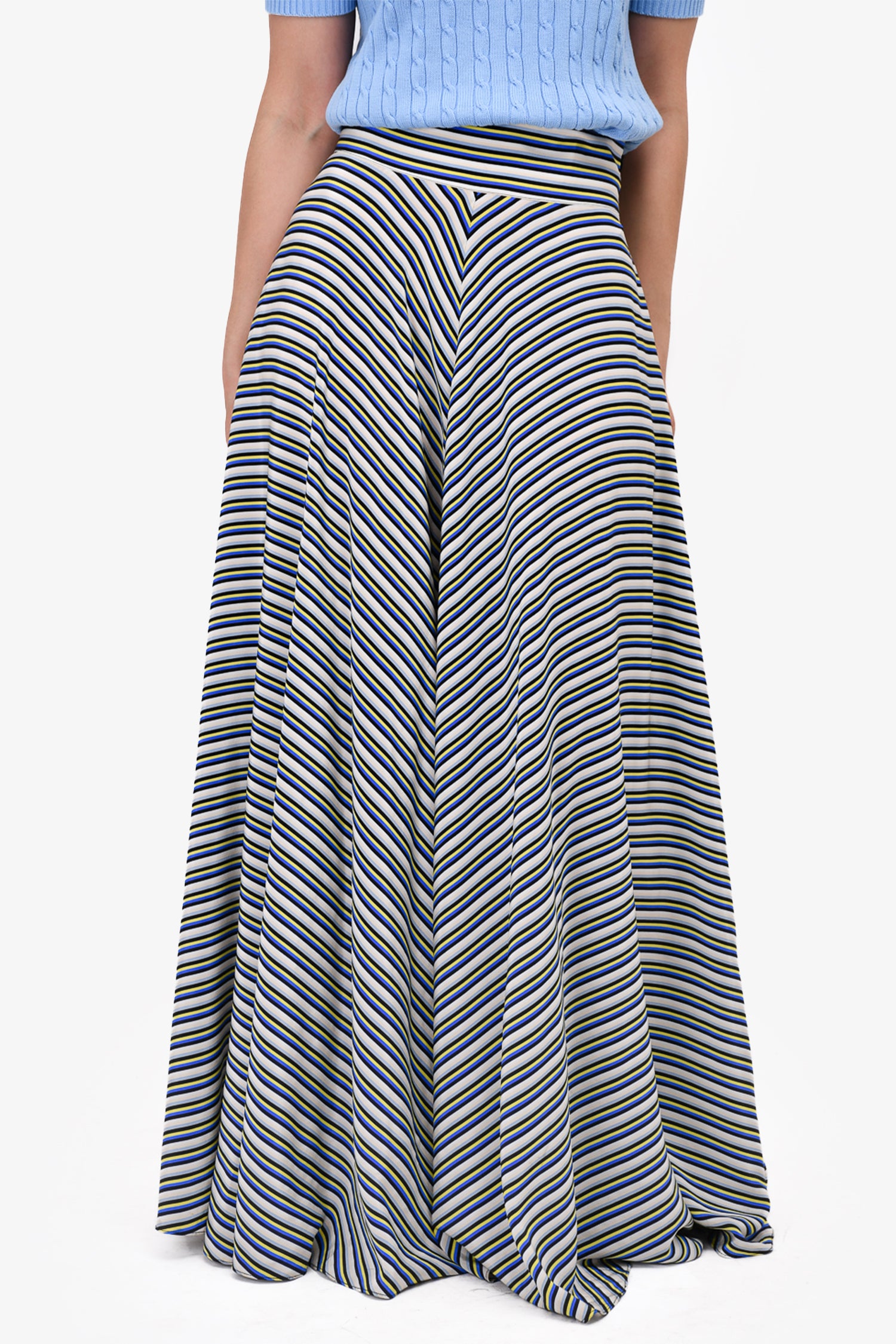 Refresh availabilityDiane Von Furstenberg Blue/Yellow Striped Maxi Skirt. Side zip and hook closure. Unlined.