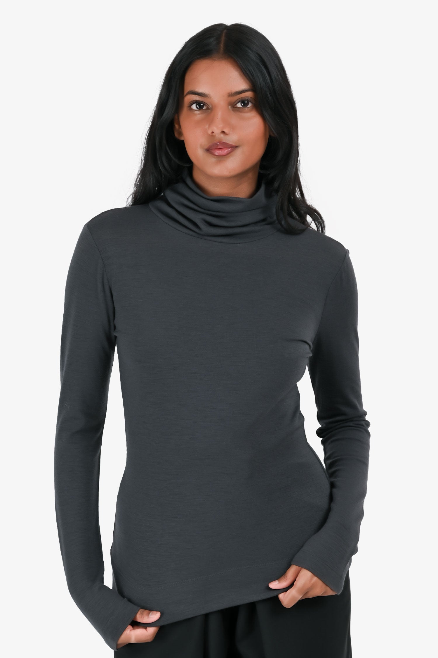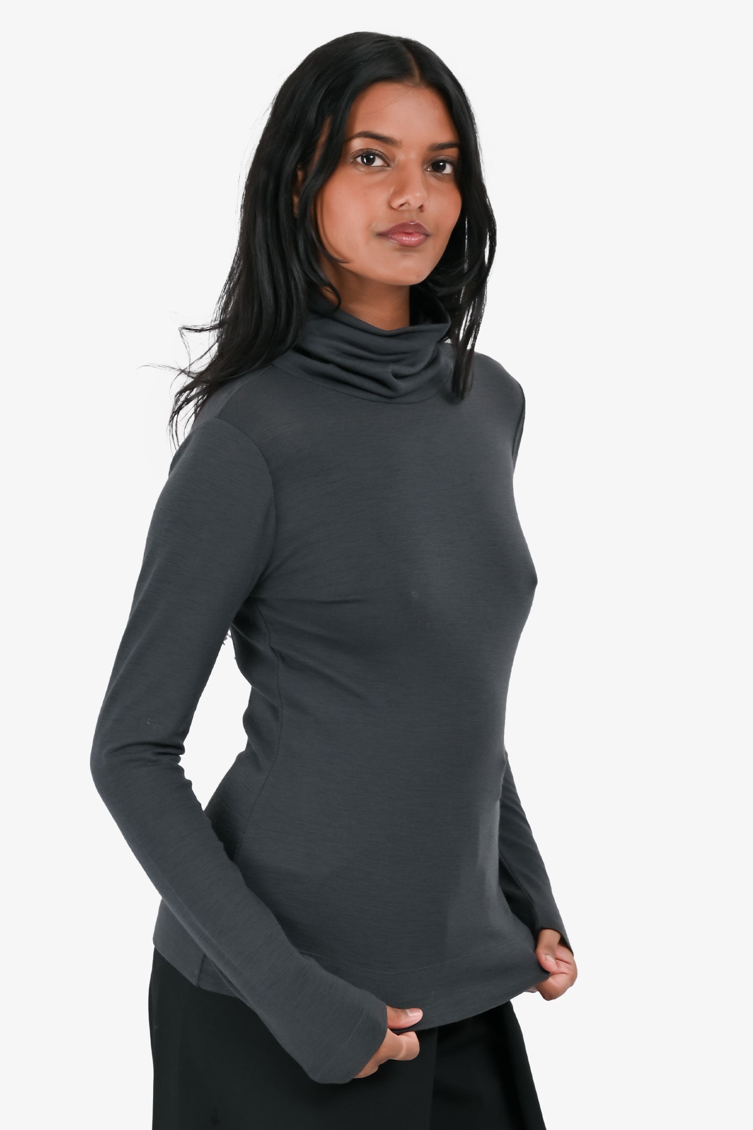 Refresh availabilityDiane von Furstenberg Grey Wool Turtle Neck Sweater. Fold-over turtleneck. Long sleeves. Pull-on style. Tonal stitching.