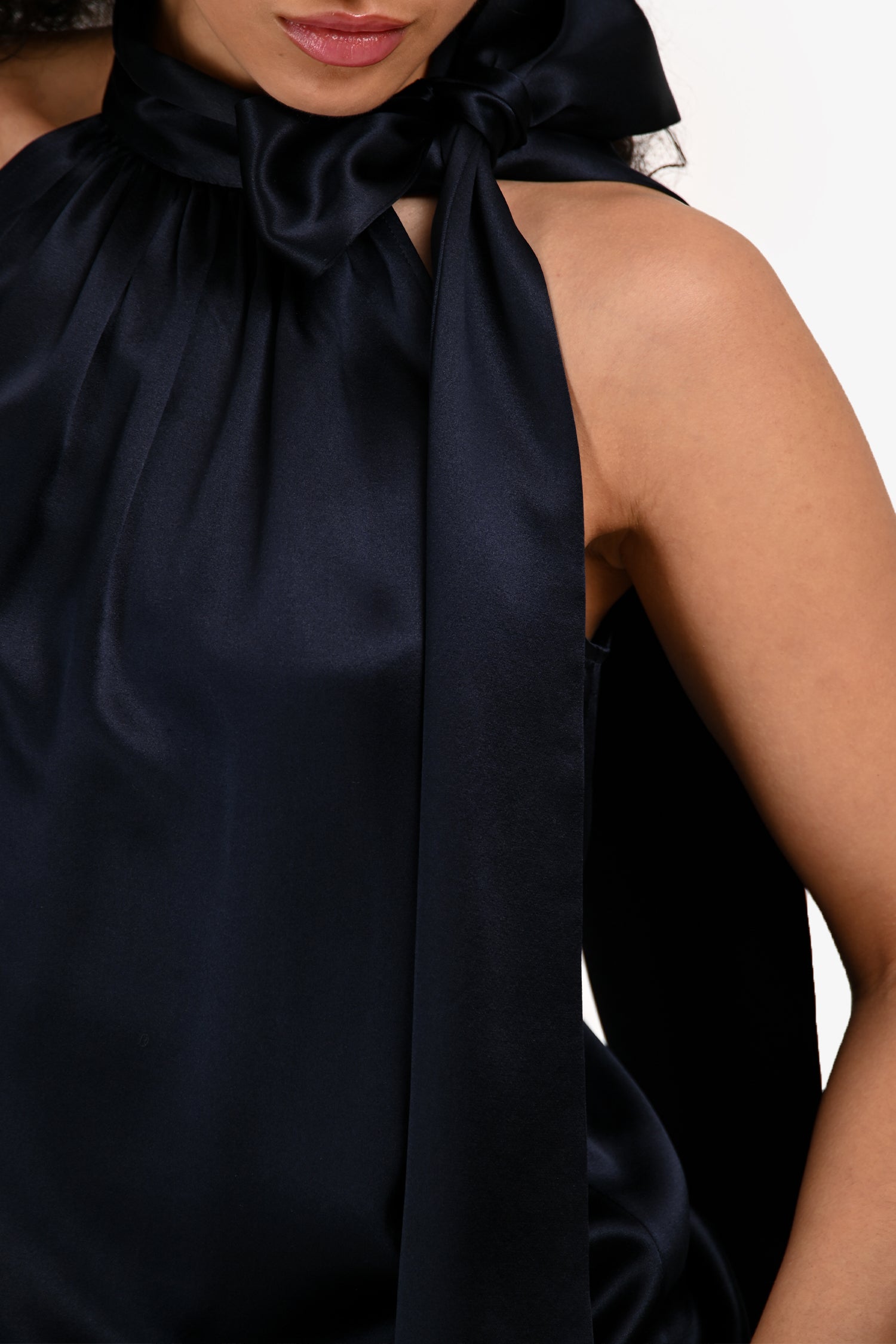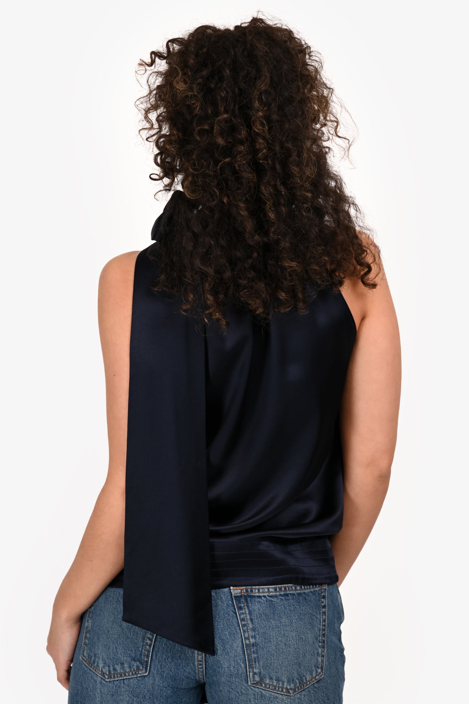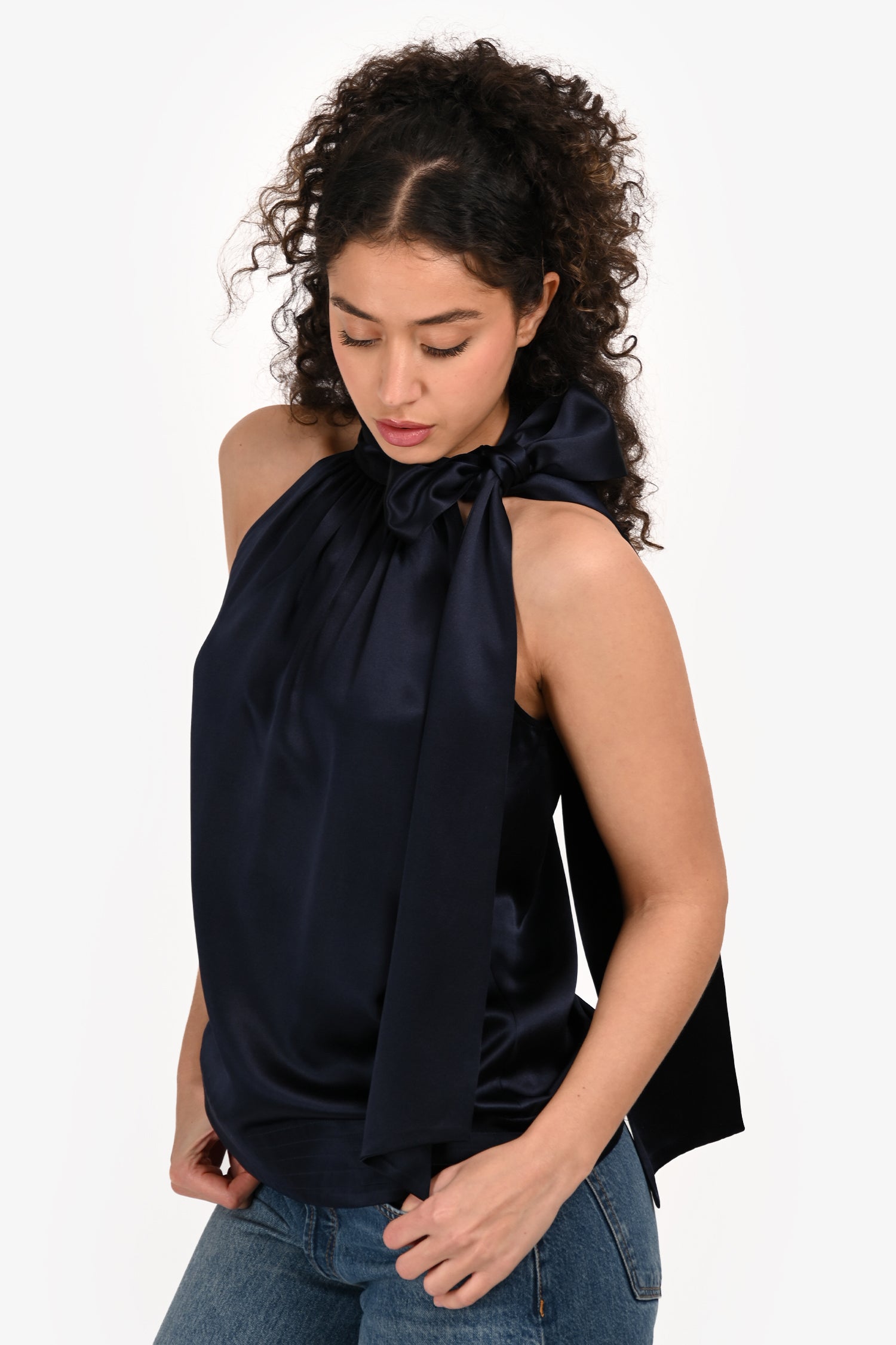 Refresh availabilityDiane von Furstenberg Navy Silk Bow Detailed Sleeveless Top. Pull-on. Halter neckline. Adjustable tie detailing at the neck. Tonal stitching.