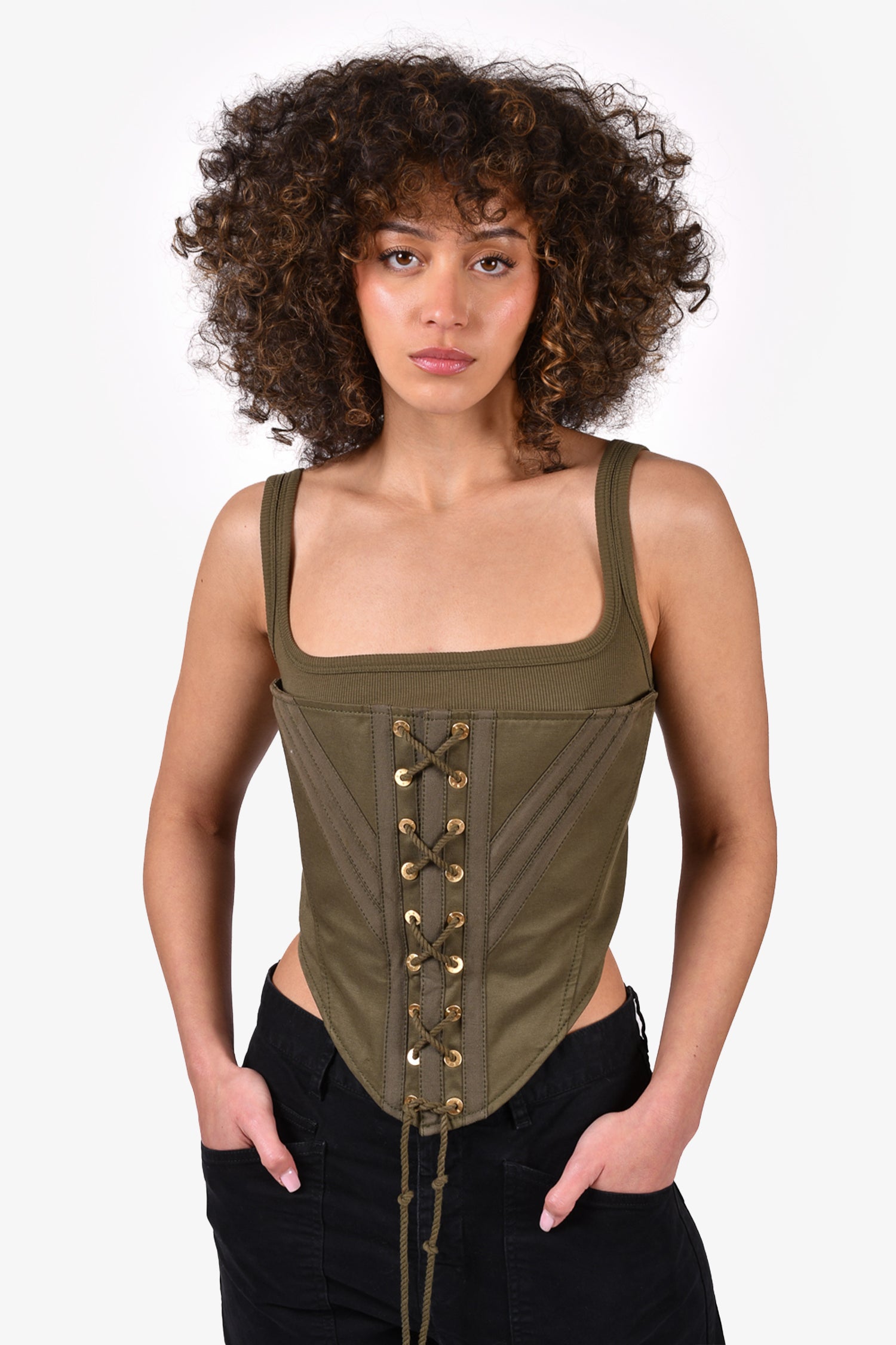 Refresh availabilityDion Lee Green Corset Tank Top. Rear zip closure. Tie-up closure. Tonal stitching.