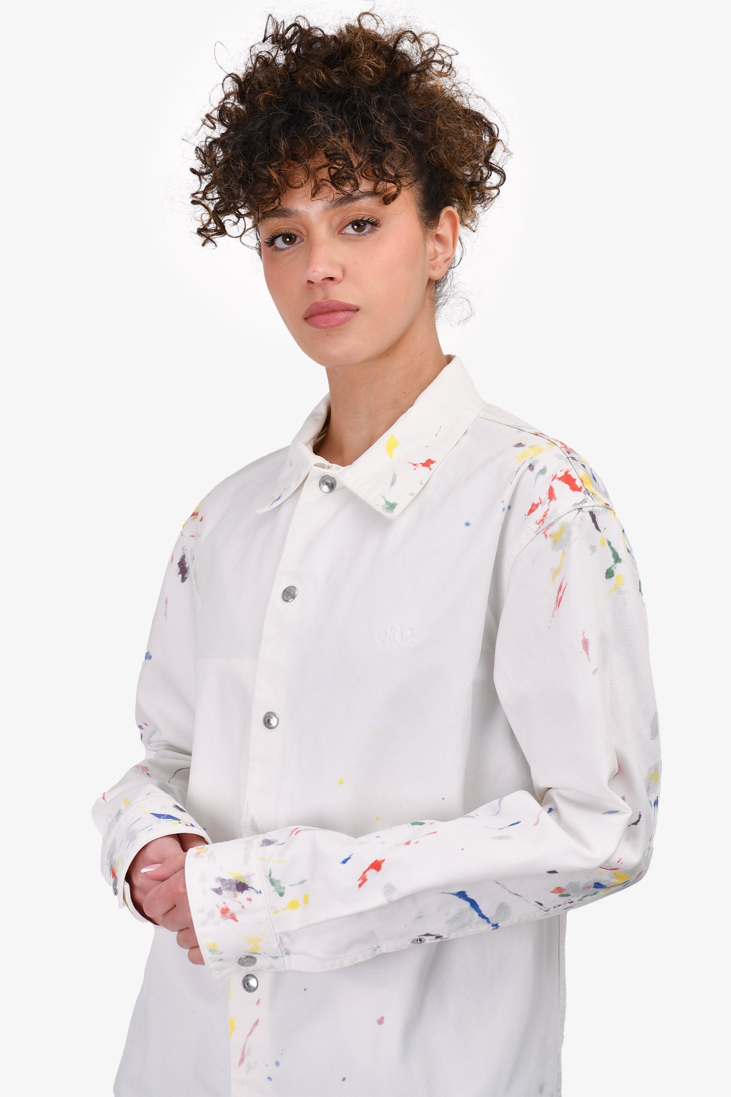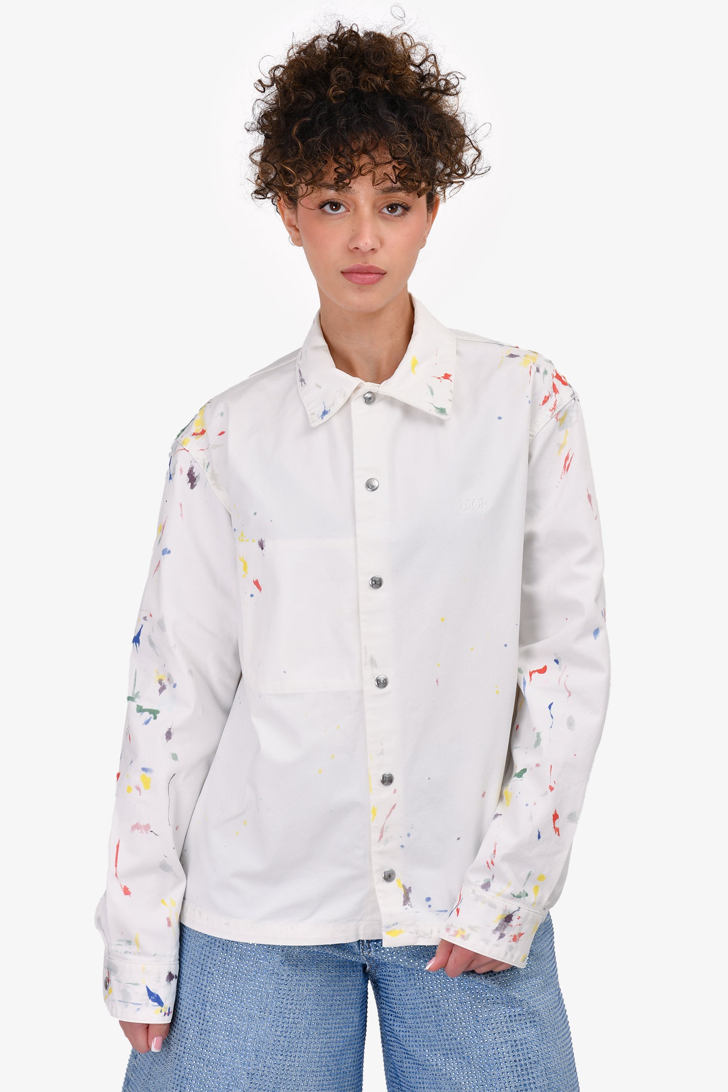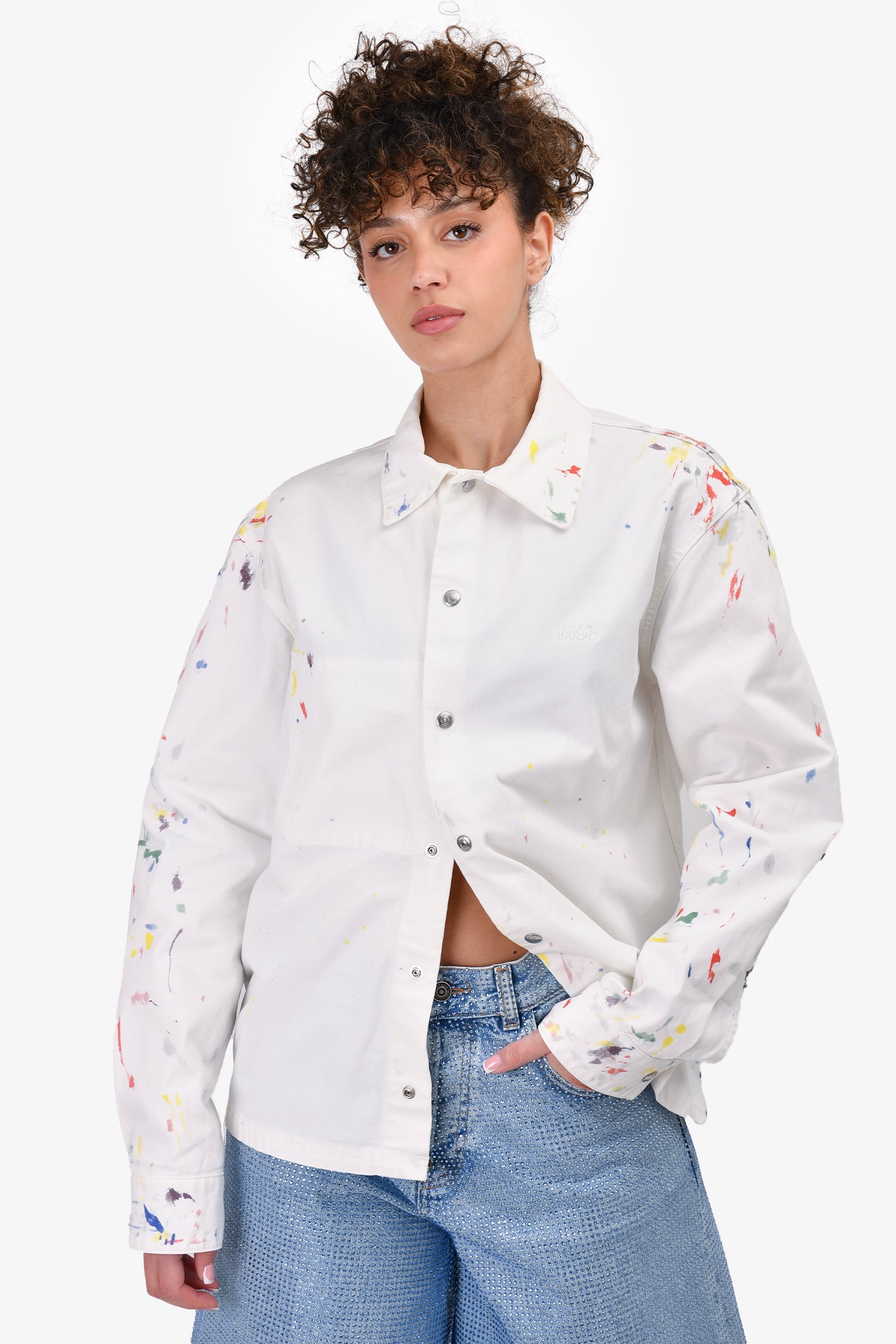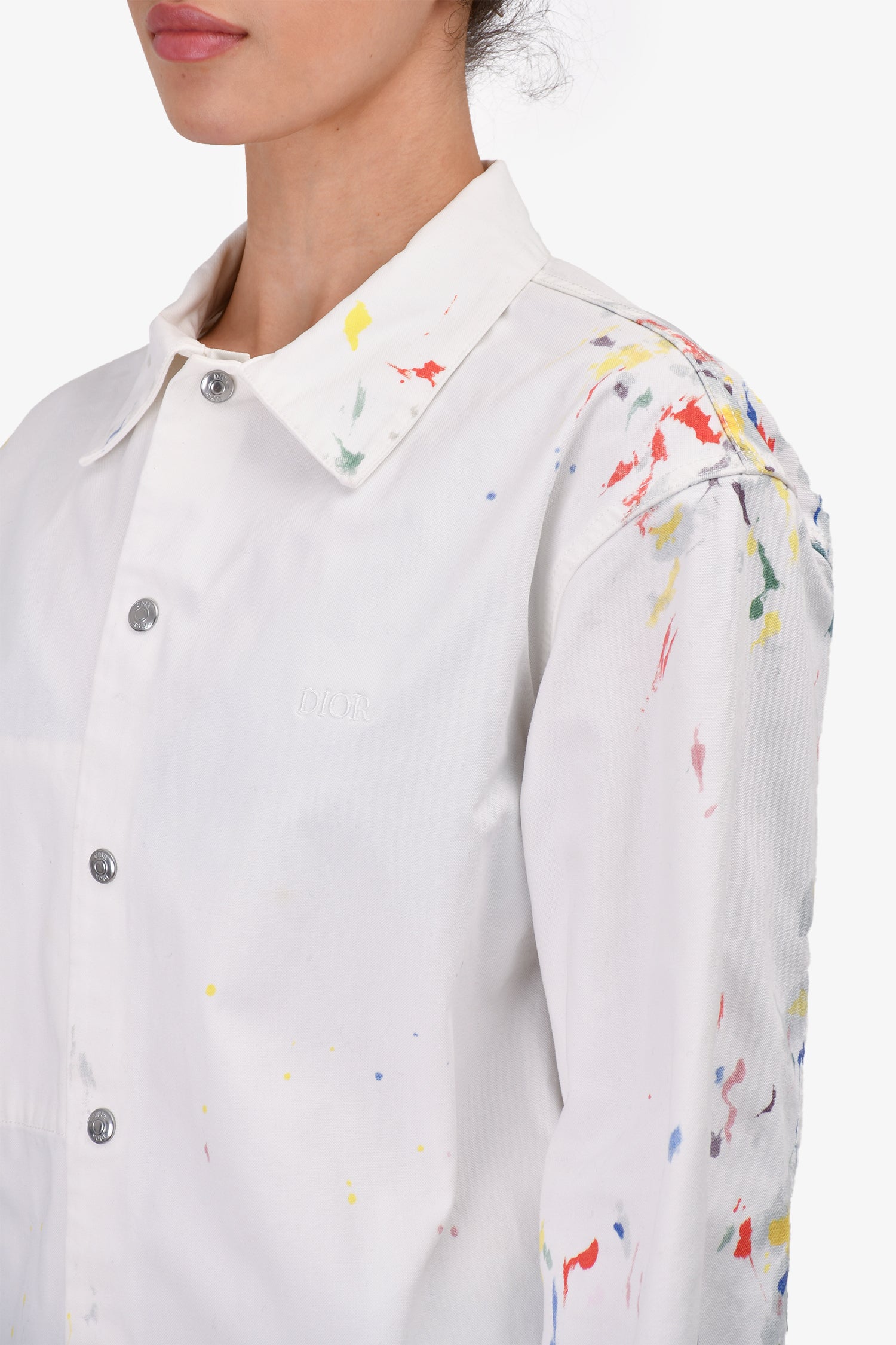 Refresh availabilityDior Homme White Painted Denim Jacket. Front snap button-up closure. Button closure on the cuffs.