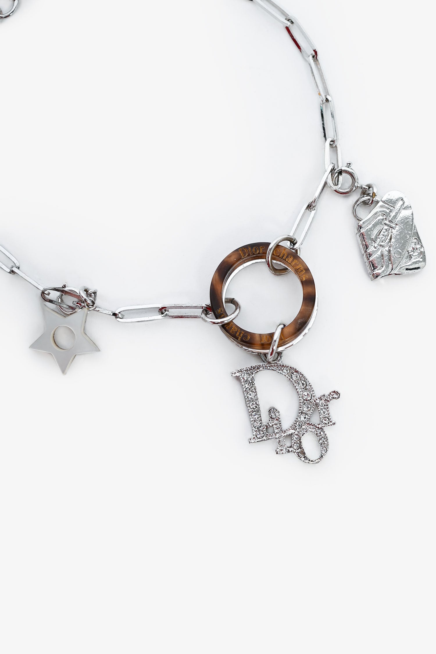 Refresh availabilityChristian Dior Silver Tone Logo Charm Bracelet. Lobster clasp closure.