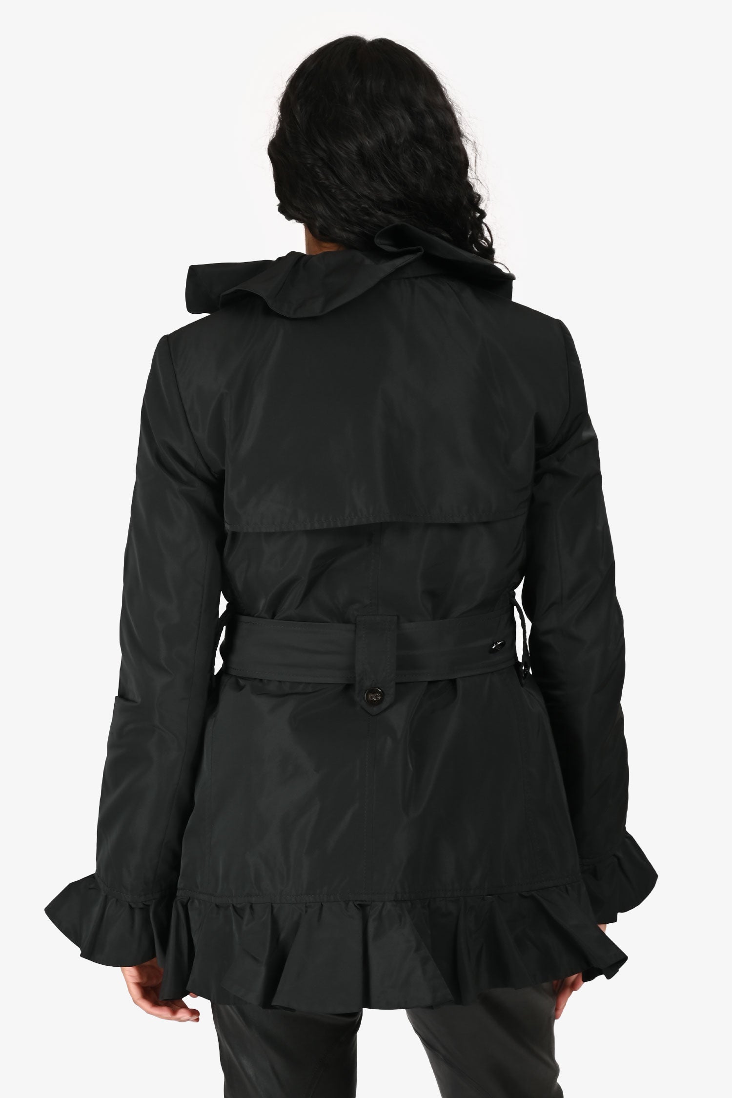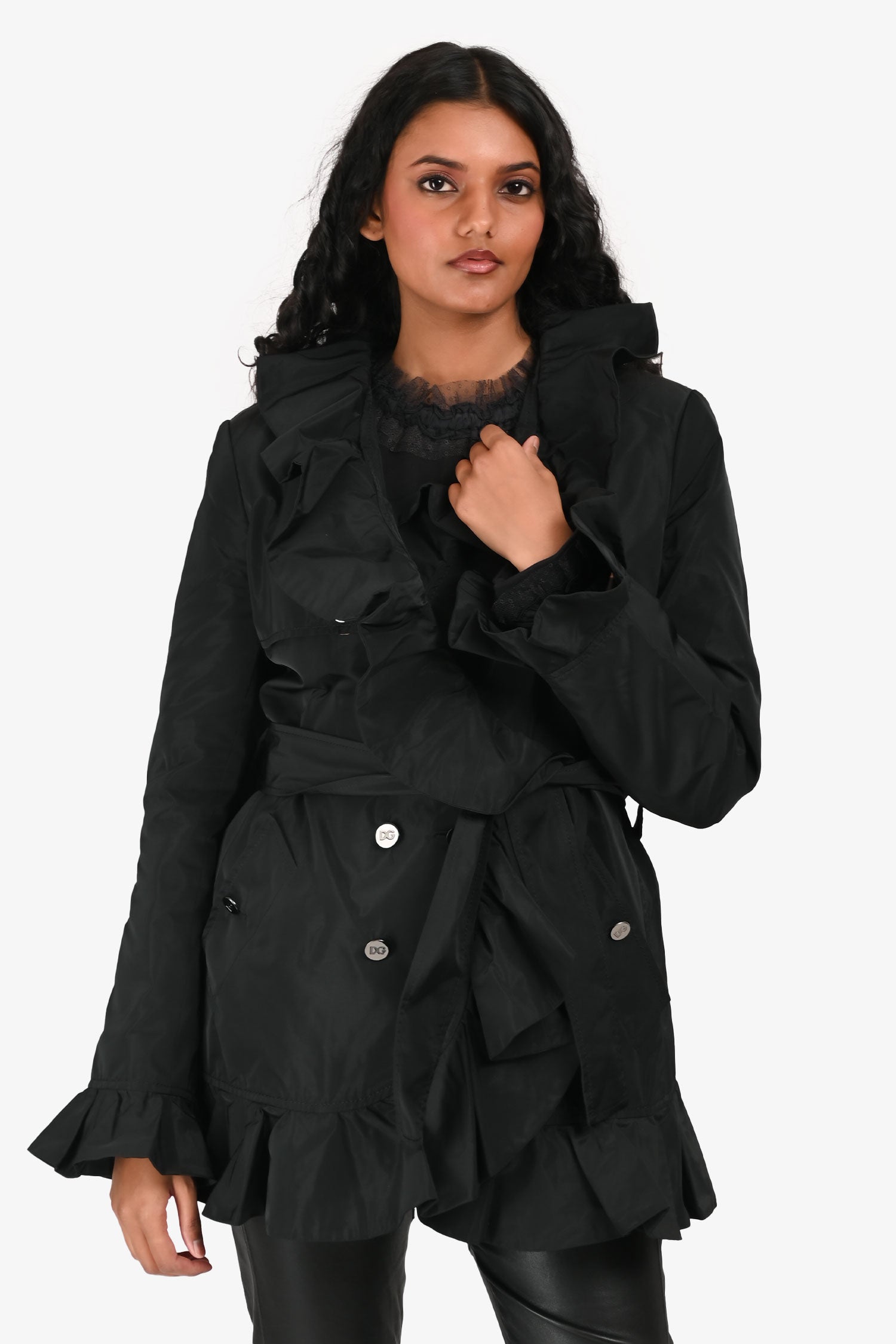 Dolce & Gabbana Black Nylon Ruffle Short Trench Coat Size 40