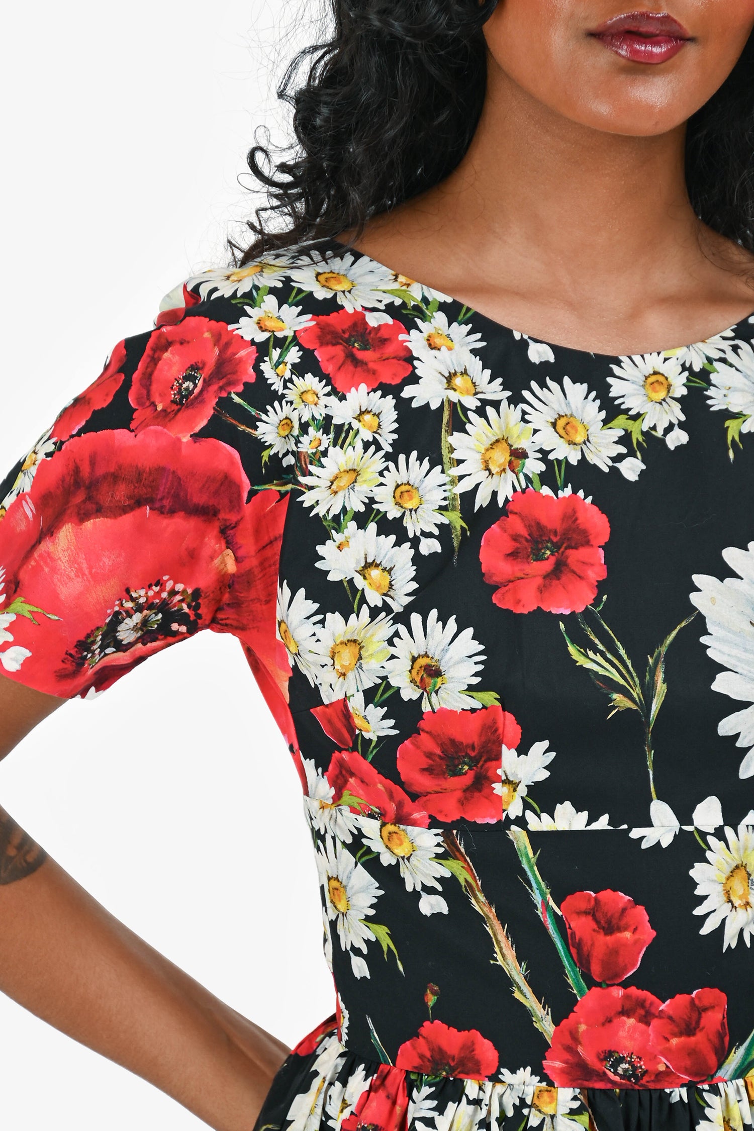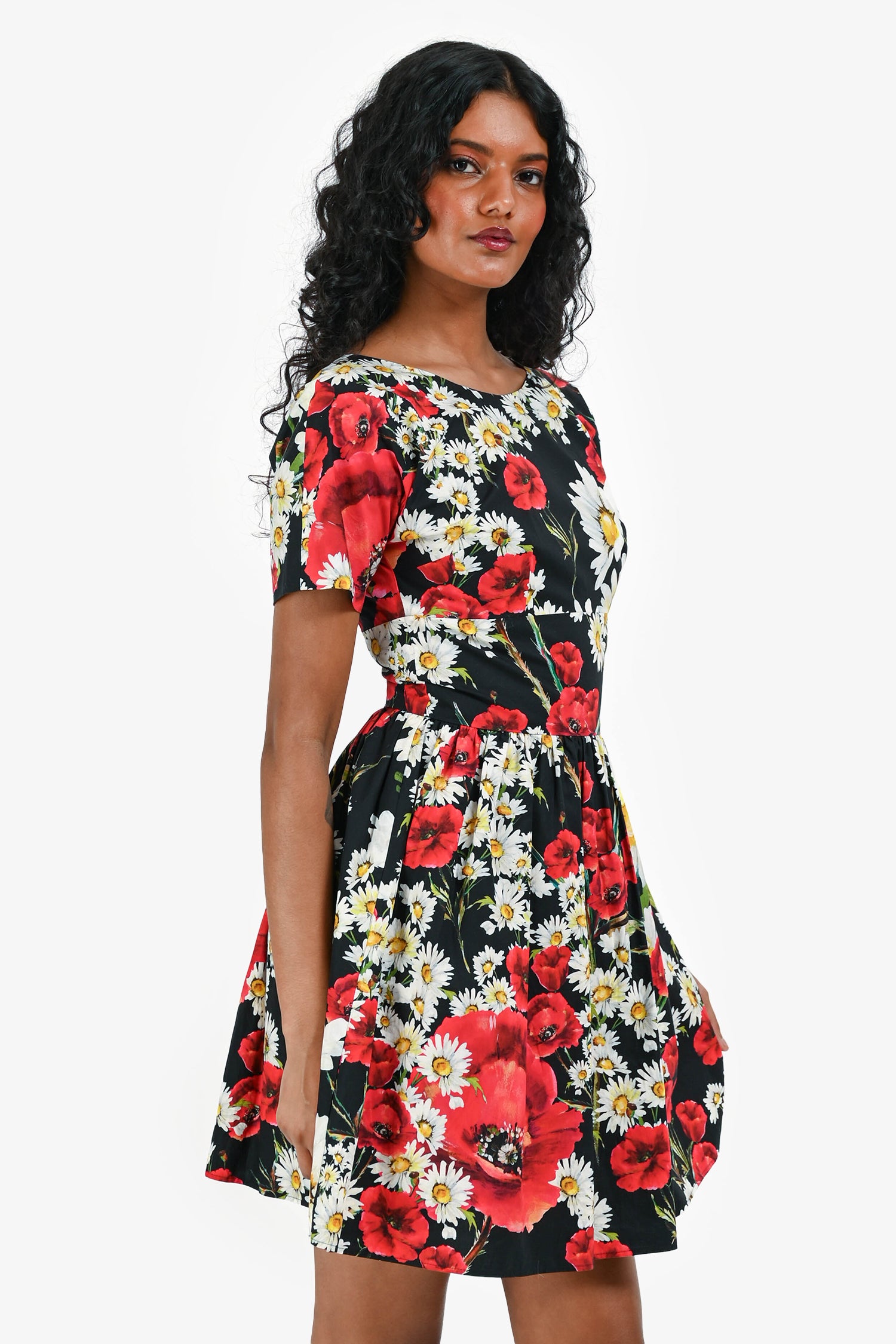 Refresh availabilityDolce & Gabbana Black/Red Floral Printed Mini Dress. Zipped back. Rounded collar. Lined interior. Tonal stitching.