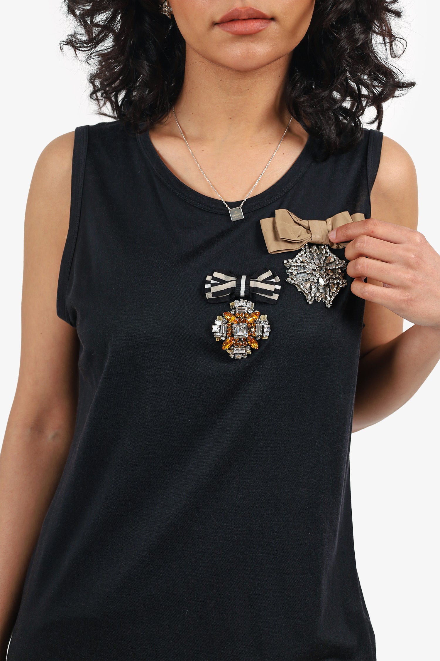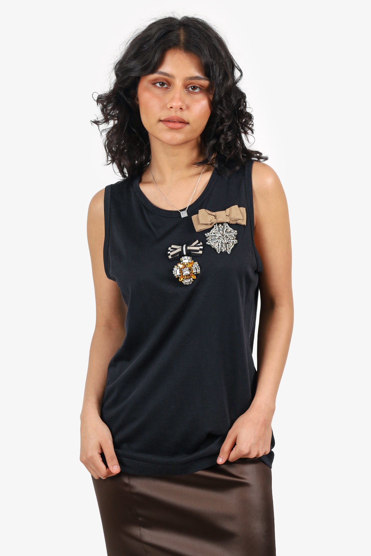 Refresh availabilityDolce & Gabbana Black Sleeveless Embellished Top. Pull-on. Round neckline. Tonal stitching.
