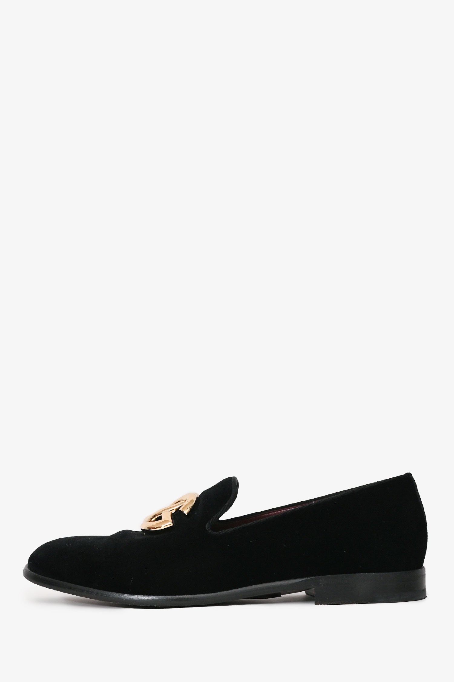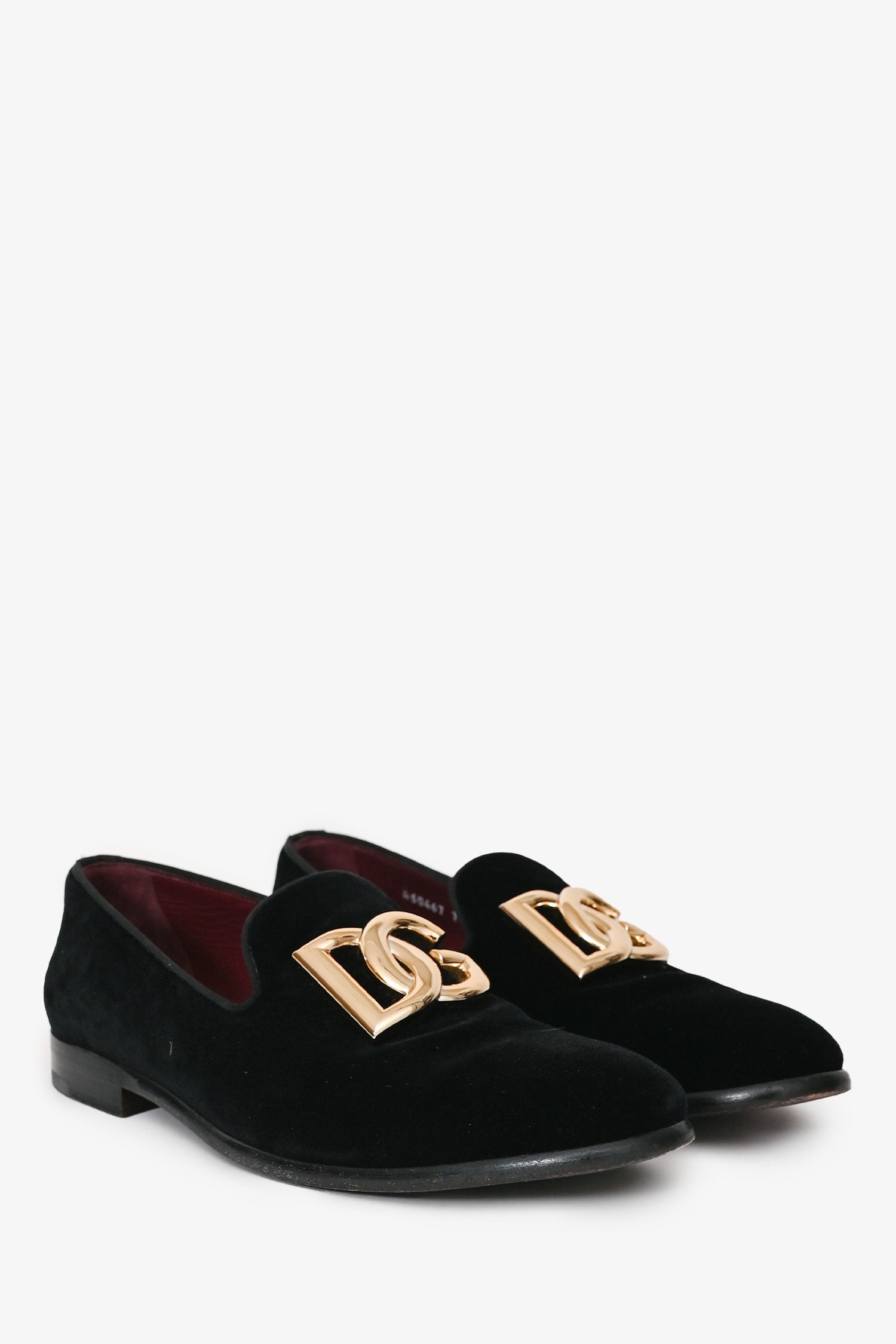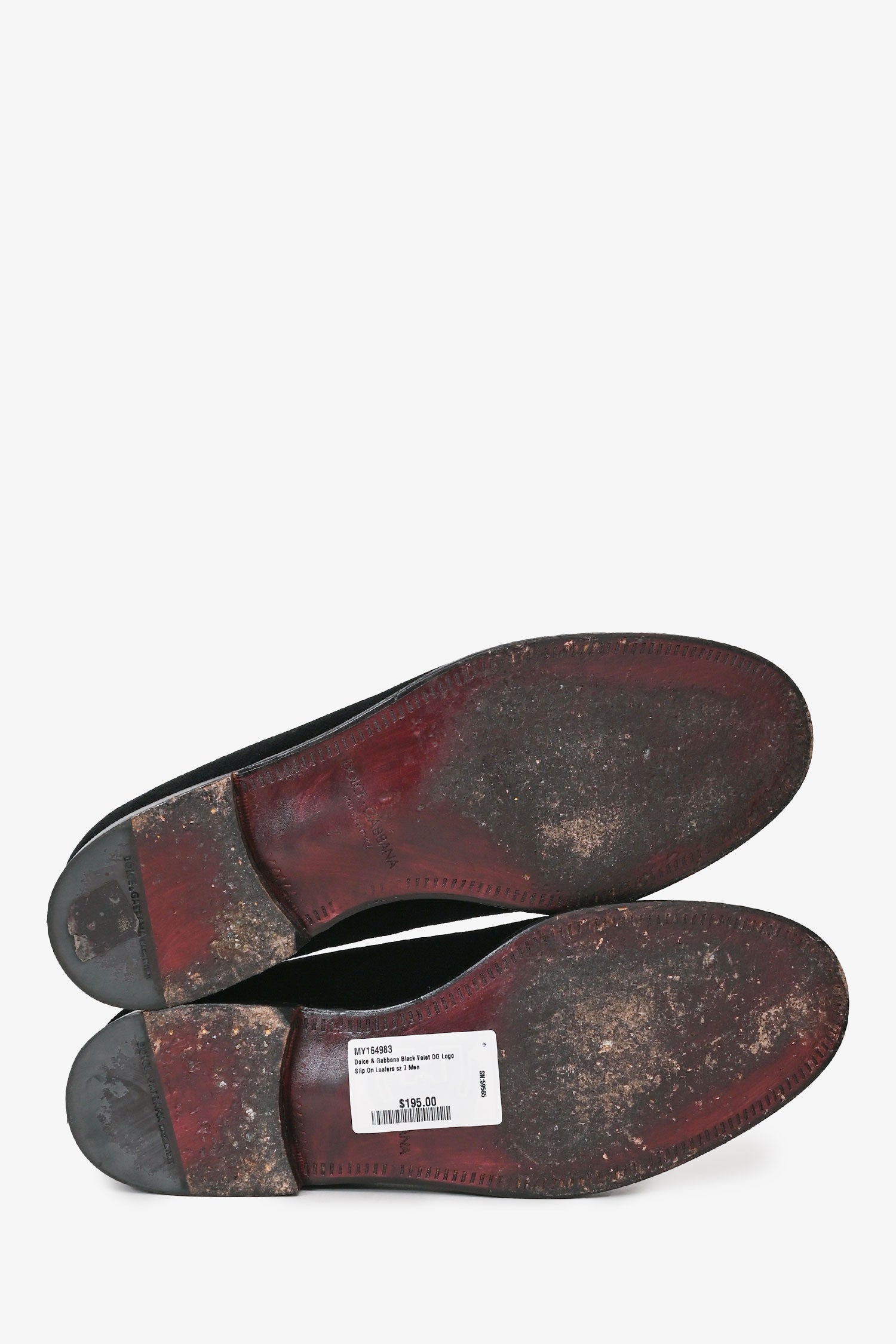 Dolce & Gabbana Black Velvet DG Logo Slip On Loafers Size 7 Mens