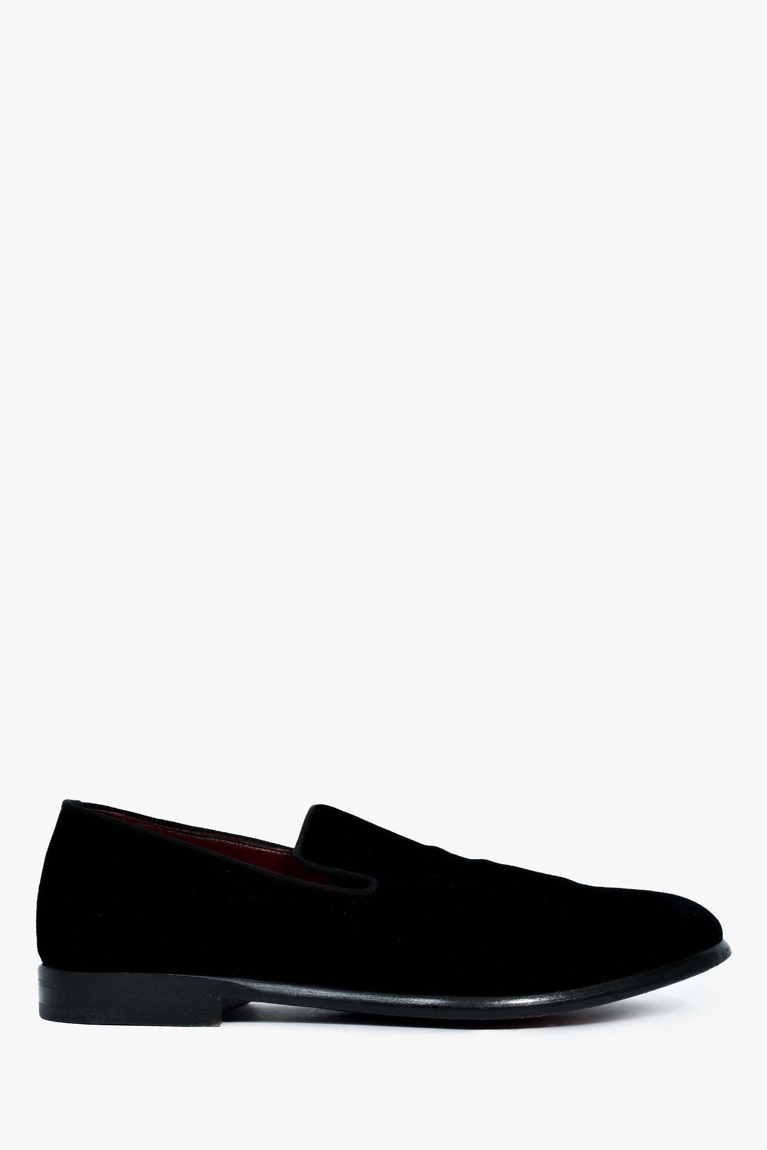 Refresh availabilityDolce & Gabbana Black Velvet Loafers. Slip-on. Round toe. Tonal stitching.